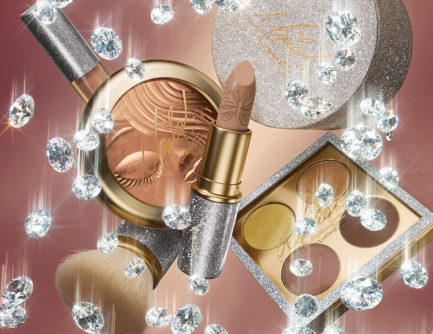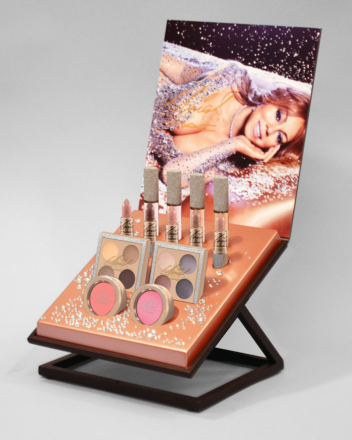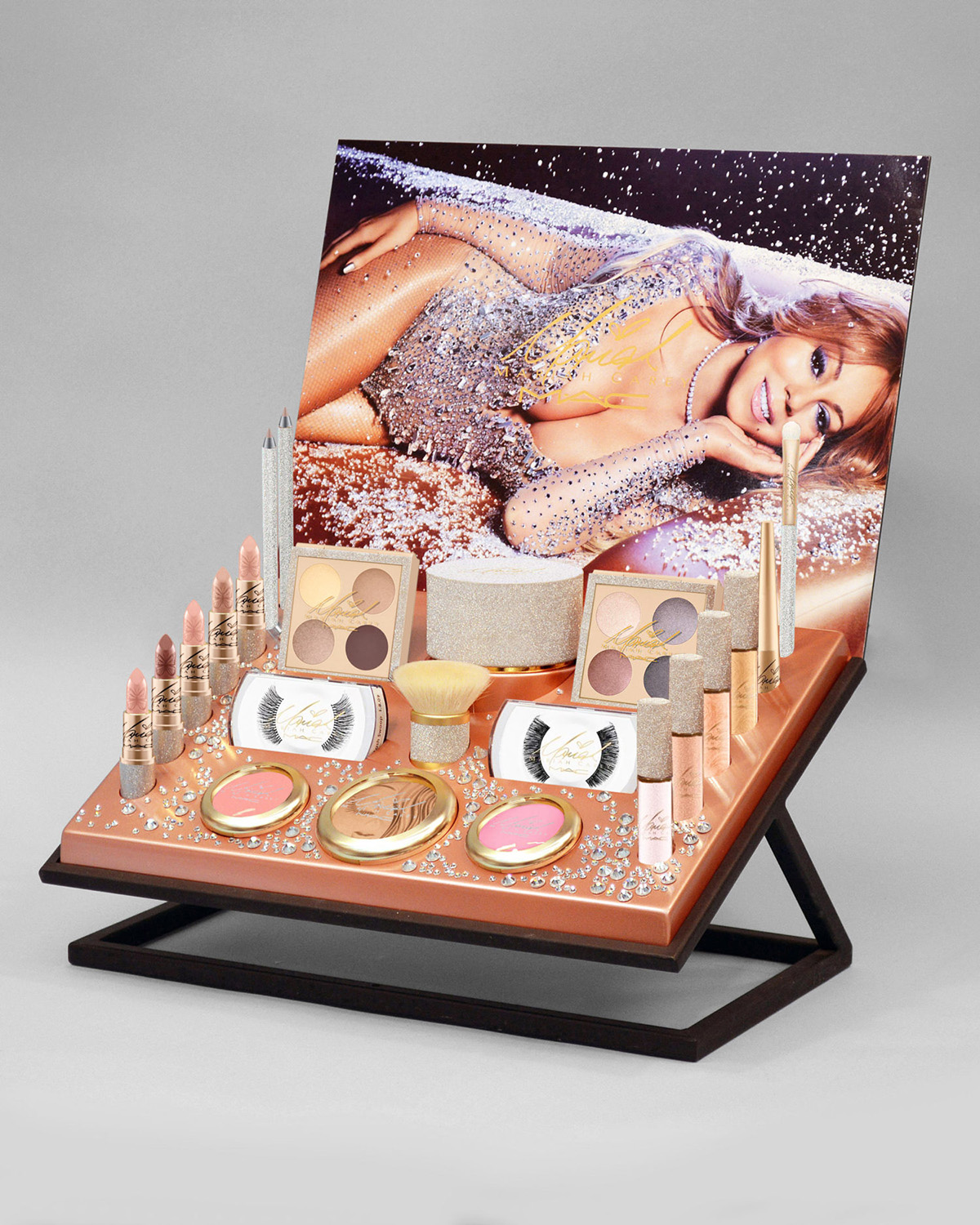 The M·A·C Cosmetics x Mariah Carey collection was released on December 8, 2016, and included four additional shades of lipstick, four shades of lipglass, a liquid eye liner, two pro longwear lip pencils, a powder brush, an eye shader brush, two sets of lashes, extra dimension skinfinish, two powder blushes, two quad sets of eye shadow, loose powder, a buffer brush and an eye shader brush — all in luxurious packaging in silver glitter with champagne gold accents and Mariah's signature.