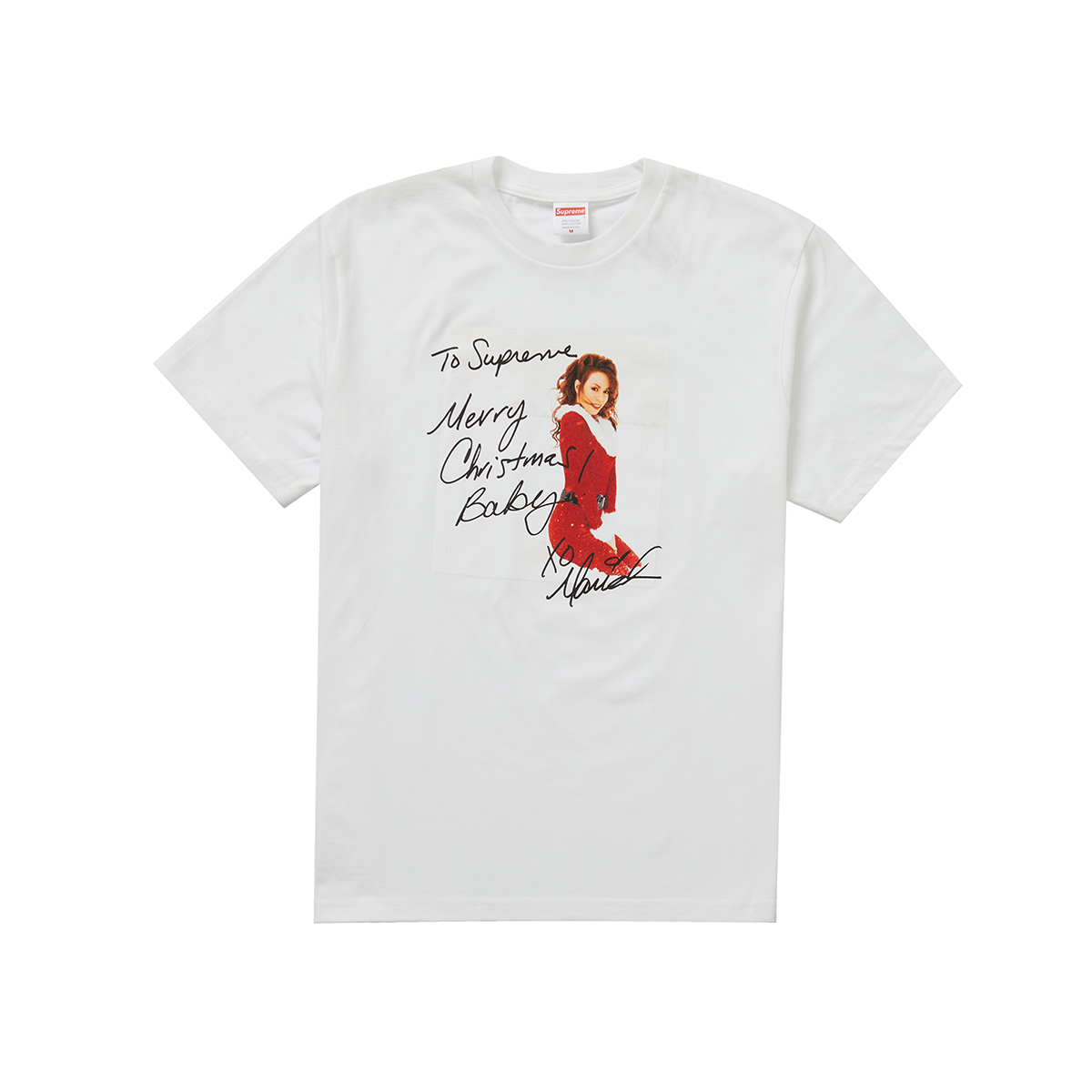 Mariah partnered with Supreme's FW 2020 collection with the release of a winter tee on December 17, 2020. The t-shirt, available in four colors, features the album cover for Mariah's Merry Christmas album and a festive handwritten message dedicated to Supreme.