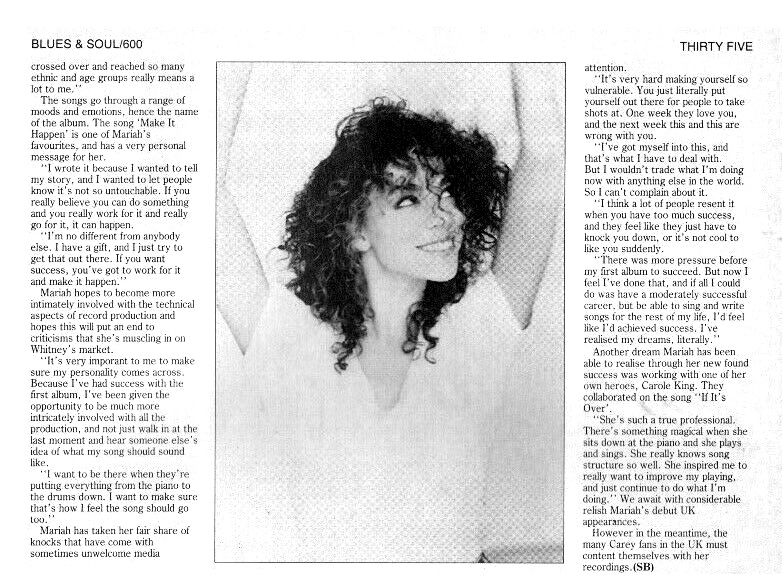 Mariah honed her distinctive vocal style listening to The Winans, The Clarke Sisters, and The Edwin Hawkins Singers. But she considers herself first and foremost and R'n'B singer.