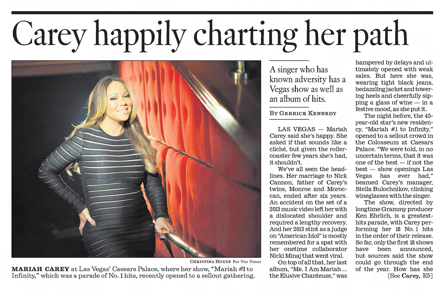 We've all seen the headlines. Her marriage to Nick Cannon, father of Carey's twins Monroe and Moroccan, ended after six years. An accident on the set of a 2013 music video left her with a dislocated shoulder and required a lengthy recovery. And her 2013 stint as a judge on American Idol is mostly remembered for a spat with her onetime collaborator Nicki Minaj that went viral.