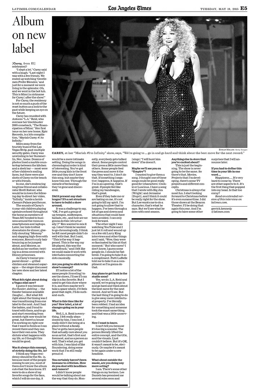 The show, directed by longtime Grammy producer Ken Ehrlich, is a greatest hits parade, with Carey performing her 18 No. 1 hits in the order of their release. So far, only the first 18 shows have been announced, but sources said the show could go through the end of the year. How has she celebrated?