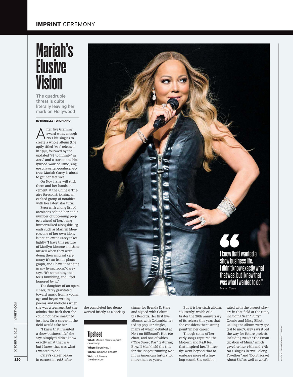 Even with a long list of accolades behind her and a number of upcoming projects ahead of her, being immortalized alongside legends such as Marilyn Monroe, one of her own idols, is not an event Carey takes lightly. “I have this picture of Marilyn Monroe and Jane Russell when they were doing their imprint ceremony. It's an iconic photograph, and I have it hanging in my living room,” Carey says. “It's something that feels humbling, and I feel honored by it.”