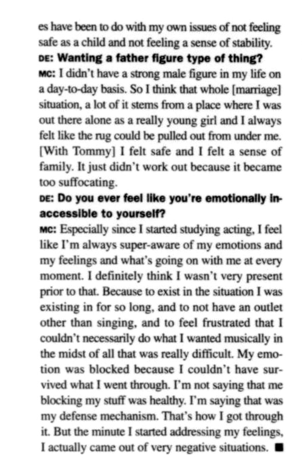I didn't have a strong male figure in my life on a day-to-day basis. So I think that whole [marriage] situation, a lot of it stems from a place where I was out there alone as a really and I always felt like the rug could be pulled out from under me. [With Tommy] I felt safe and I felt a sense of family. It just didn't work out because it became too suffocating.