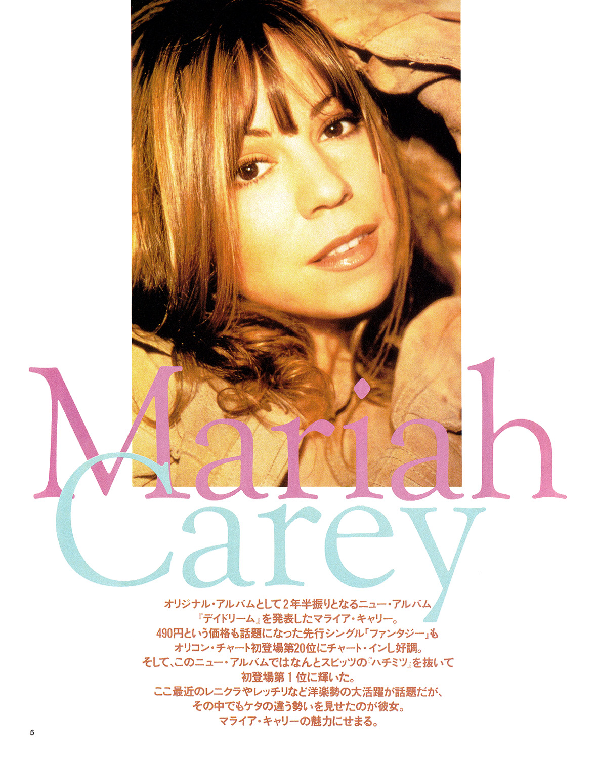 あぁ、なんかいい話。音楽的にも人間的にも、マライアは確実に成長している。そんな彼女のありったけのエンターテイメントと温かい心がこめられた『デイドリーム』、う~ん、完璧なポップ・アルバムですね。