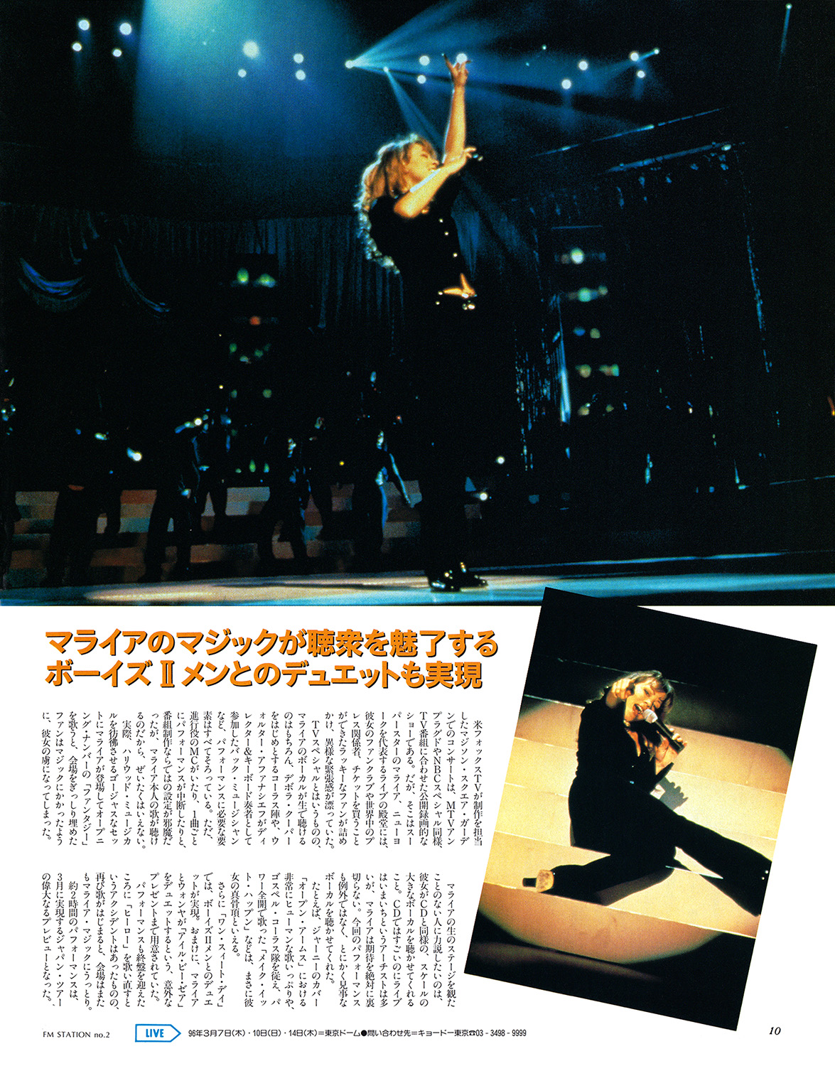 実際、ハリウッド・ミュージカルを彷彿させるゴージャスなセットにマライアが登場してオープニング・ナンバーの「ファンタジー」を歌うと、会場をぎっしり埋めたファンはマジックにかかったように、彼女の虜になってしまった。