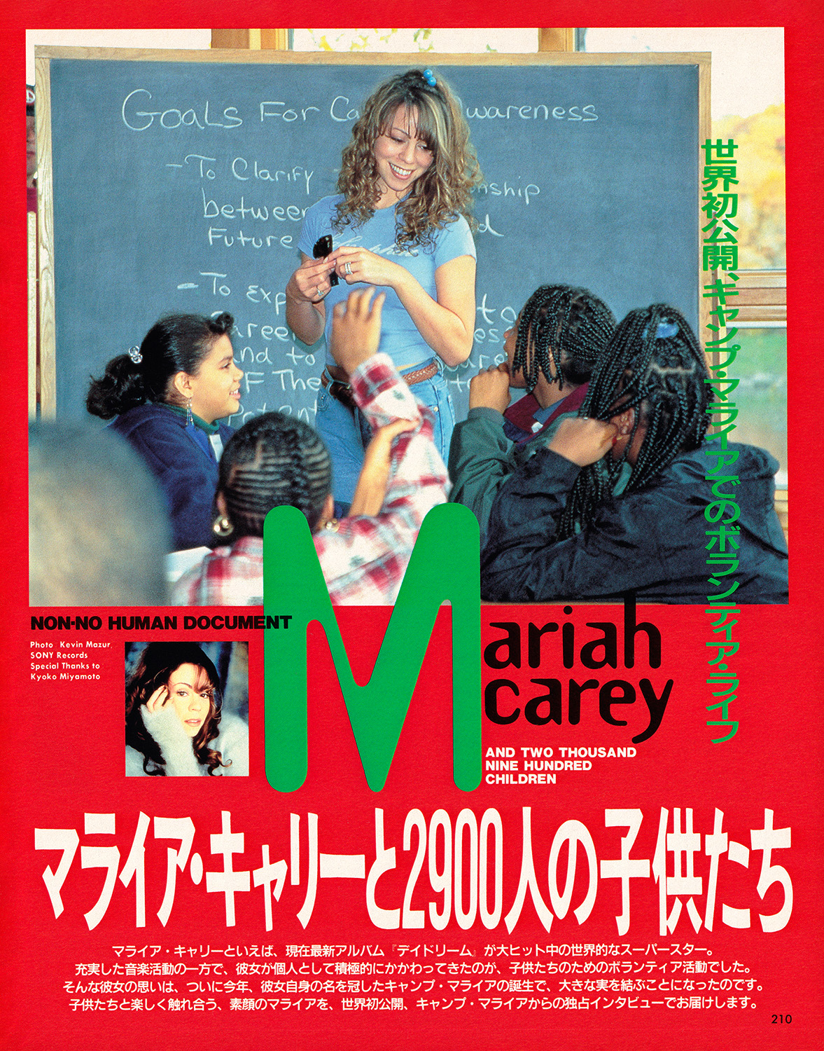 「私たちの基金のために、マライア・キャリーさんから多額の寄付をいただいたことを、まずご報告いたします。私たちの活動の趣旨に賛同していただいたマライアさんは、今日のコンサートをはじめ、私たちの基金の募金活動をこれからも支援してくださいます。そこで私たちは、94年夏から開始した、キャリア・アウェアネス (職業発見)・キャンプのプログラムに、キャンプ・マライアの名前を冠することを、決定いたしました」