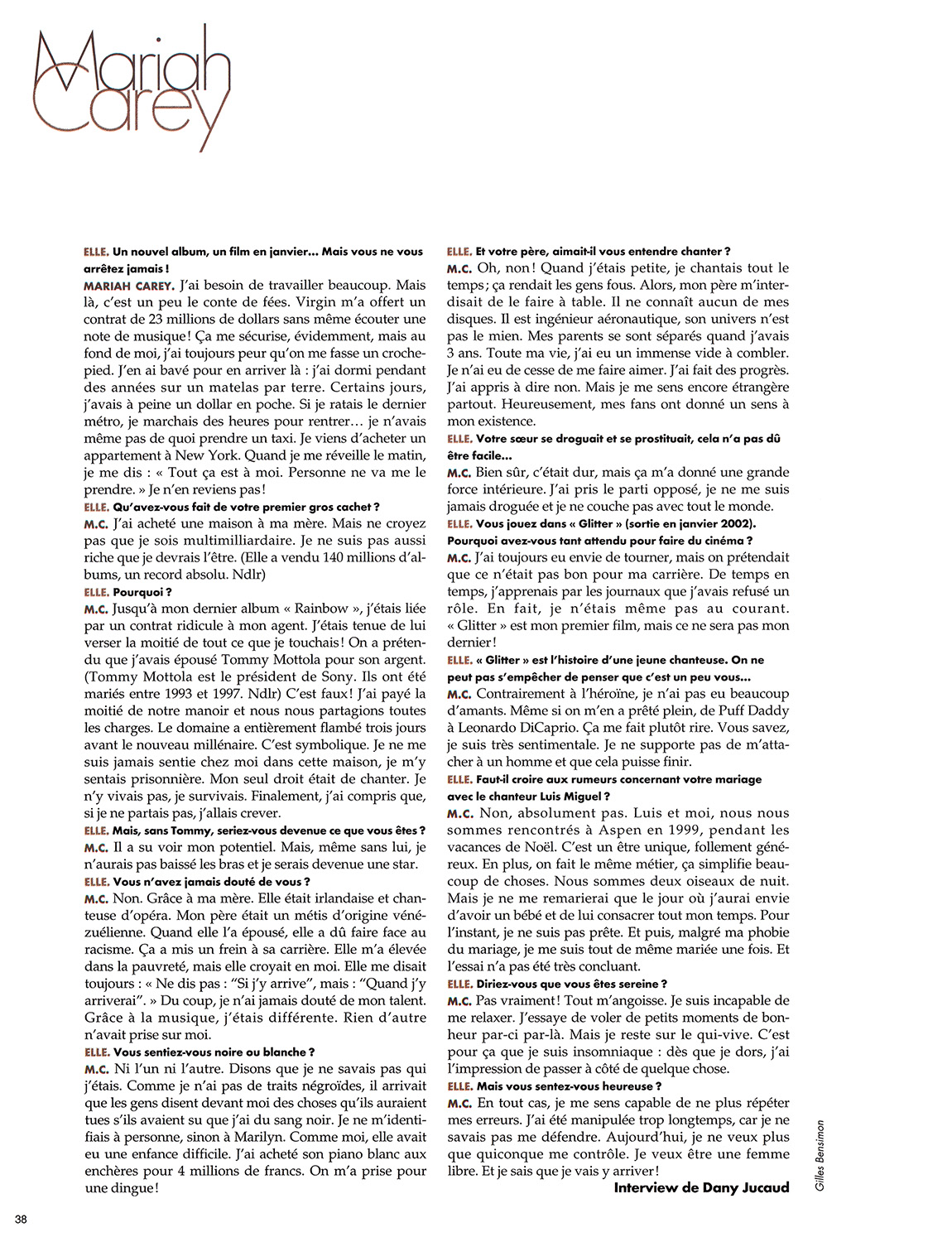 Jusqu'à mon dernier album Rainbow, j'étais liée par un contrat ridicule à mon agent. J'étais tenue de lui verser la moitié de tout ce que je touchais! On a prétendu que j'avais épousé Tommy Mottola pour son argent. (Tommy Mottola est le président de Sony. Ils ont été mariés entre 1993 et 1997. Ndlr) C'est faux! J'ai payé la moitié de notre manoir et nous nous partagions toutes les charges. Le domaine a entièrement flambé trois jours avant le nouveau millénaire. C'est symbolique. Je ne me suis jamais sentie chez moi dans cette maison, je m'y sentais prisonnière. Mon seul droit était de chanter. Je n'y vivais pas, je survivais. Finalement, j'ai compris que, si je ne partais pas, j'allais crever.