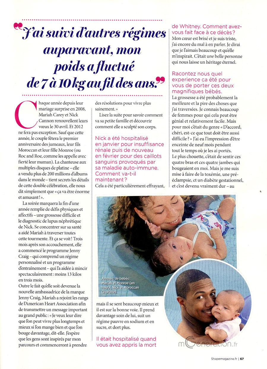 La soirée marquera la fin d'une année remplie de défis physiques et affectifs — une grossesse difficile et le diagnostic de lupus néphrétique de Nick. Se concentrer sur sa santé a aidé Mariah à traverser toutes cette tourmente. Et ça se voit! Trois mois après son accouchement, elle a commencé le programme jenny Craig — qui comprend un régime personnalisé et un programme d'entraînement - qui la aidée à mincir spectaculairement: moins 13 kilos en trois mois.