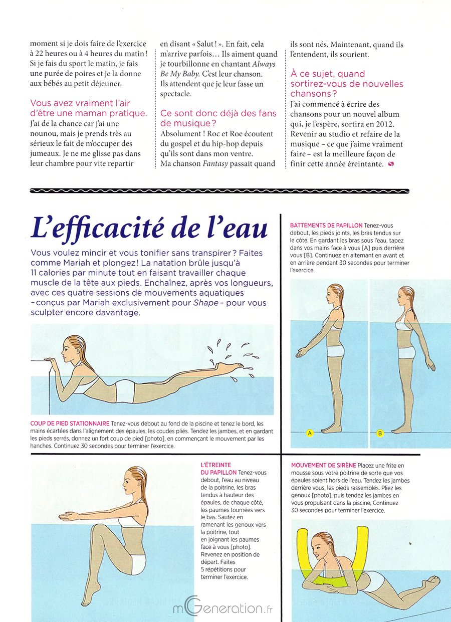 Avant, je pouvais mincir rien qu'en m'entrainant davantage, mais ça a changé. Depuis la naissance des bébés, je sais que 90% de ma perte de poids réside dans mon régime. Aujourd'hui, mon programme d'entraînement consiste davantage à me raffermir et à rester tonique. Et pour moi, cela veut dire des balades d'une heure plusieurs fois par semaine, des séances de natation trois à quatre fois par semaine ou 45 minutes d'exercices aquatiques.