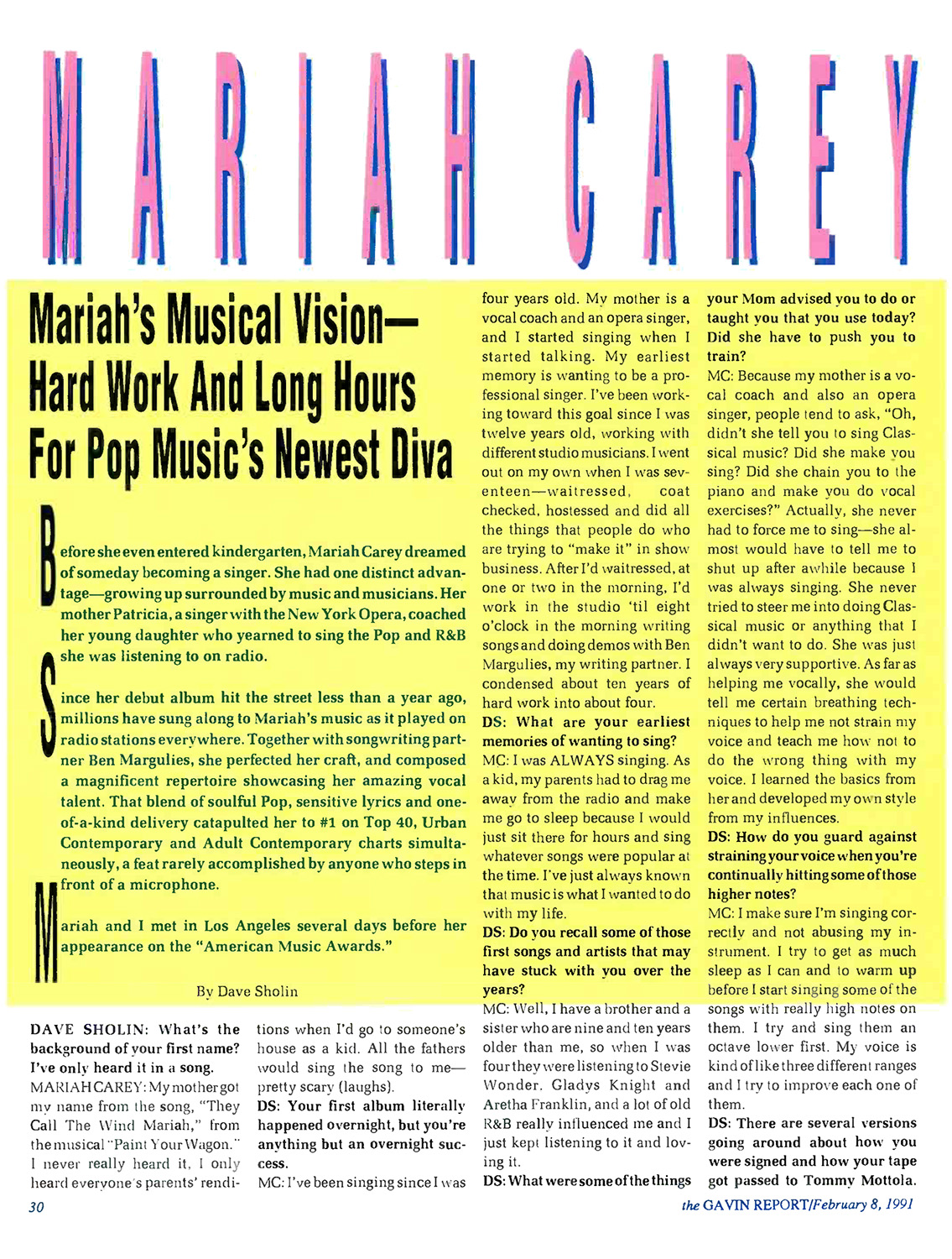 Mariah and I met in Los Angeles several days before her appearance on the “American Music Awards.”