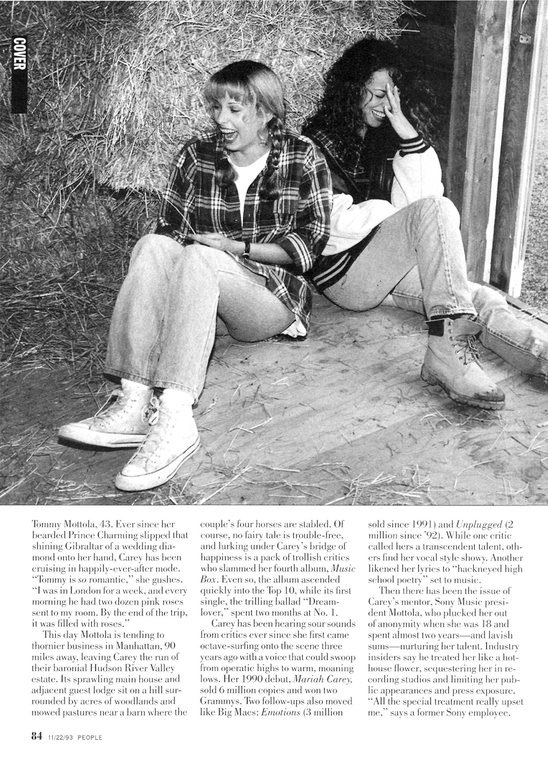 For Mottola, his marriage last June to Carey — in a splashy wedding at Manhattan's St. Thomas Episcopal Church attended by family and friends including Robert De Niro, Barbra Streisand and Bruce Springsteen — marked the end of a secretive courtship. Married and the father of two preteen children when he and Carey met in 1988, Mottola separated from Lisa Clark Mottola, his wife of 20 years, in 1990. After a bitter legal battle, the two divorced a year later, with Mrs. Mottola winning custody of the children and Mottola receiving liberal visitation rights. His relationship with Carey had turned to romance while the two were working on her debut album. “Here I was, coming from an apartment with mattresses on the floor into this whole different world,” says Carey. “It just sort of happened. Tommy is just the greatest person. He knows so much; he's funny. I can't imagine anybody else who would be so supportive and so understanding and helpful. He lifts me up.”