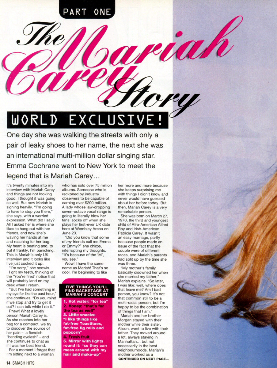 “I was just freaked out when I first met him,” Mariah explains. It was all a bit overwhelming. Mariah's debut album, Mariah Carey, shifted by the bucketload, hitting the top spot in the charts worldwide.