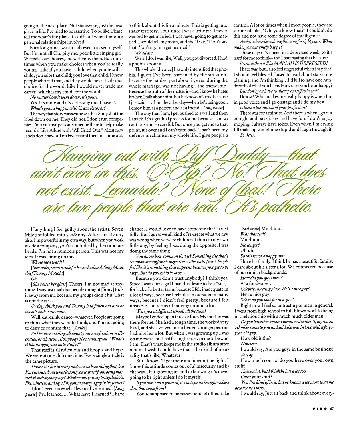No. With the “hard-partying rap posse.” That's what they wrote in the New York Post. MARIAH's SEXCAPADES was the headline. Just the terminology is ridiculous. I'm like, What is my life right now? Why am I waking up and seeing my face next to SEXCAPADES on the front cover? [Laughing] And then you read it and there's no sex!