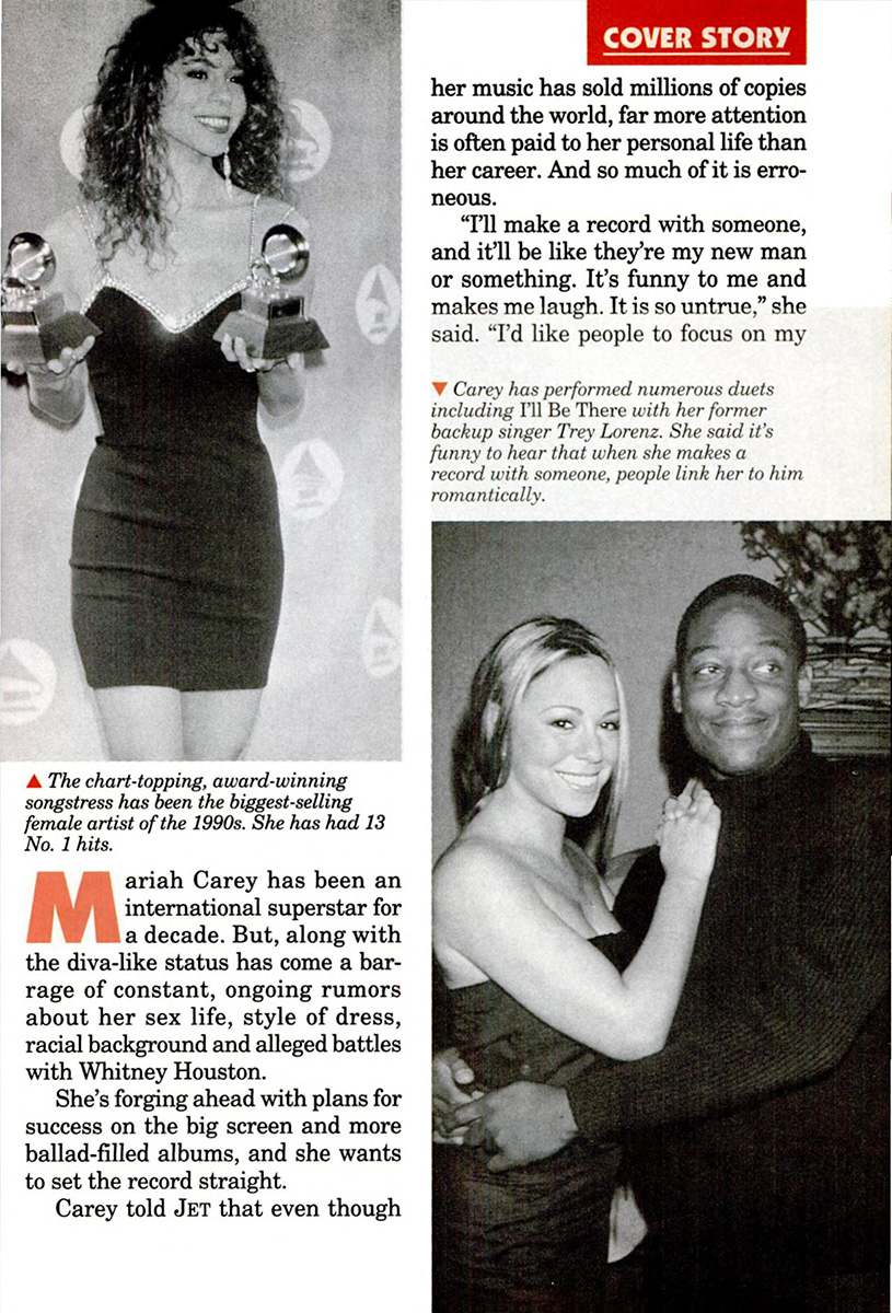 Mariah Carey has been an international superstar for a decade. But, along with the diva-like status has come a barrage of constant, ongoing rumors about her sex life, style of dress, racial background and alleged battles with Whitney Houston.