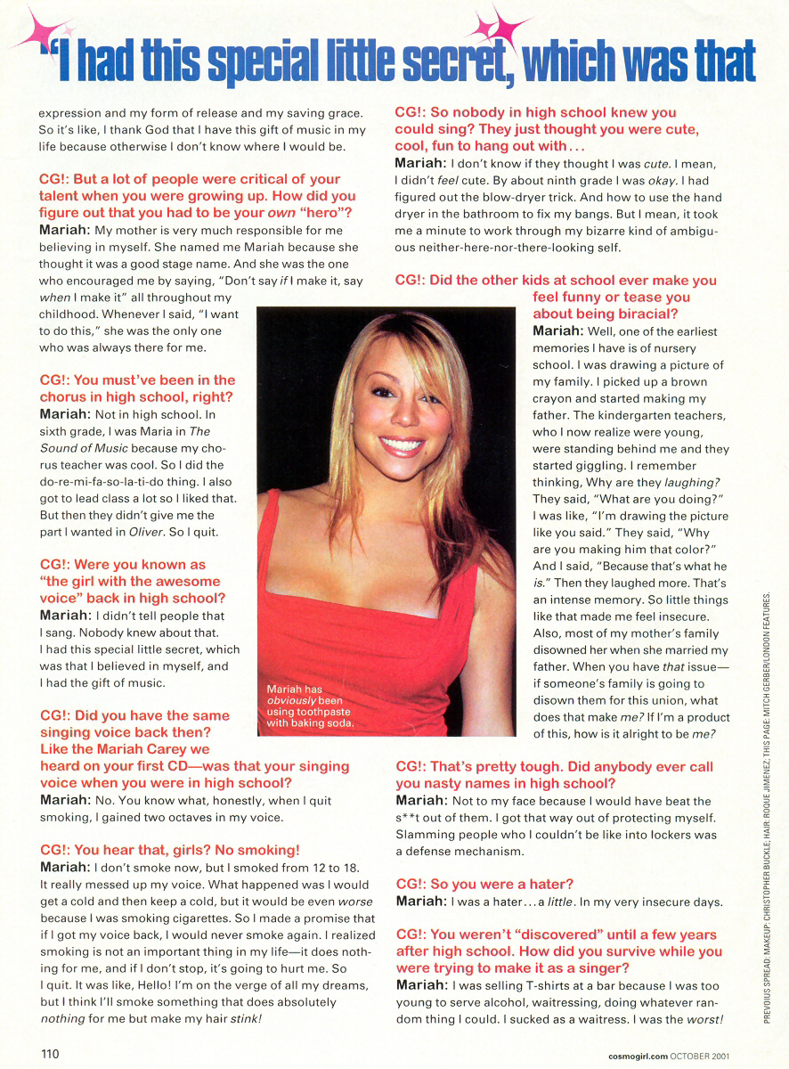 Did you have the same singing voice back then? Like the Mariah Carey we heard on your first CD — was that your singing voice when you were in high school?