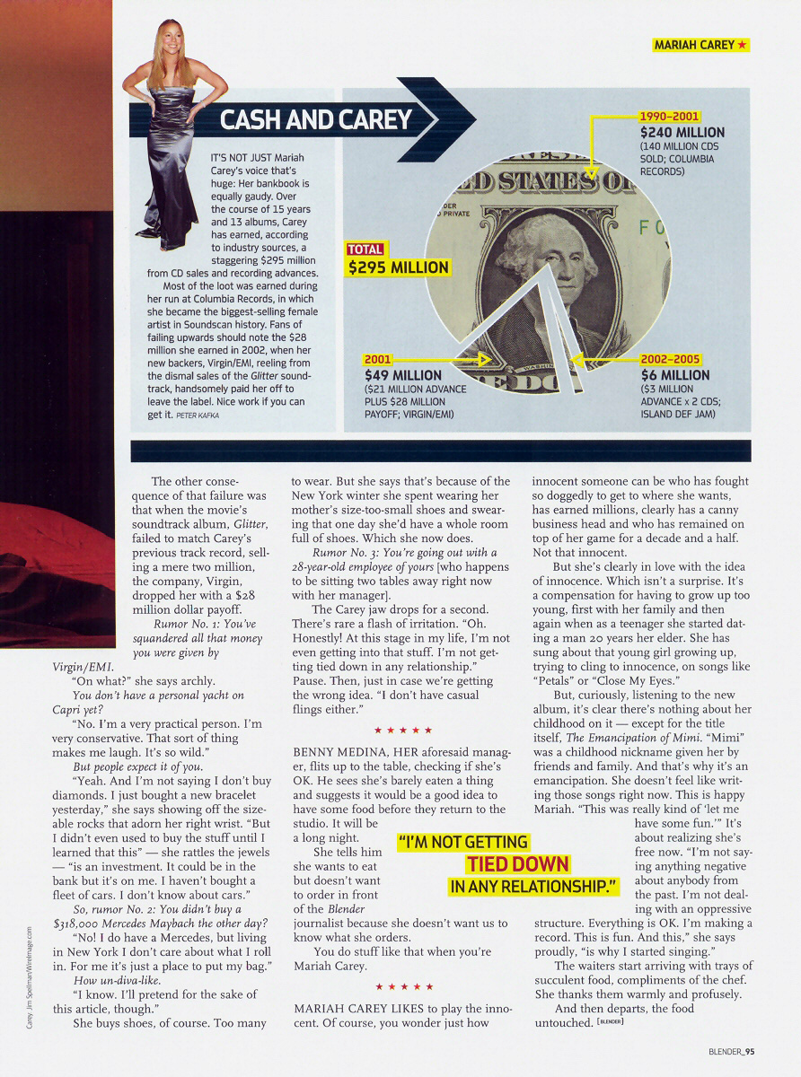Mariah Carey likes to play the innocent. Of course, you wonder just how innocent someone can be who has fought so doggedly to get to where she wants, has earned millions, clearly has a canny business head and who has remained on top of her game for a decade and a half. Not that innocent.