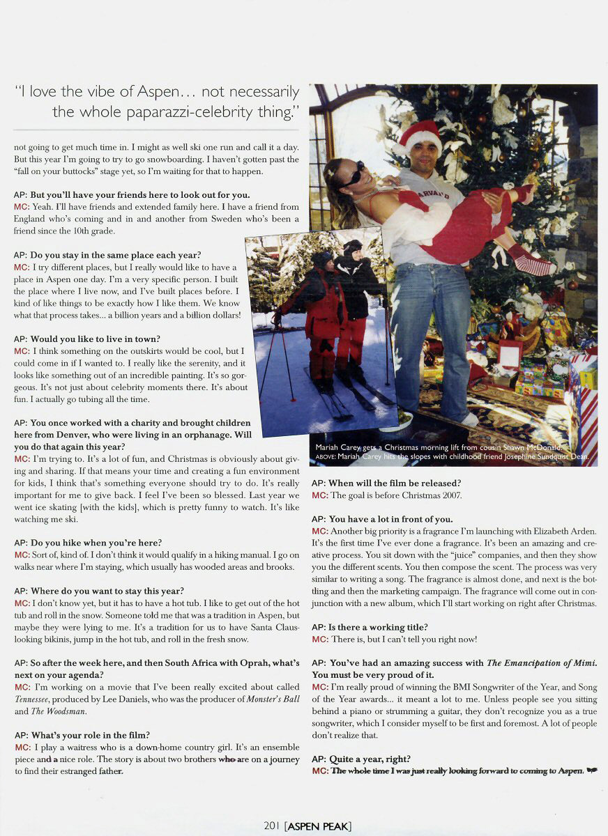 Megastardom does not come without its hard work, passion, generous spirit, and quest for new and creative outlets… at least for Mariah Carey. The singer, songwriter, actress, and soon-to-be fragrance maker is on the go, on her way to Aspen, and has no plans of slowing down.
