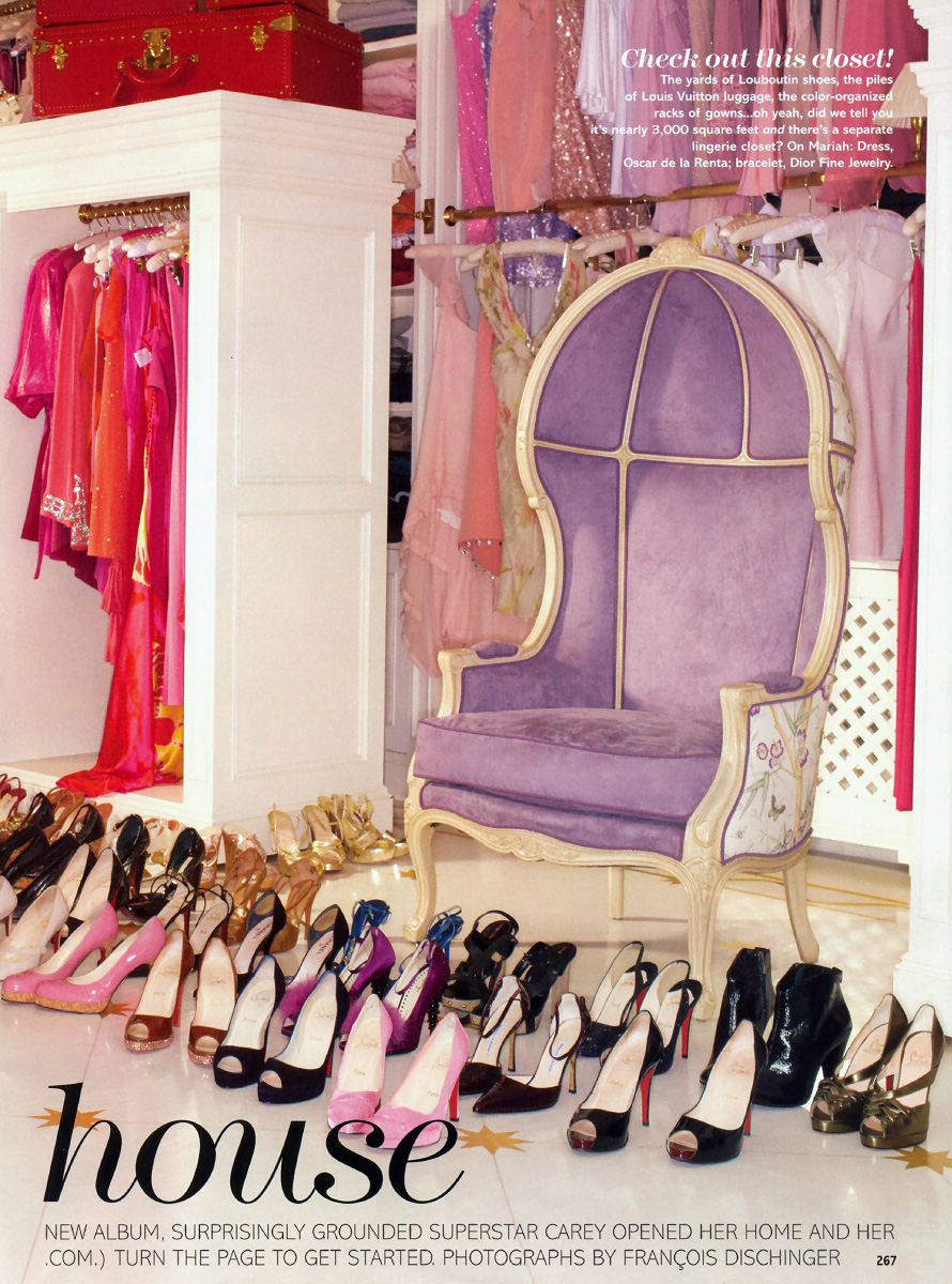 Her marriage ended in divorce in 1998. Then, in 2001, Mariah checked herself into a hospital for exhaustion, creating a tabloid frenzy. But two months later she was onstage again, serenading the nation at the 9/11 "America: A Tribute to Heroes" telethon. Now, at 37, she's sold 160 million albums worldwide, earned five Grammys and is tied for number-one hits in the United States with none other than Elvis Presley. Oh, and she launched her own M by Mariah Carey fragrance in September and is preparing for her new album tour. Privately, the star with a set of pipes and a sense of humor (she dubbed her home with ex Mottola "Sing Sing") has created her own paradise in New York's Tribeca neighborhood, where she moved in 2001. It's a triplex penthouse apartment decorated in shades of gold and pink, with framed family snapshots covering practically every surface. At the photo shoot, Mariah gave me a complete home tour and opened up about everything from her obsession with lounge chairs to her dysfunctional childhood and her current love life.