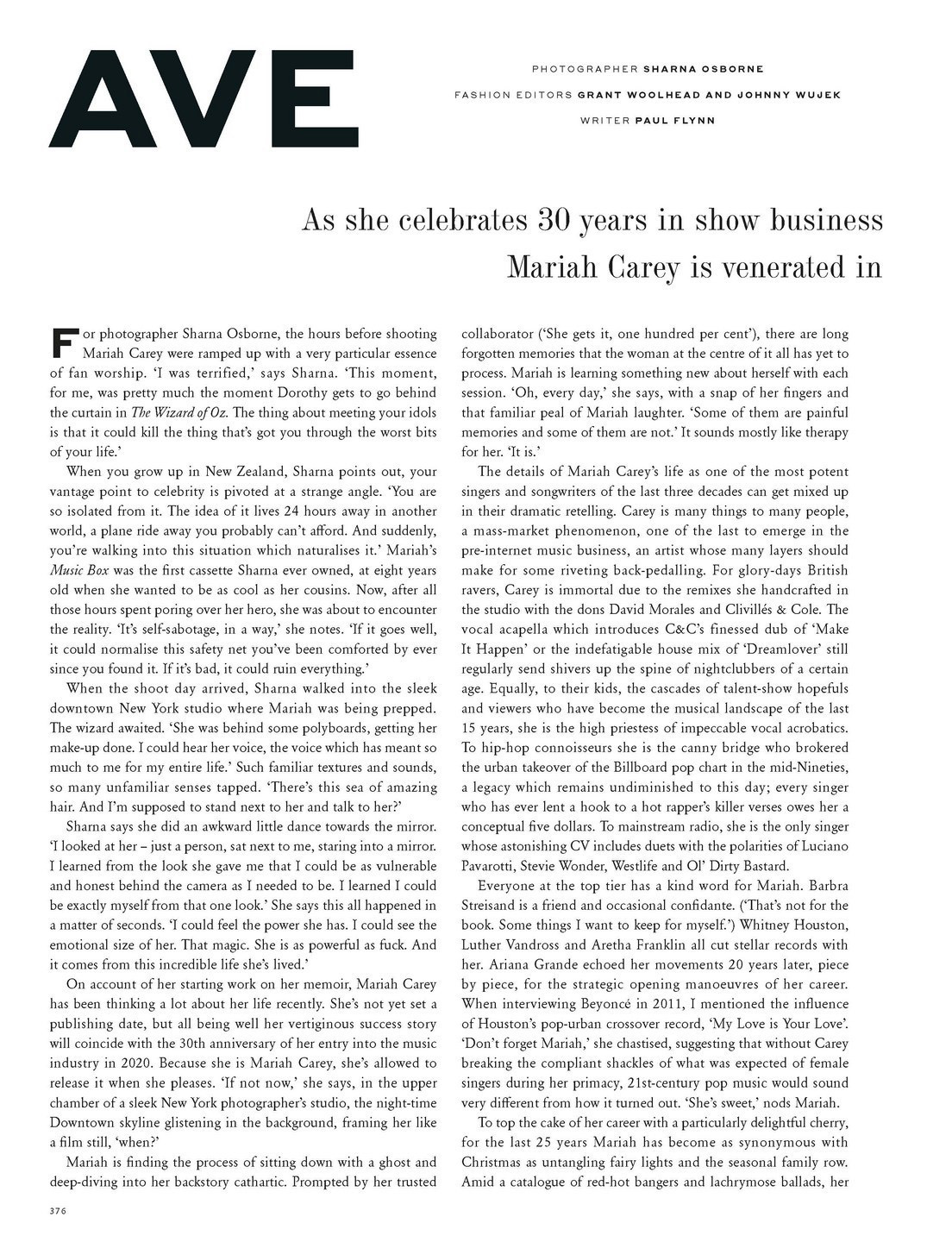 For photographer Sharna Osborne, the hours before shooting Mariah Carey were ramped up with a very particular essence of fan worship. “I was terrified,” says Sharna. “This moment, for me, was pretty much the moment Dorothy gets to go behind the curtain in The Wizard of Oz. The thing about meeting your idols is that it could kill the thing that's got you through the worst bits of your life.”