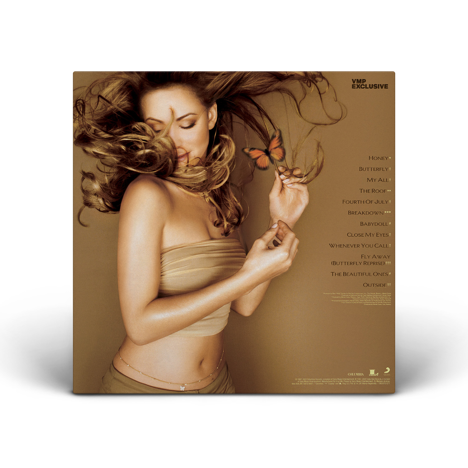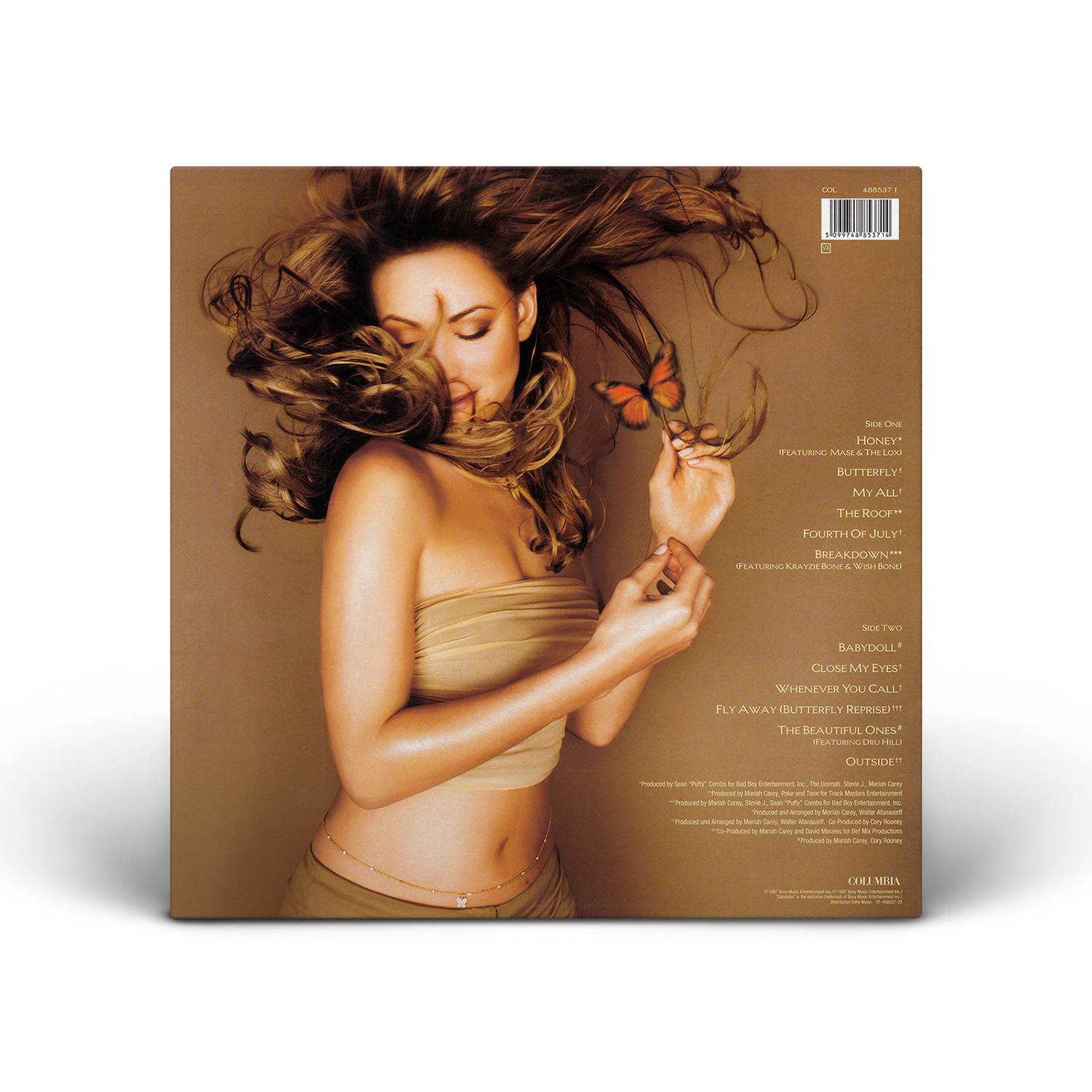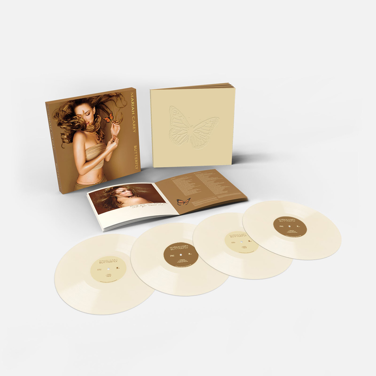 In the US, Butterfly was issued on CD, Cassette and MiniDisc. A specially priced value pack was also available, including the album on both CD and Cassette. International editions of Butterfly include two remixes of “Honey” as bonus tracks: the So So Def Radio Mix and the Def Club Mix. Europe also saw the album released on 12" Vinyl.