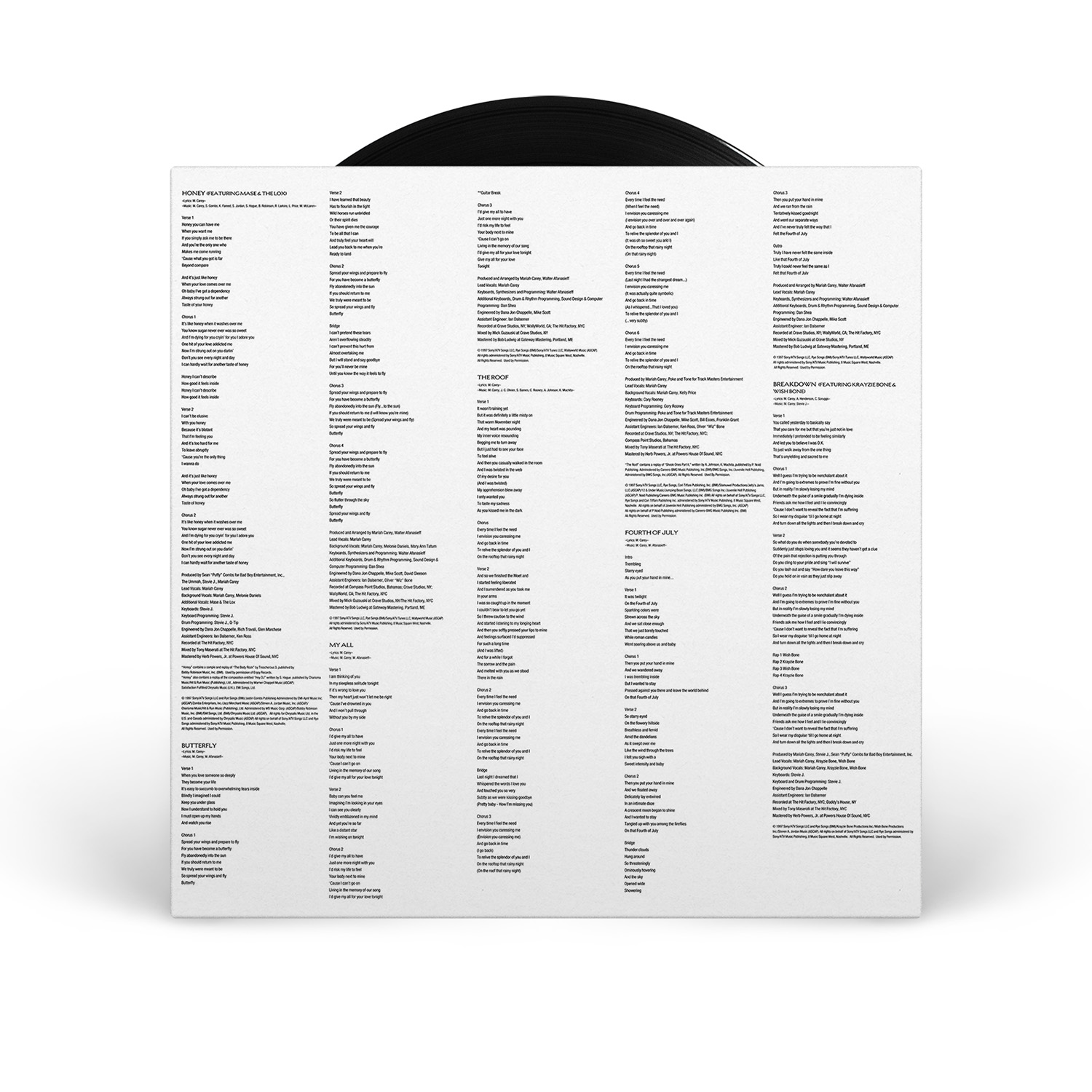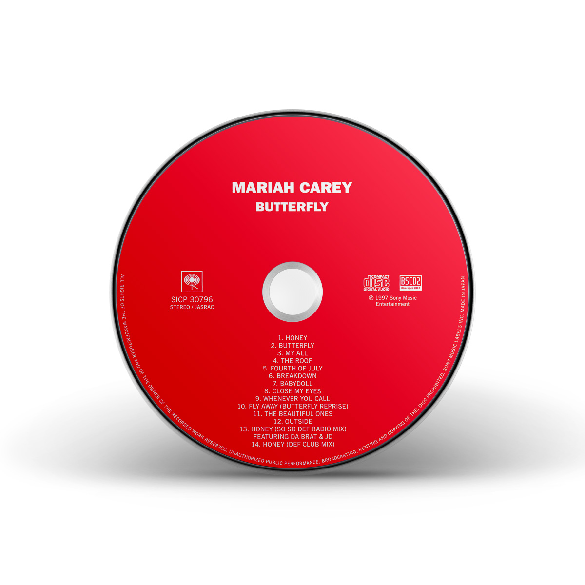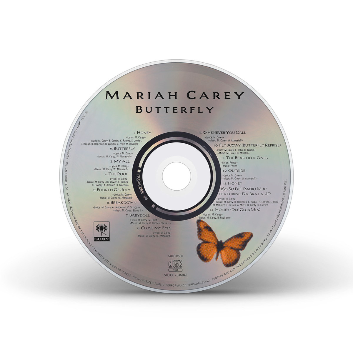 In the US, Butterfly was issued on CD, Cassette and MiniDisc. A specially priced value pack was also available, including the album on both CD and Cassette. International editions of Butterfly include two remixes of “Honey” as bonus tracks: the So So Def Radio Mix and the Def Club Mix. Europe also saw the album released on 12" Vinyl.