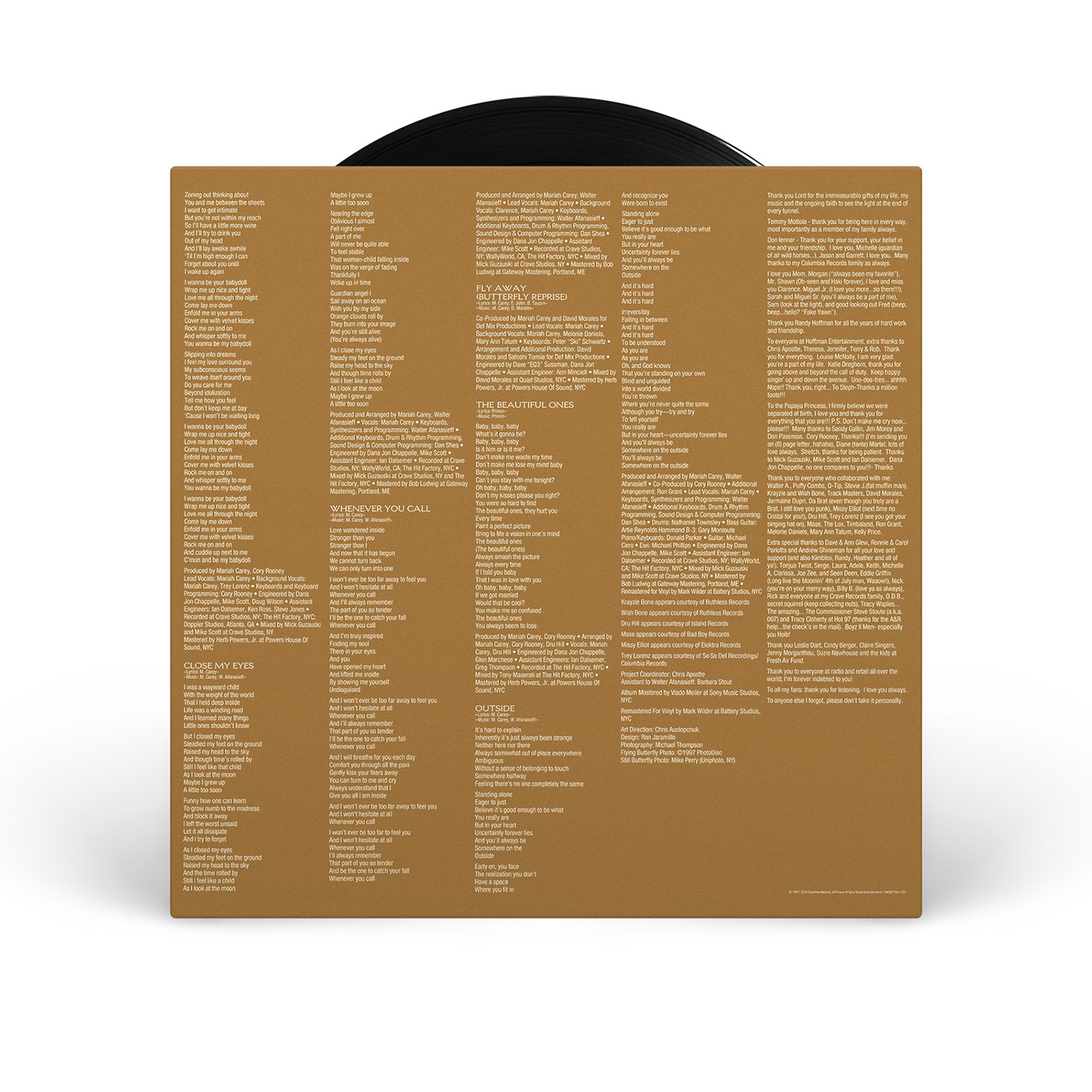 Mariah closed the album with “Outside.” “A lot of people could relate to it for a lot of different reasons,” Mariah told Molly Meldrum in 1997. “For me it was basically about being multiracial and feeling like I come from another planet because I never knew anyone in the exact same position as me in that way. And I know other people that are mixed, but somehow because of the way I look — because I'm kind of ambiguous looking, I could be anything really — the experiences that I've had made me feel like an outsider in a lot of ways in every situation that I'm in. Less now, but then things will turn up that will just kind of reinforce that inner feeling that rises every now and then.”
