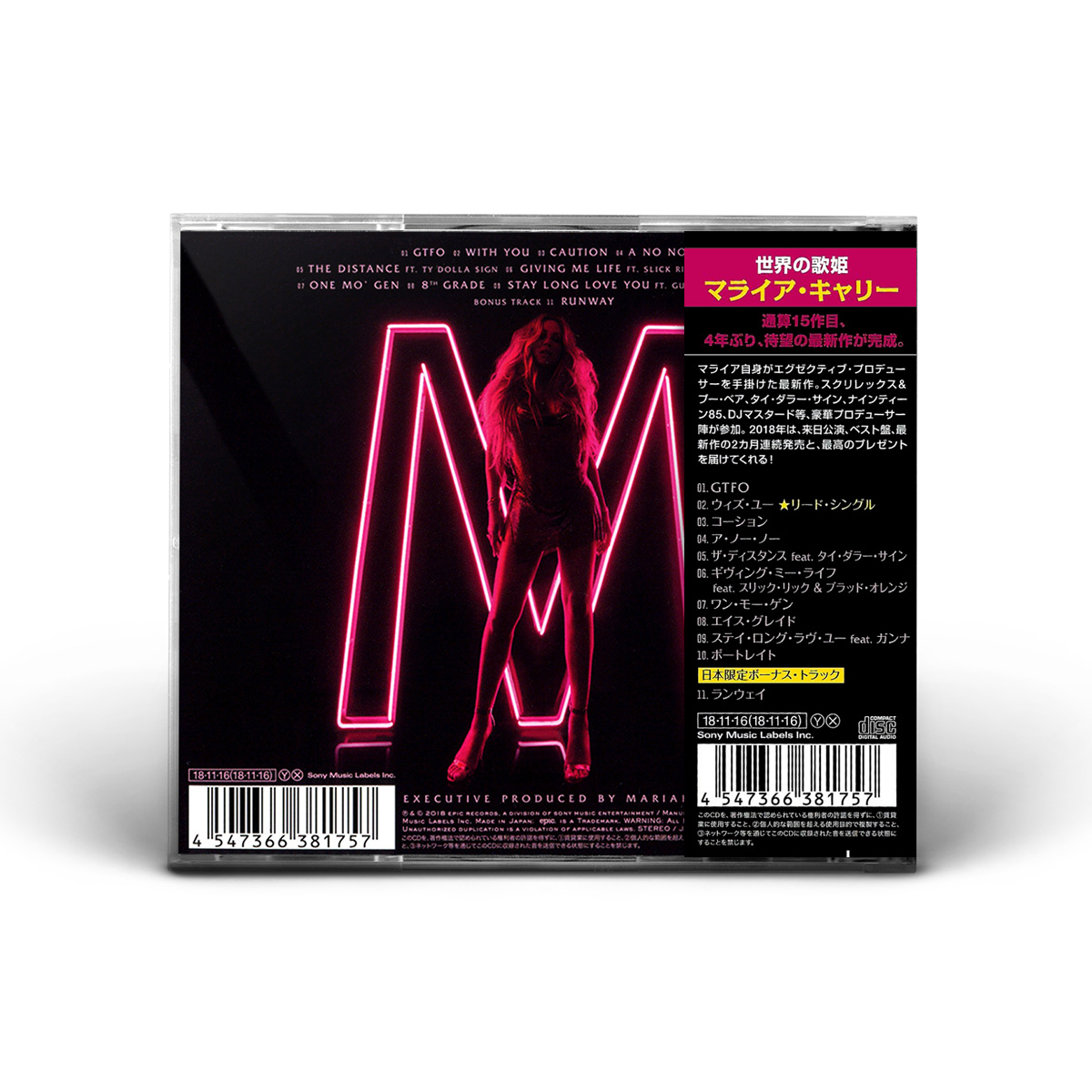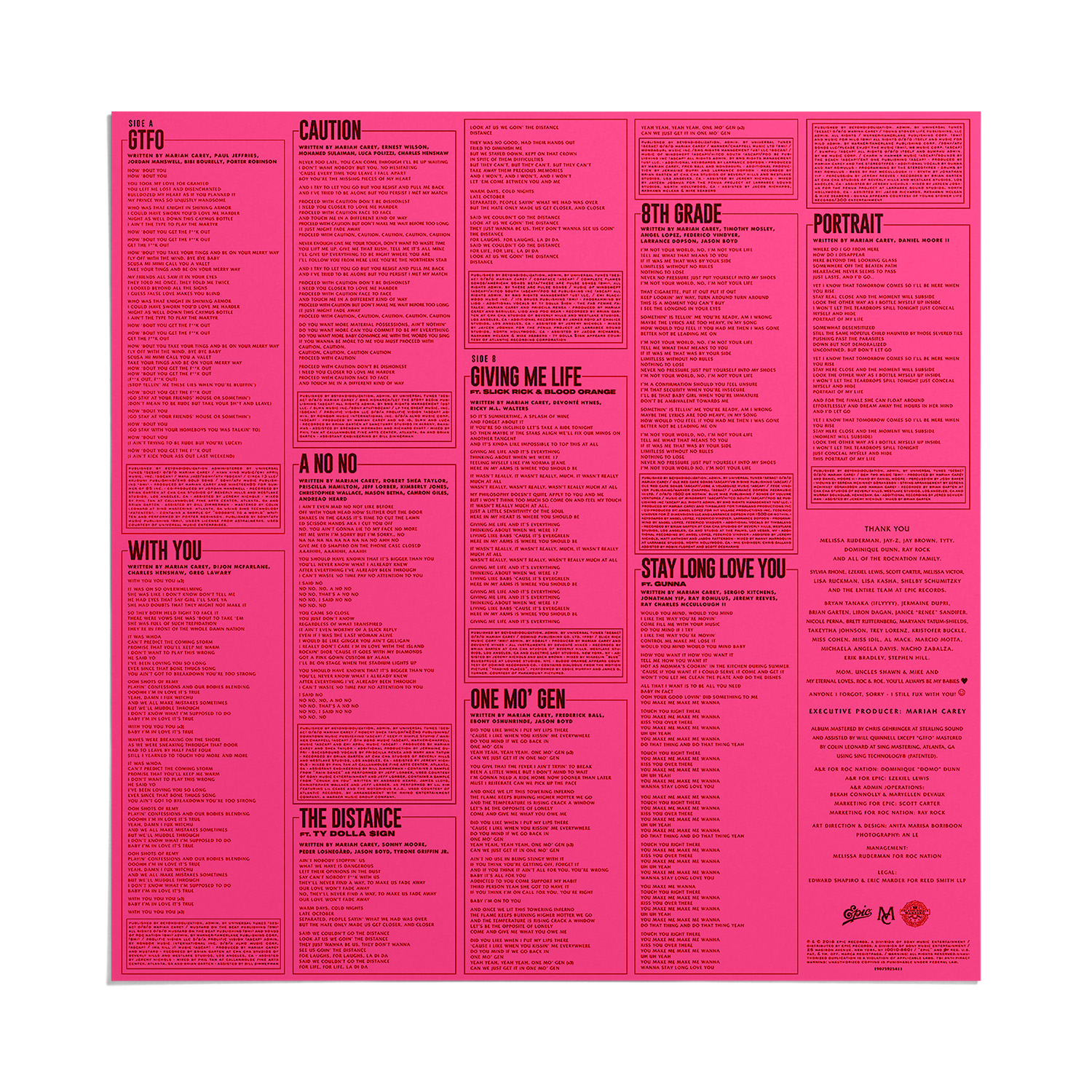 The first taste from the album came on September 13, 2018, with the release of “GTFO.” “I wanted to give my fans and everyone a first listen that wasn't so serious,” Mariah said in a press release. “I've had so much fun making this album, and I wanted the first moment to reflect that light-hearted spirit.”