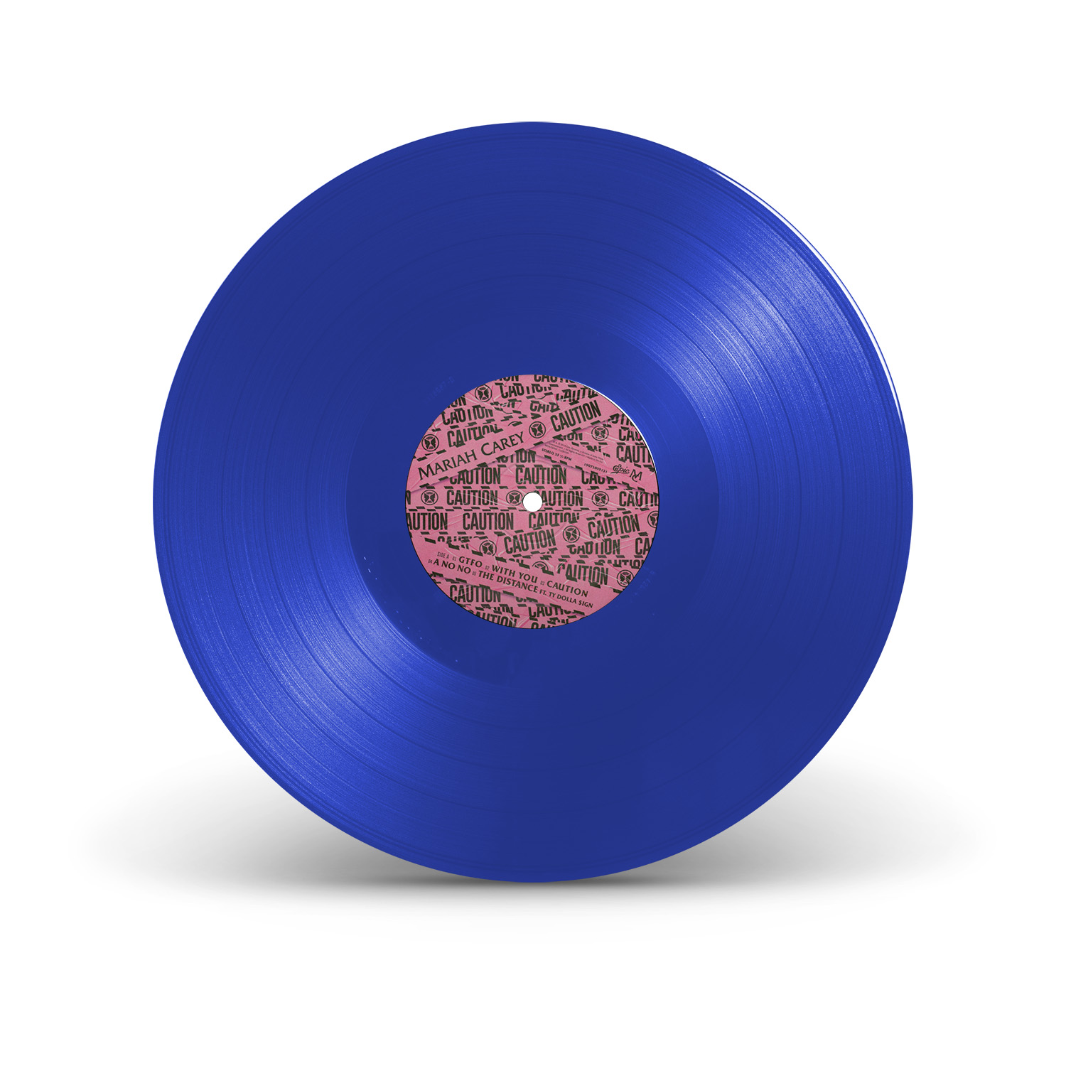 Four Caution variants were available on 12" vinyl: black vinyl, picture disc vinyl, translucent hot pink vinyl with three lithographs, and a blue vinyl, available exclusively through Barnes & Noble.
