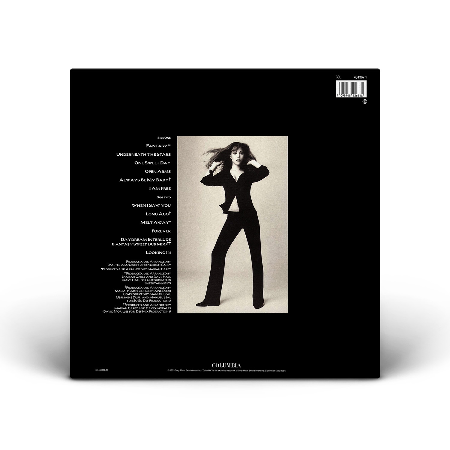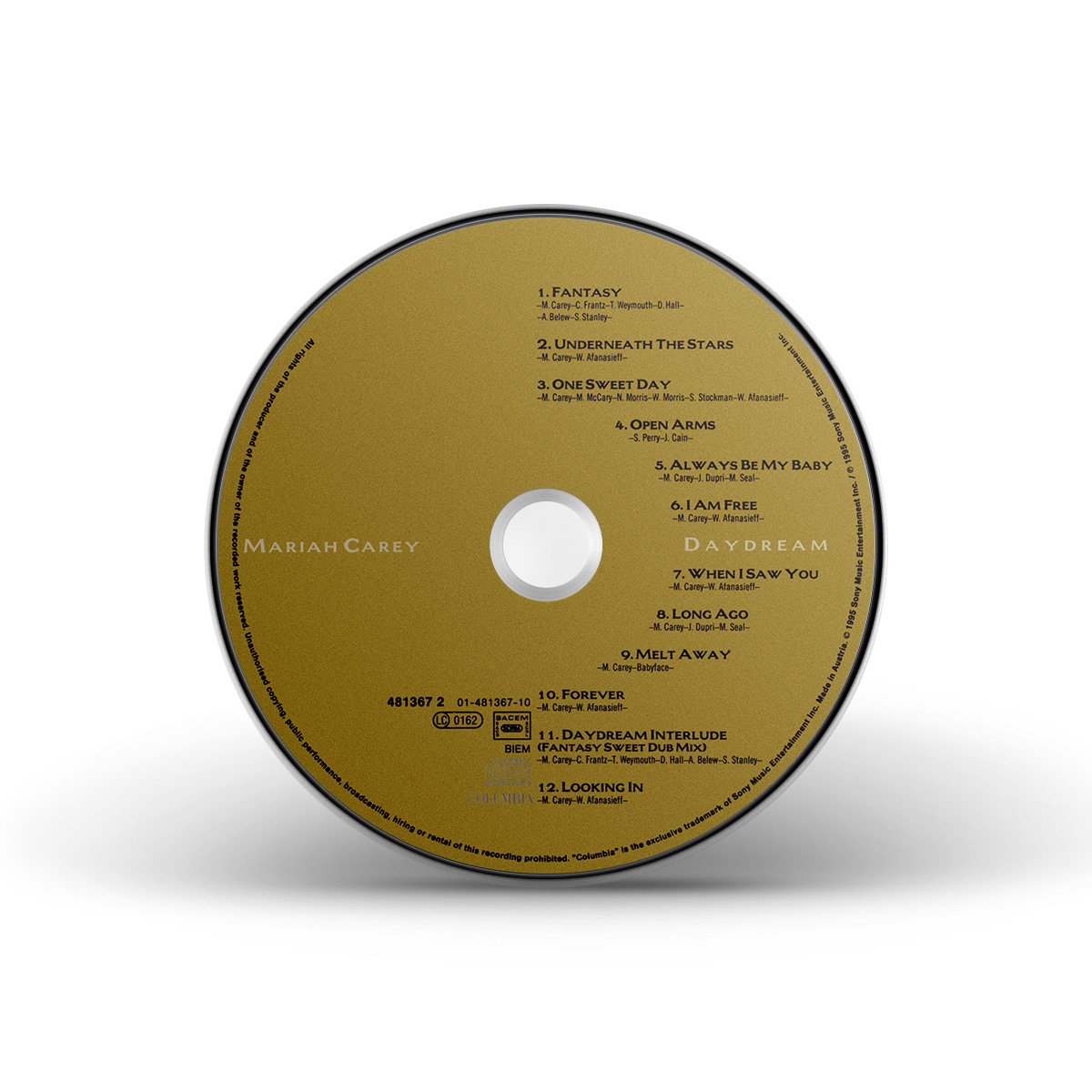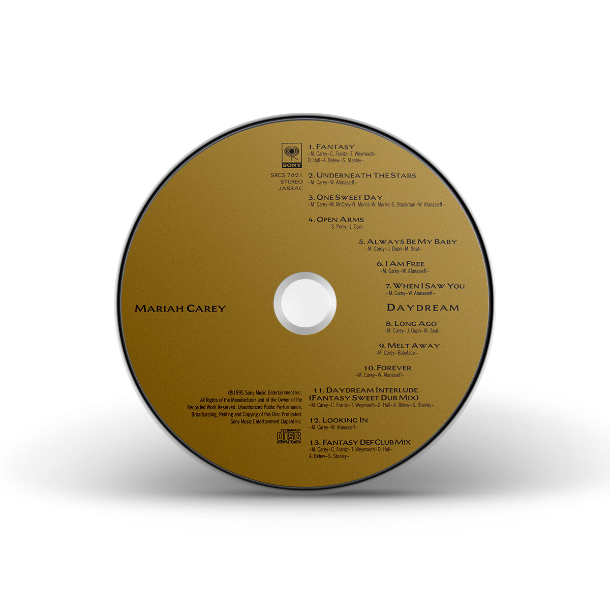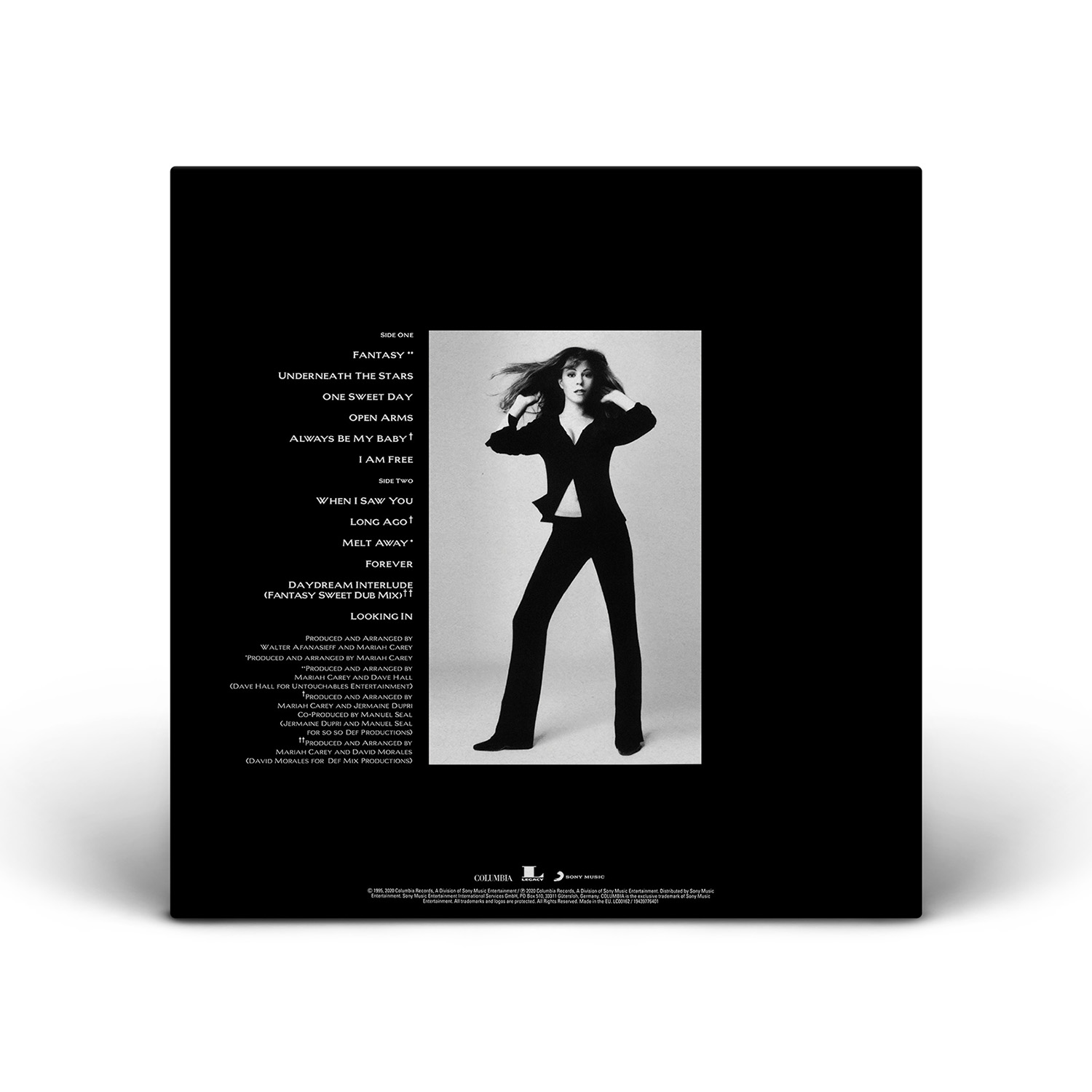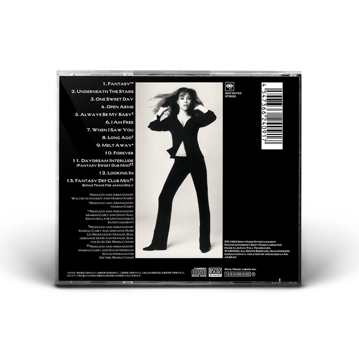 Daydream was issued on CD, Cassette, MiniDisc and — exclusively in Europe — 12" vinyl. In Japan, the album was available on CD and MiniDisc, featuring a slightly different front cover and the Radio Mix of “Fantasy” (listed as Def Club Mix) as a bonus track.