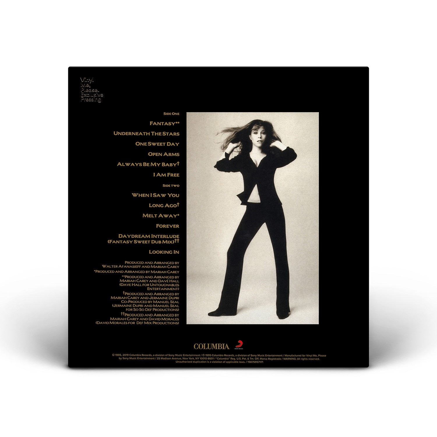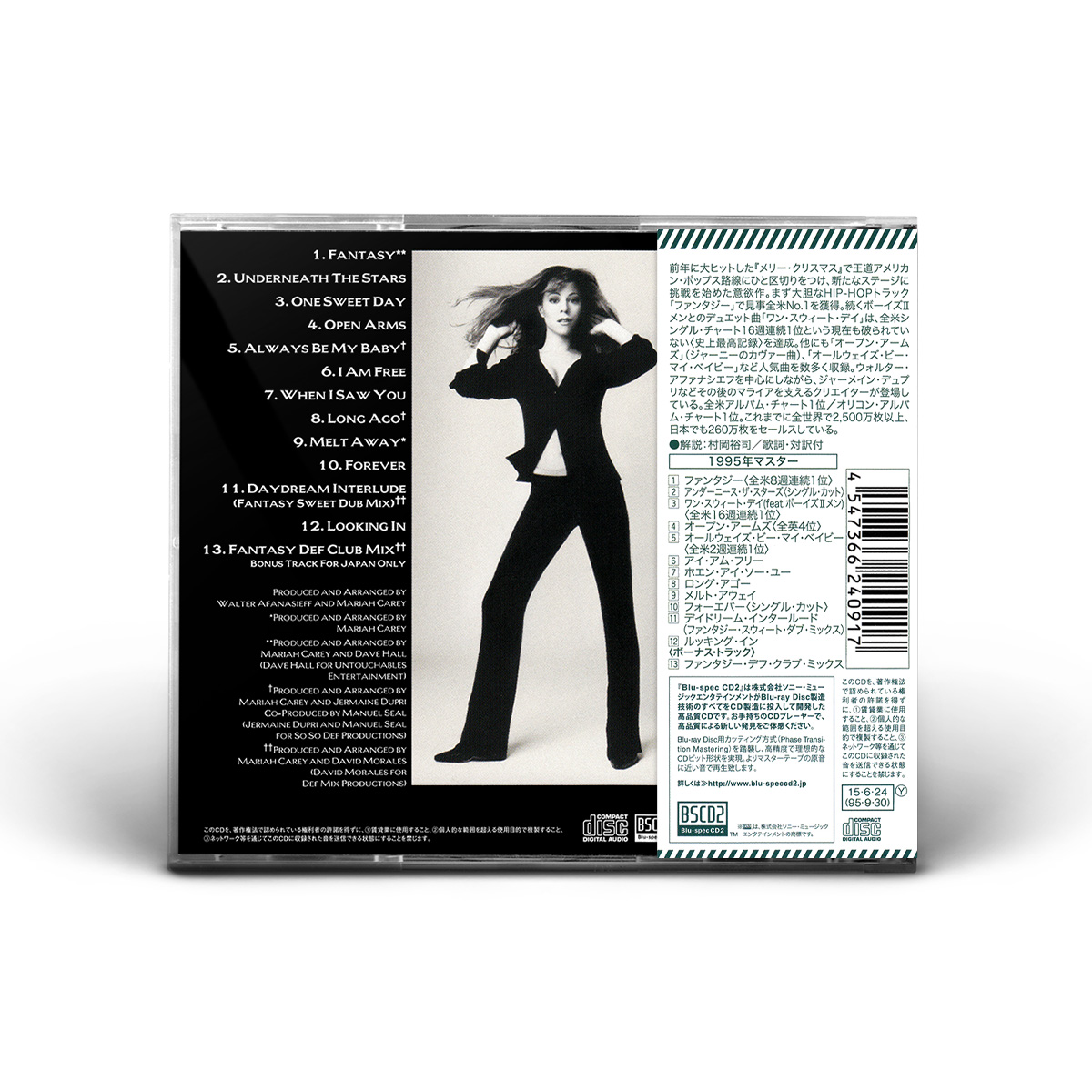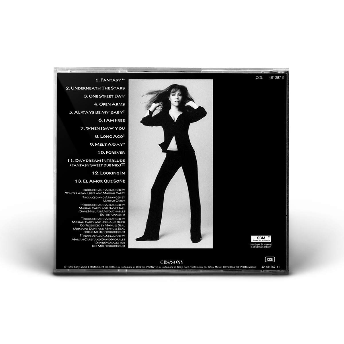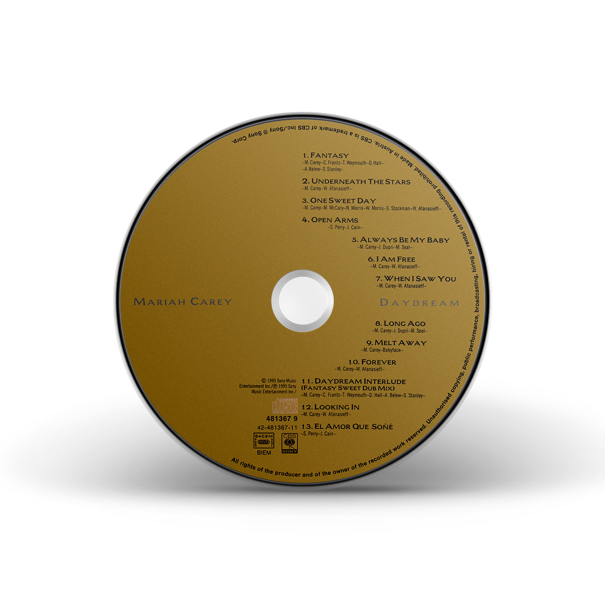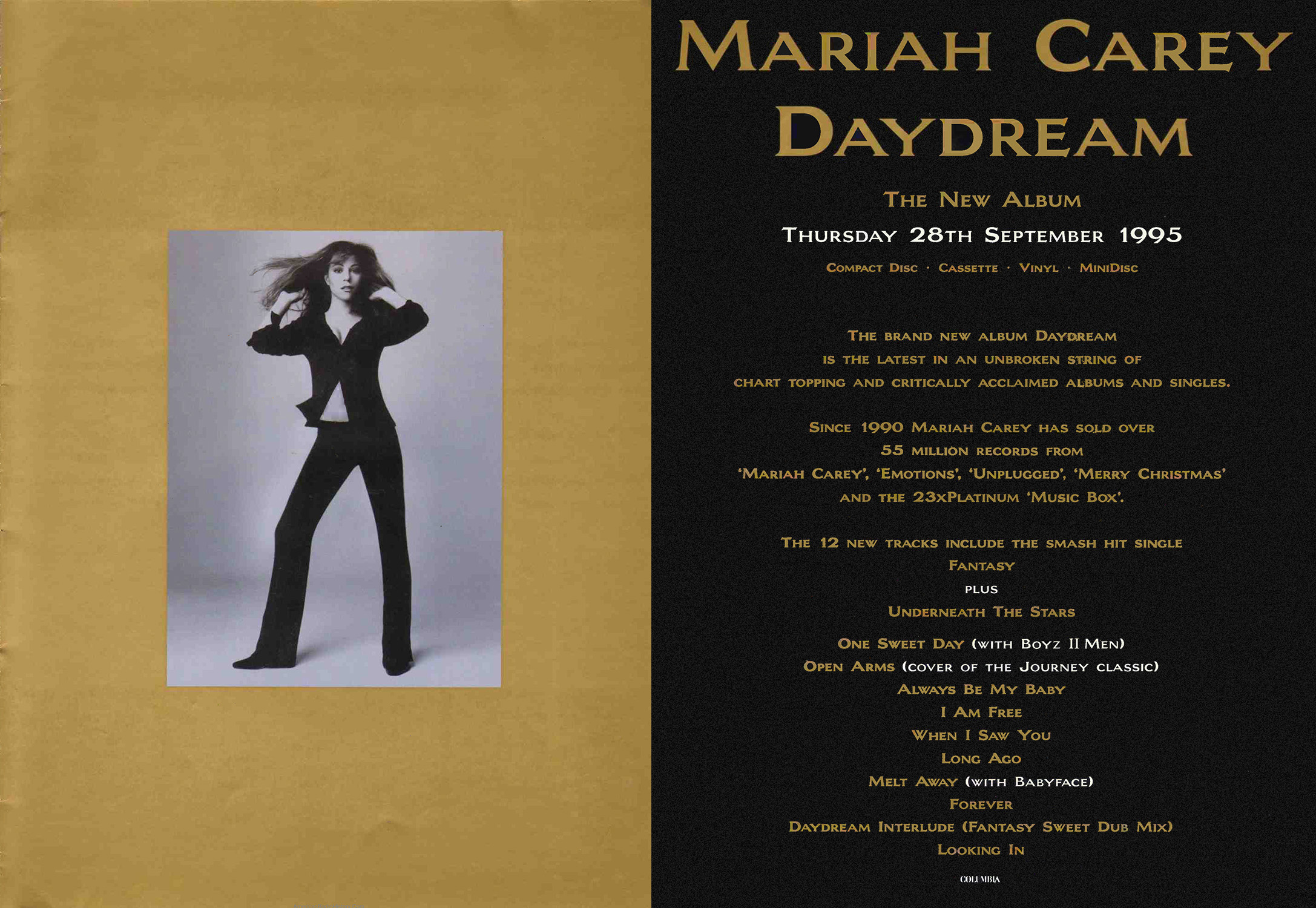 Daydream was issued on CD, Cassette, MiniDisc and — exclusively in Europe — 12" vinyl. In Japan, the album was available on CD and MiniDisc, featuring a slightly different front cover and the Radio Mix of “Fantasy” (listed as Def Club Mix) as a bonus track.