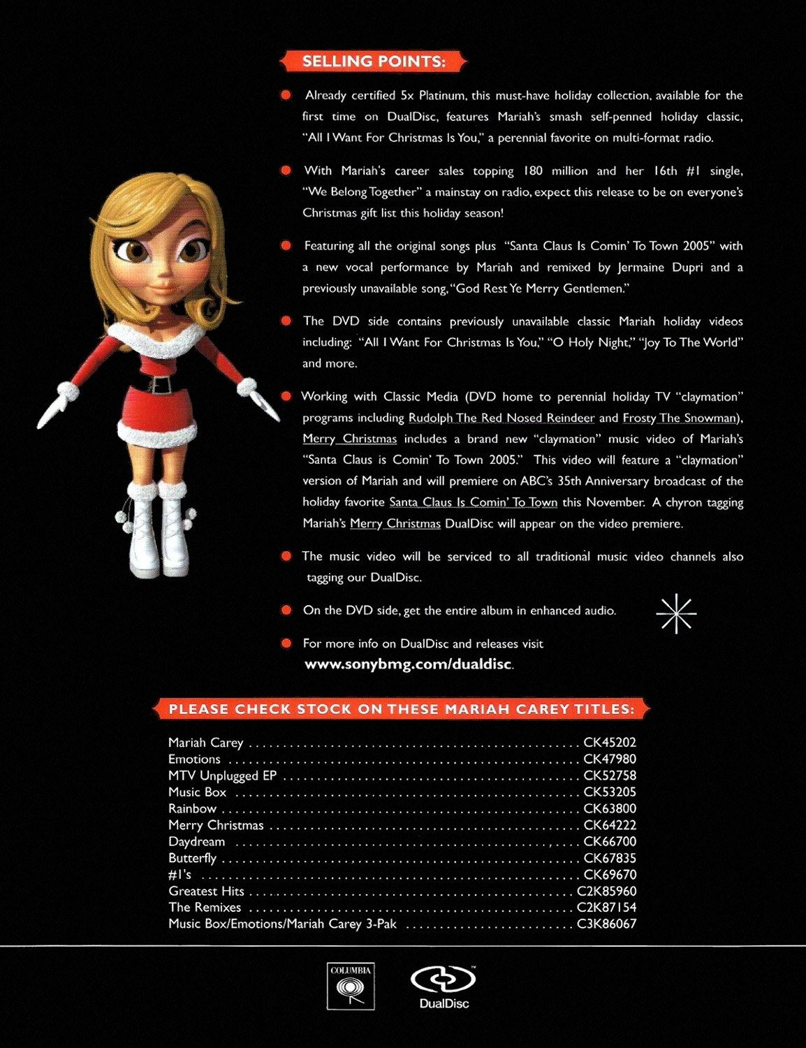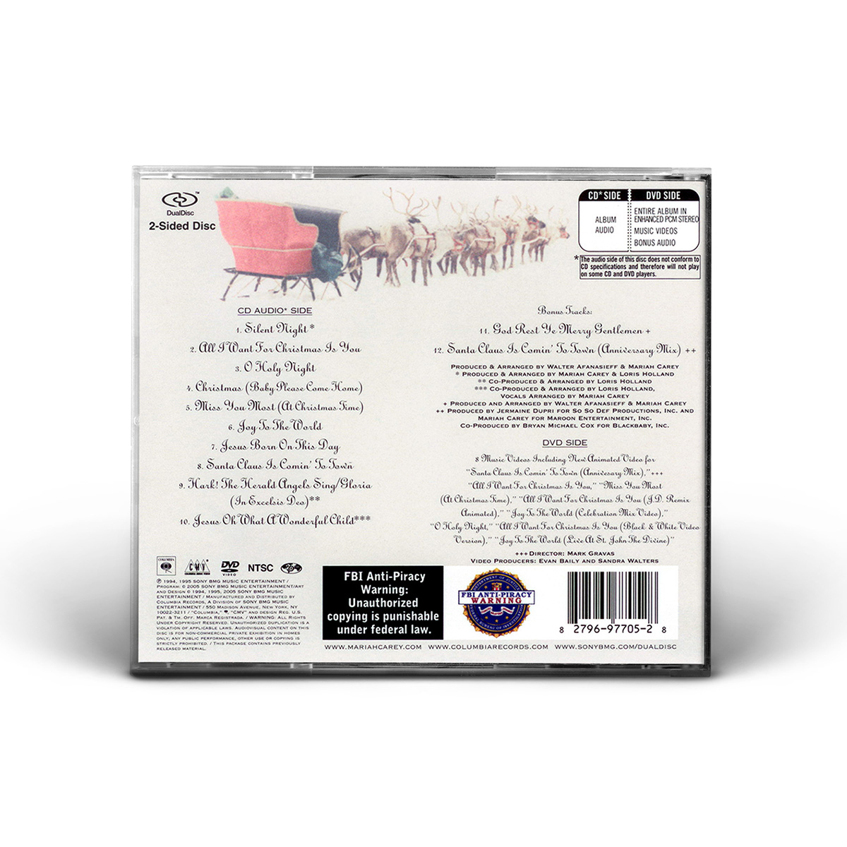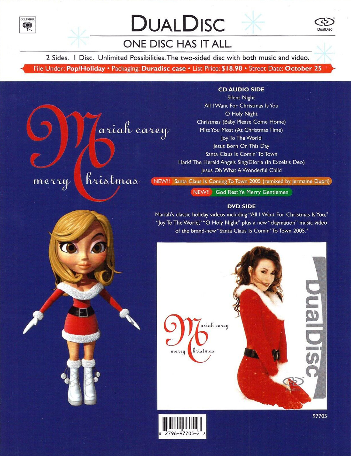 The DualDisc edition of Merry Christmas, released in 2005, includes the new Anniversary Mix of “Santa Claus Is Comin' To Town,” produced by Mariah Carey, Jermaine Dupri and Bryan-Michael Cox.