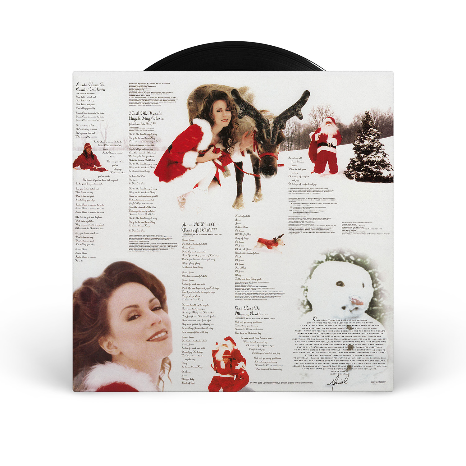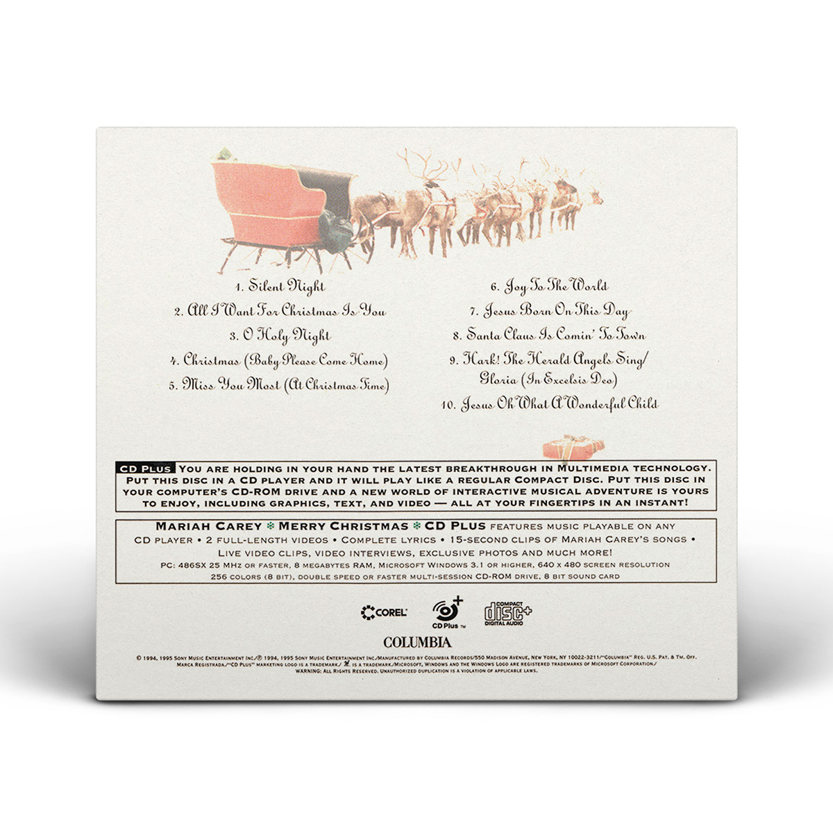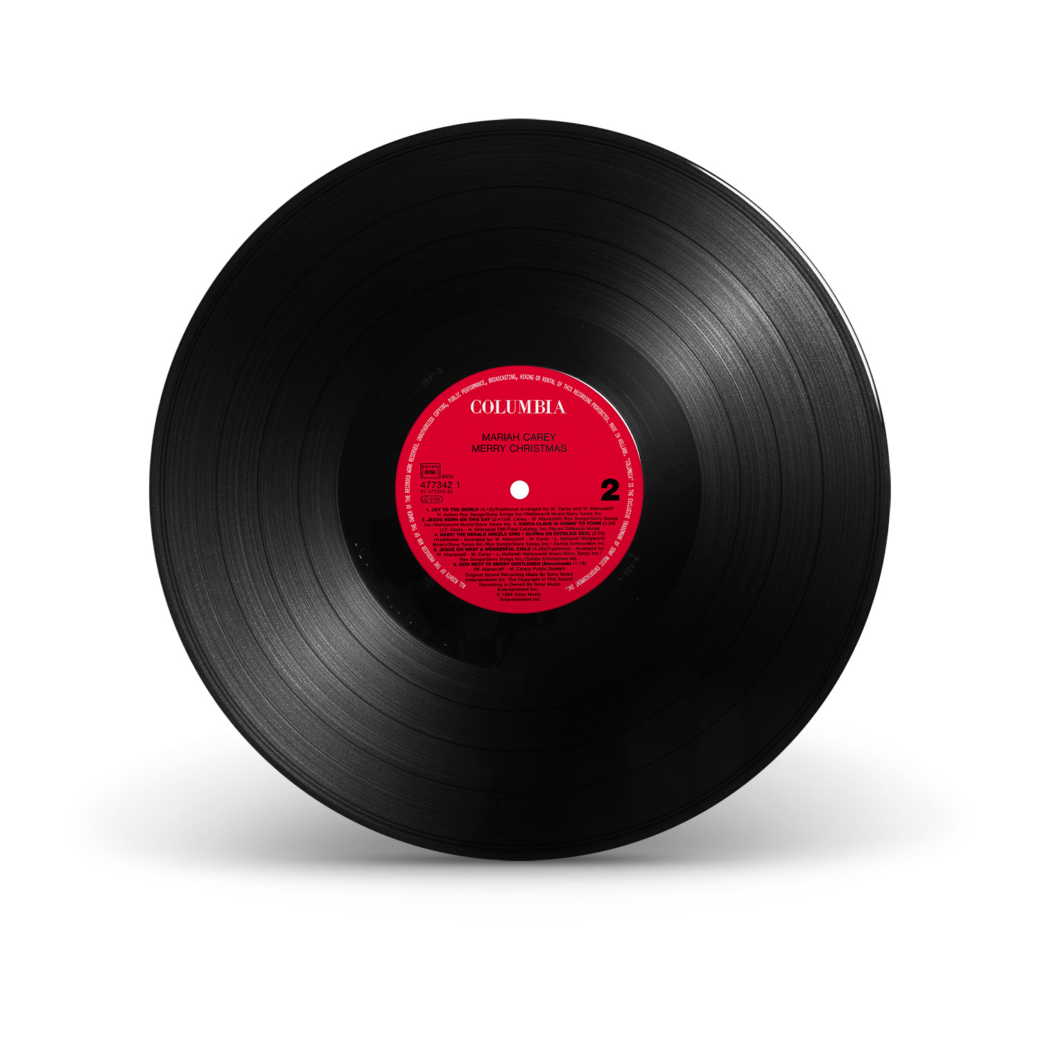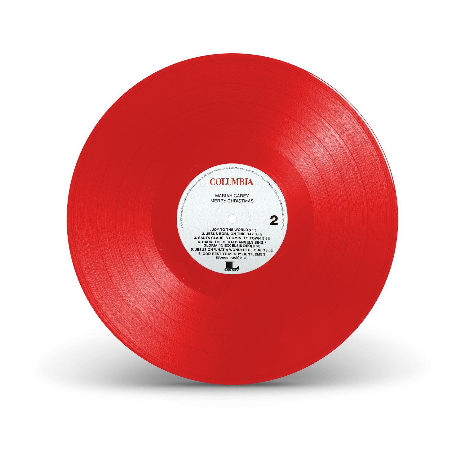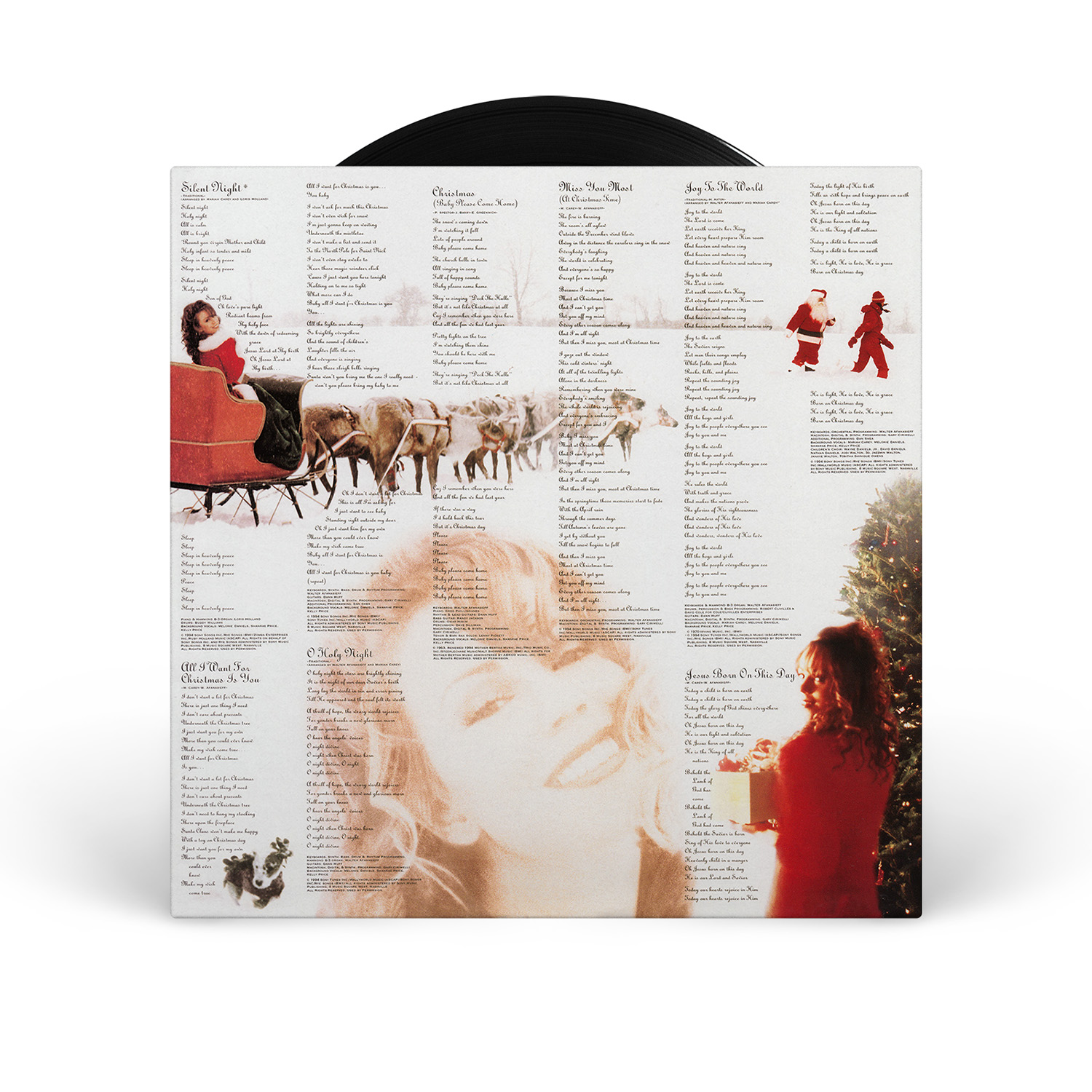 Merry Christmas was originally available on CD, Cassette and MiniDisc. International editions of the album include the bonus track “God Rest Ye Merry, Gentlemen.” In Europe, Merry Christmas was available on CD, Cassette, MiniDisc and 12" Vinyl.