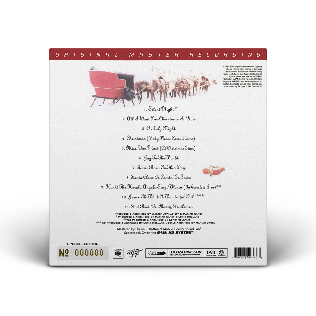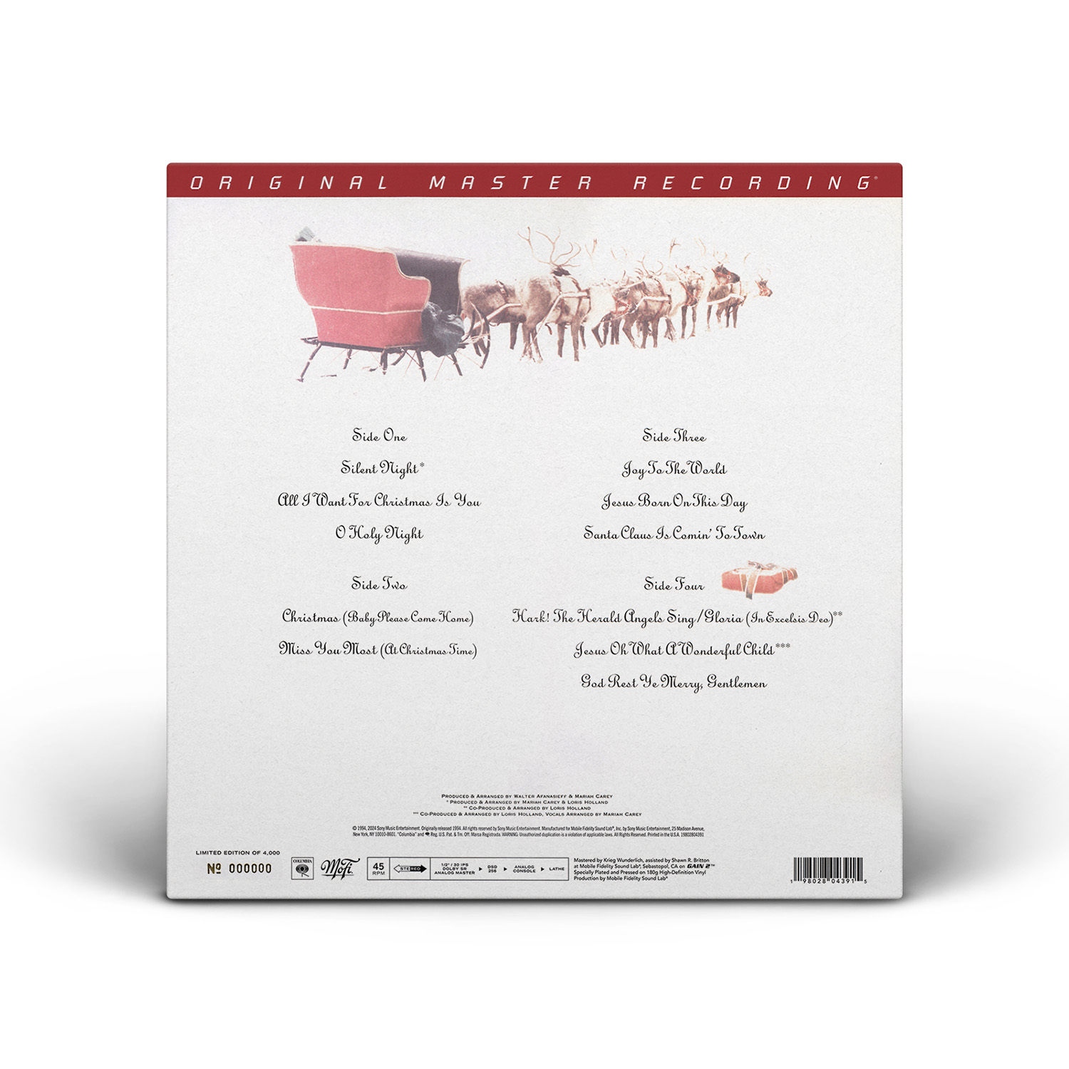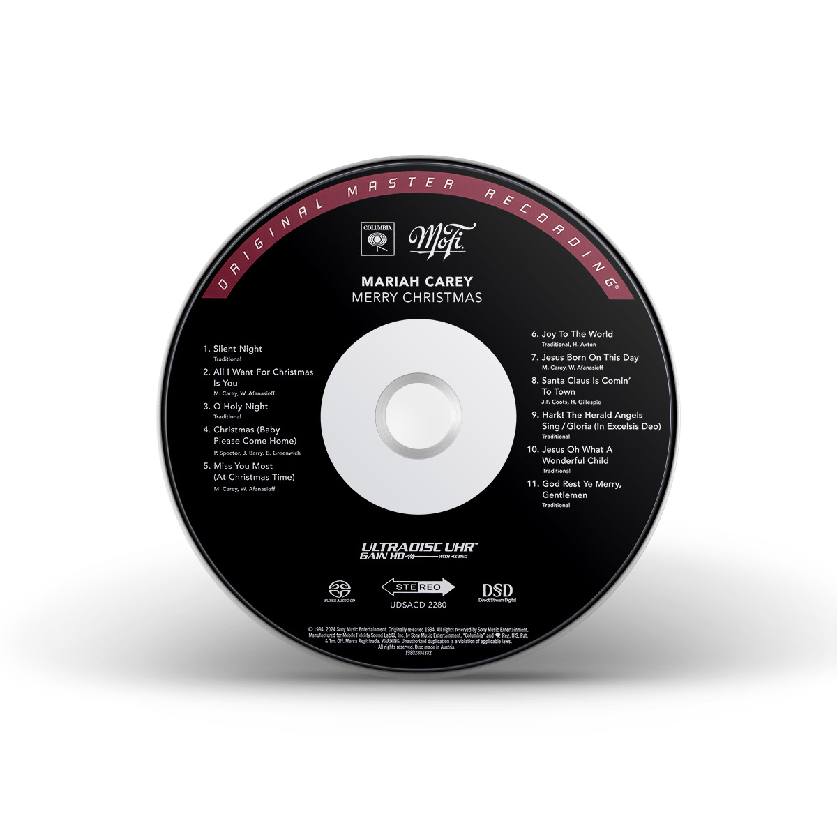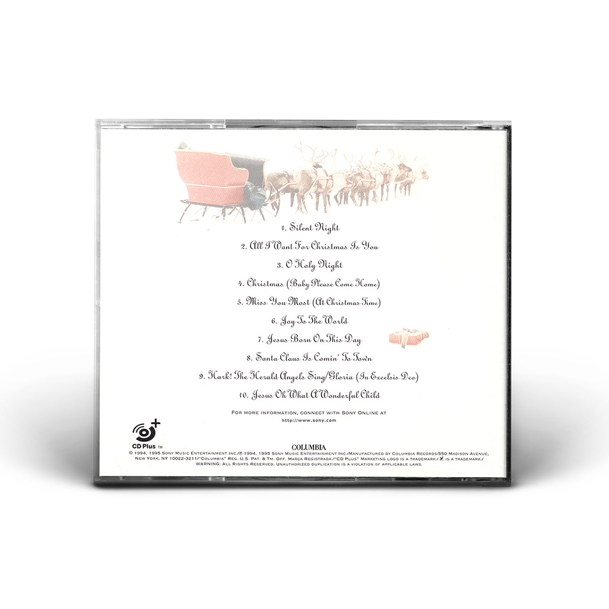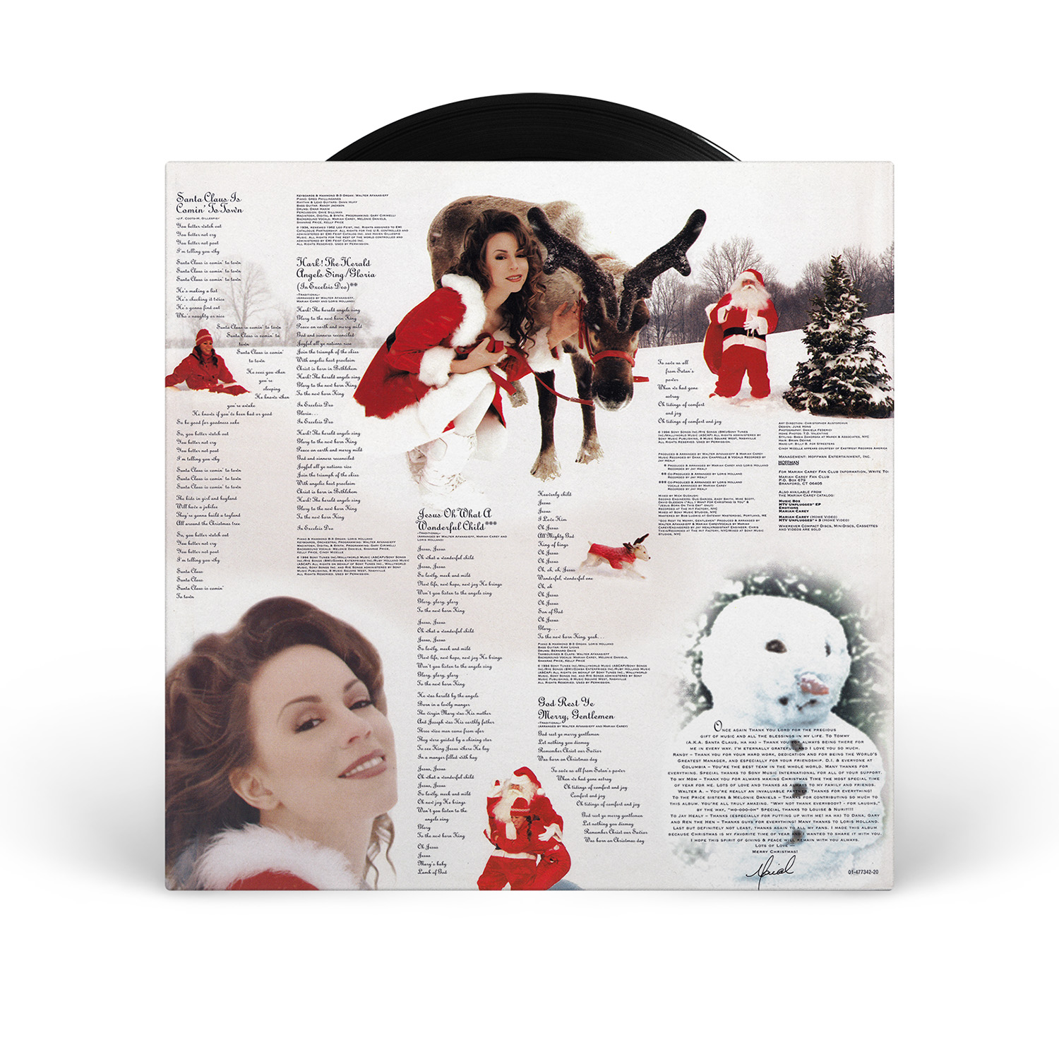 Merry Christmas was originally available on CD, Cassette and MiniDisc. International editions of the album include the bonus track “God Rest Ye Merry, Gentlemen.” In Europe, Merry Christmas was available on CD, Cassette, MiniDisc and 12" Vinyl.