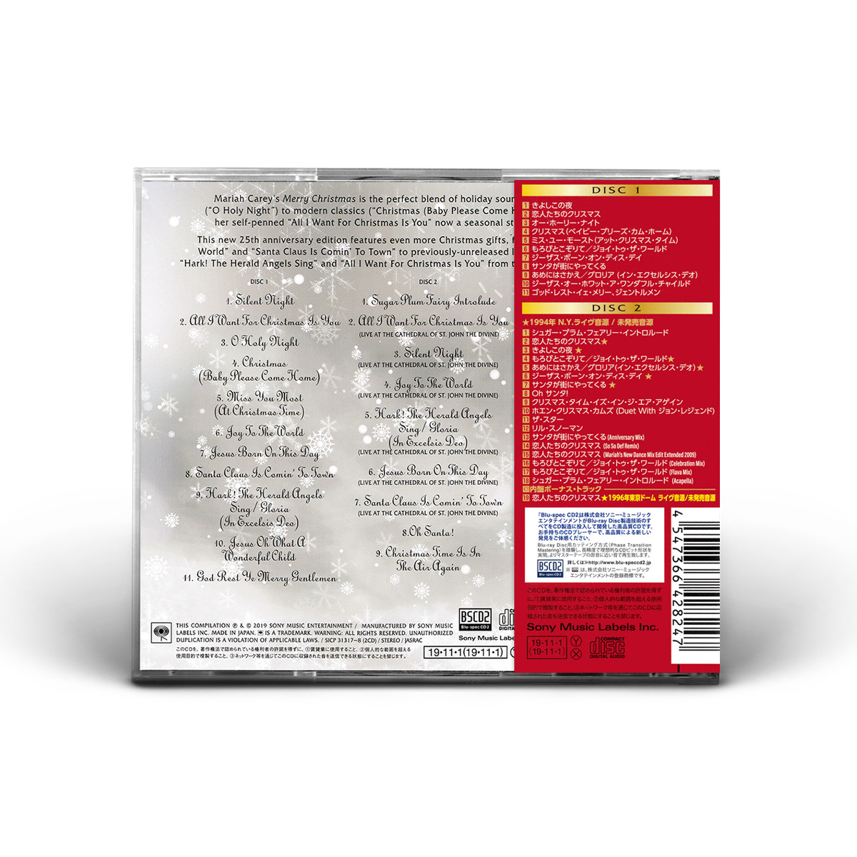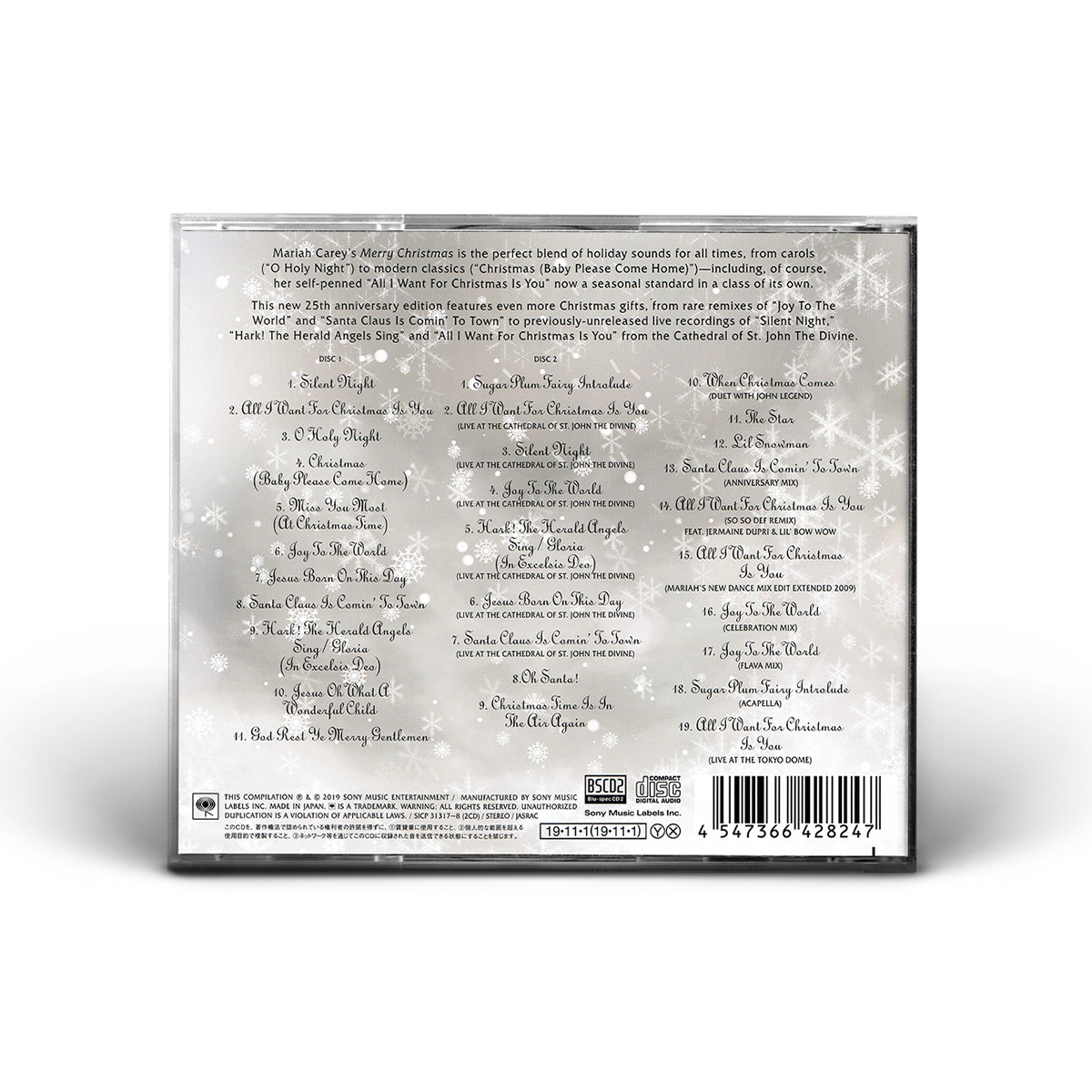 The Japanese release of the Deluxe Anniversary Edition of Merry Christmas, housed in a jewel case, includes the live version of “All I Want For Christmas Is You” from Mariah's Daydream Tour in Tokyo in 1996 as a bonus track.