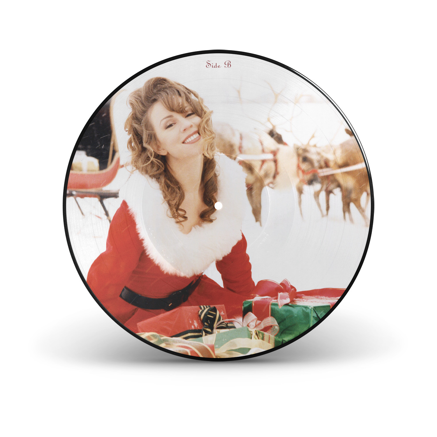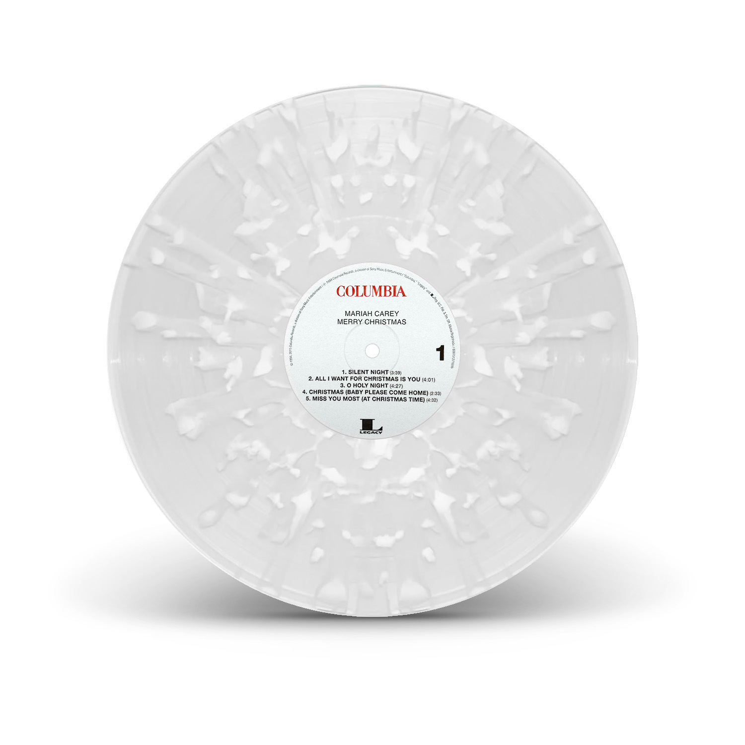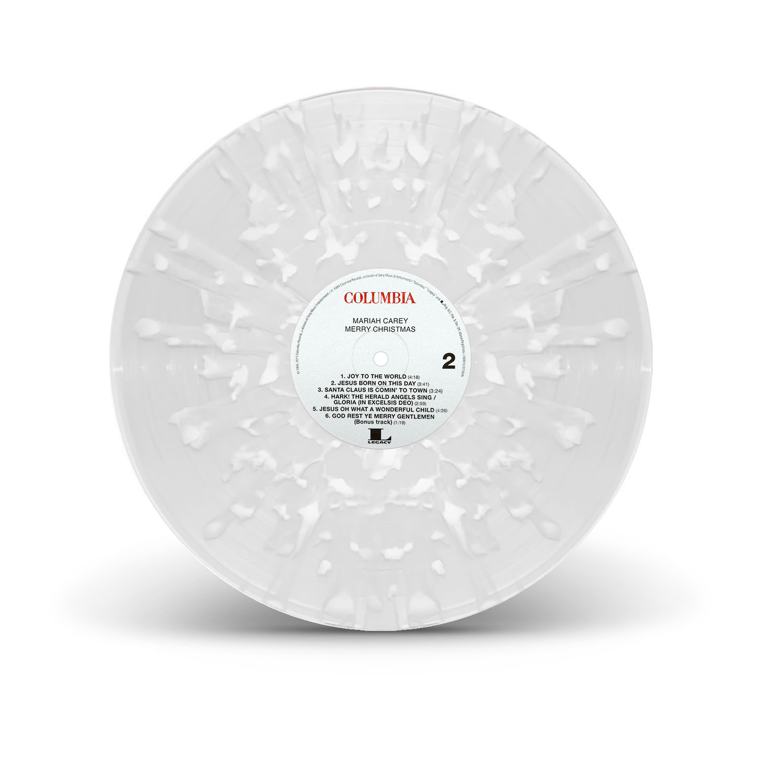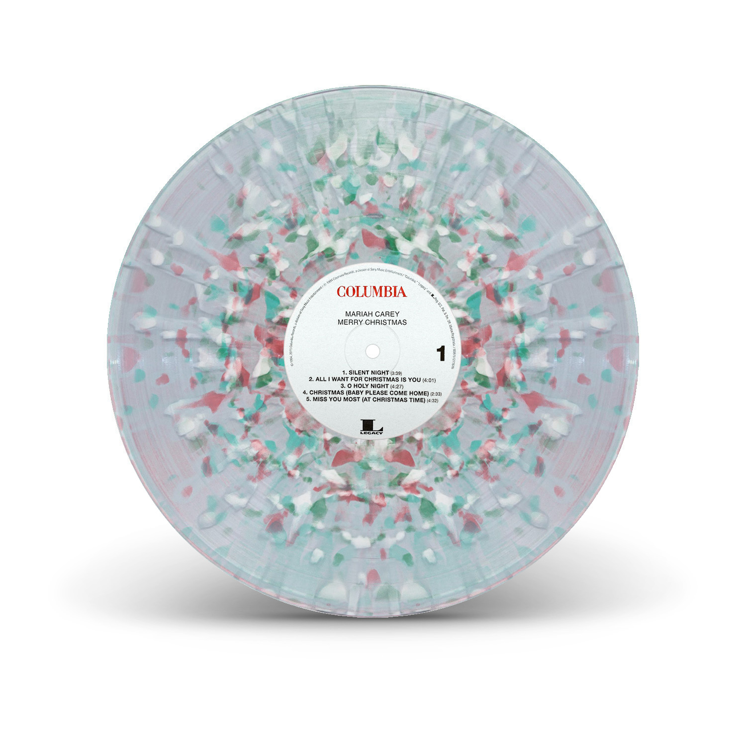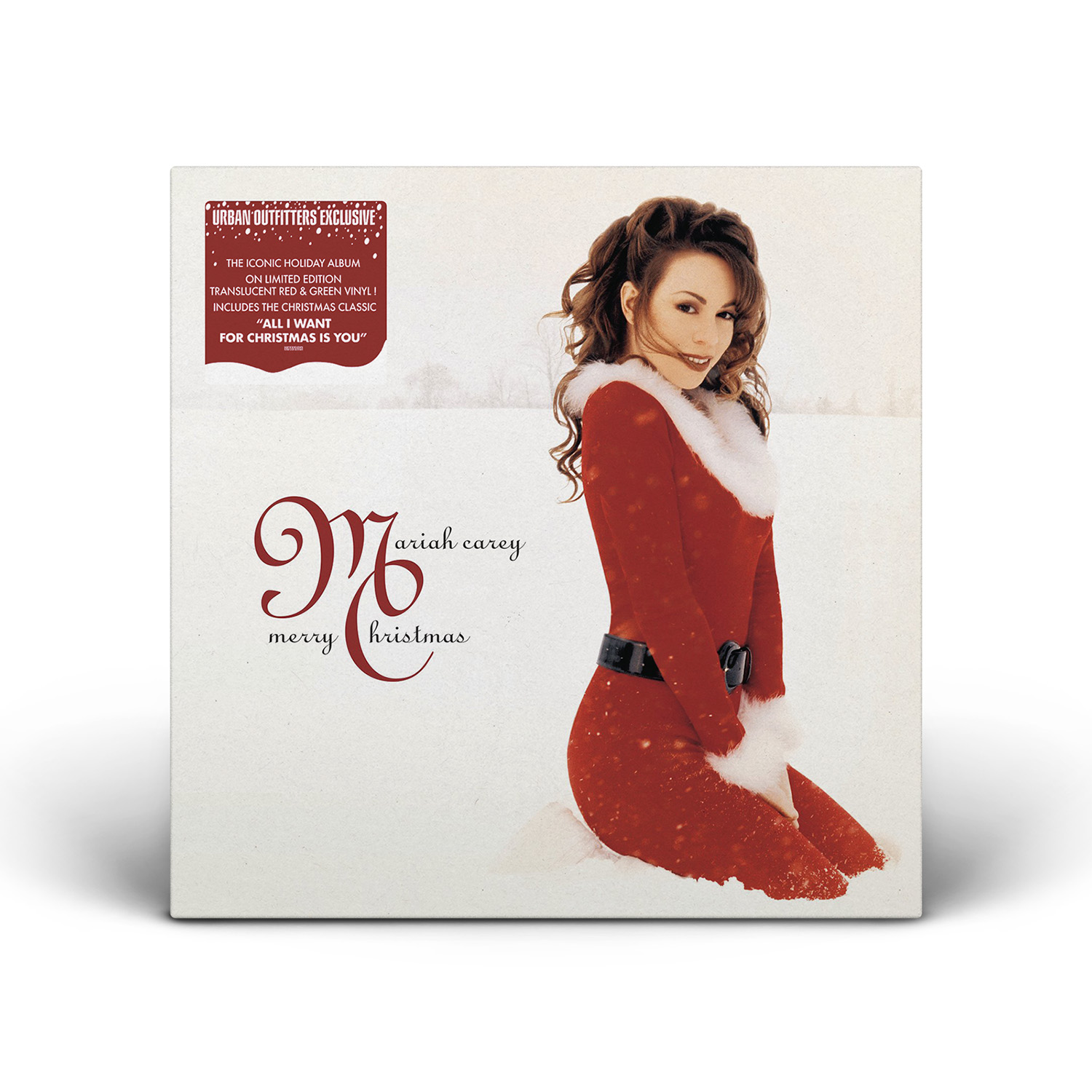 The original Merry Christmas black vinyl, released in 1994, was only available in Europe. The album was re-released on vinyl for the first time in 2015, on a limited edition red pressing. In 2018, another limited edition — a clear snowflake pressing — was released through the Mariah Carey official store, limited to 1,000 copies. Retailer Urban Outfitters released an exclusive pressing in 2019 — a Translucent Red and Green Vinyl vinyl, limited to 4,000 copies — while Target released a new limited edition in 2020 — pressed on clear vinyl with white, red and green splatter.