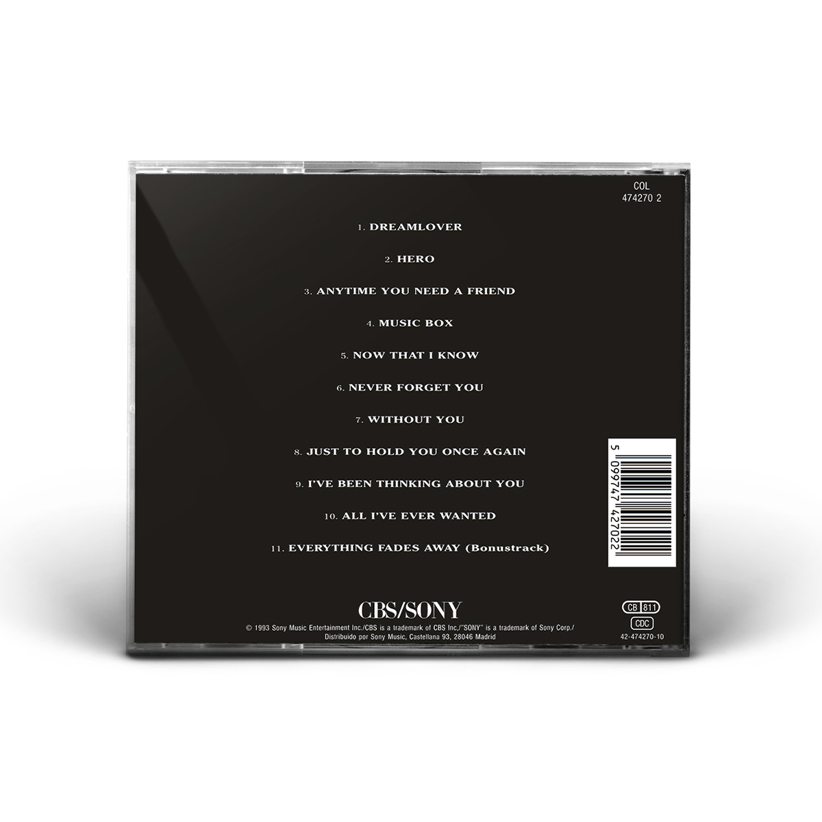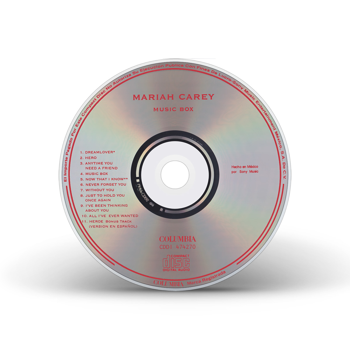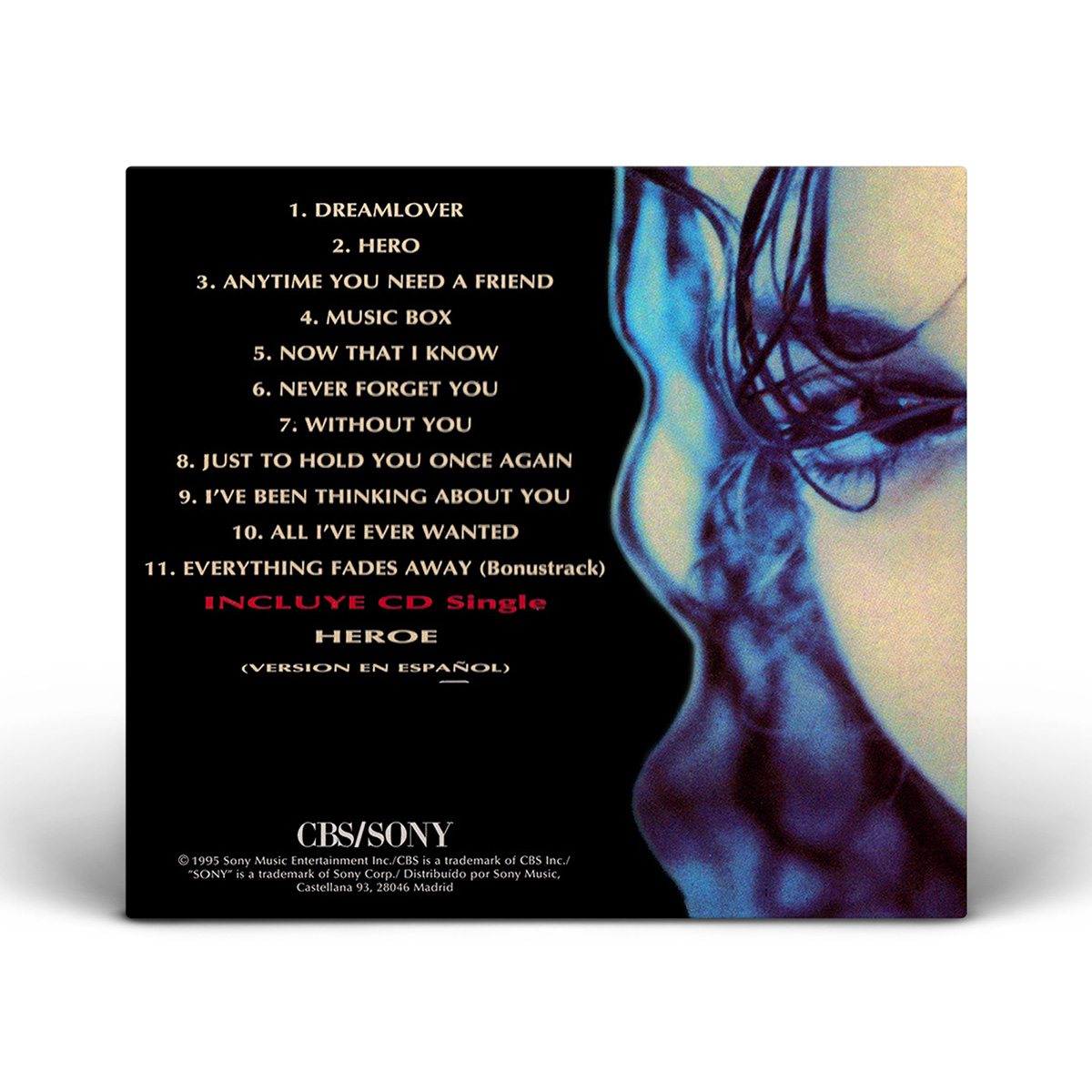 International editions of Music Box include the bonus track “Everything Fades Away,” composed by Mariah Carey and Walter Afanasieff. The album was later re-released in Spain and Latin America to include “Héroe,” the Spanish version of “Hero.”