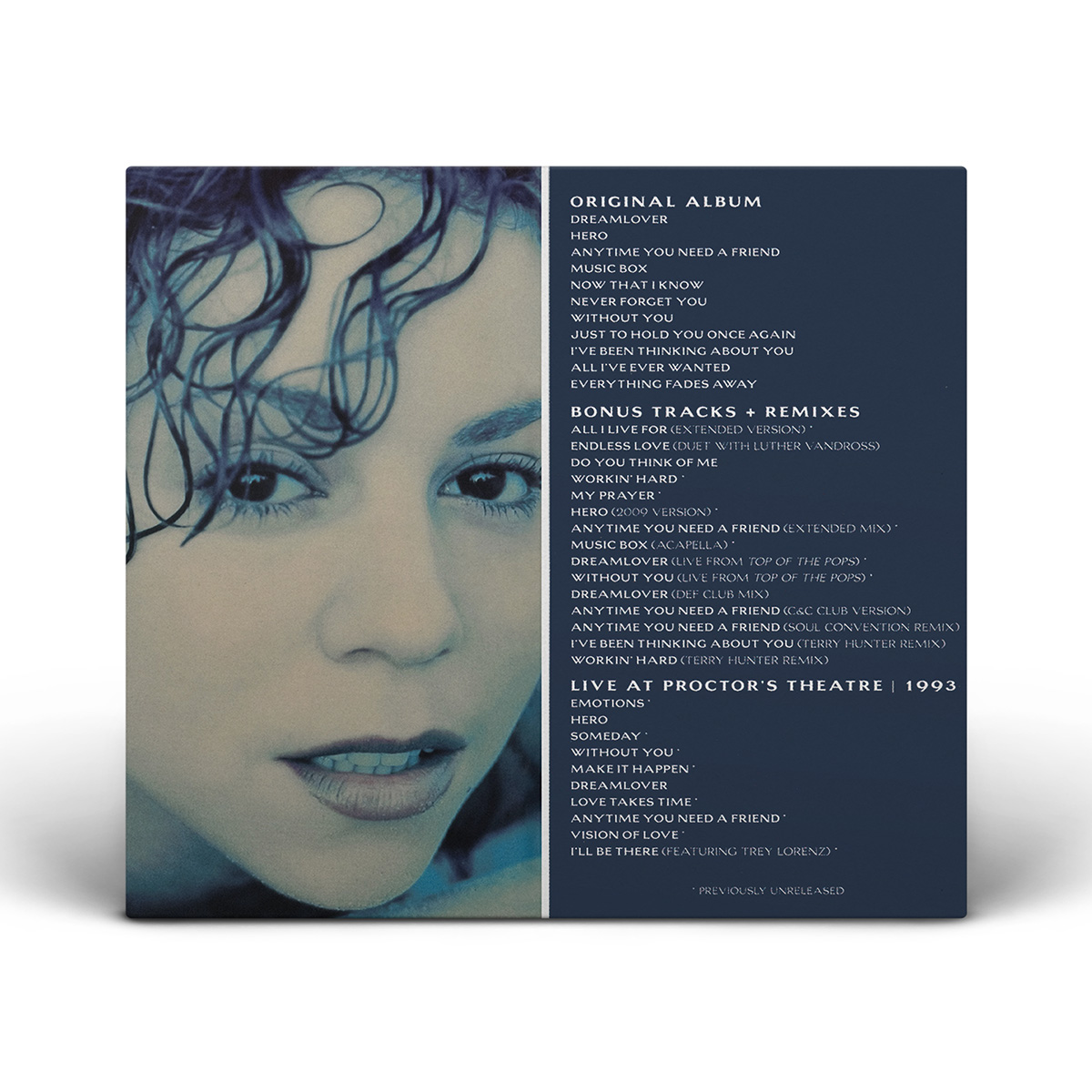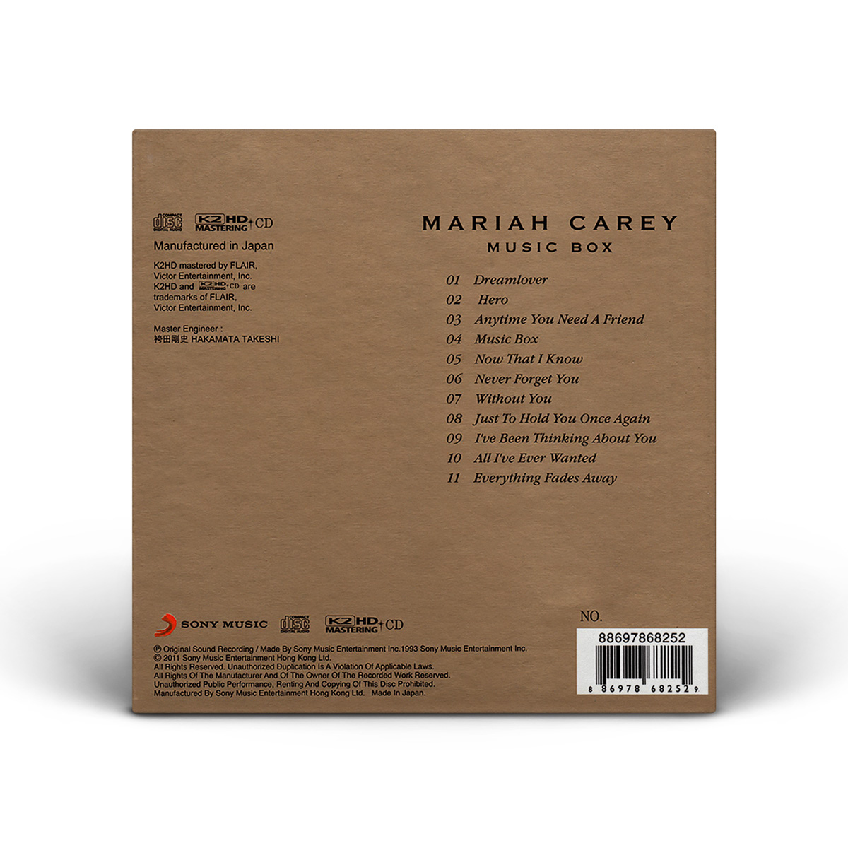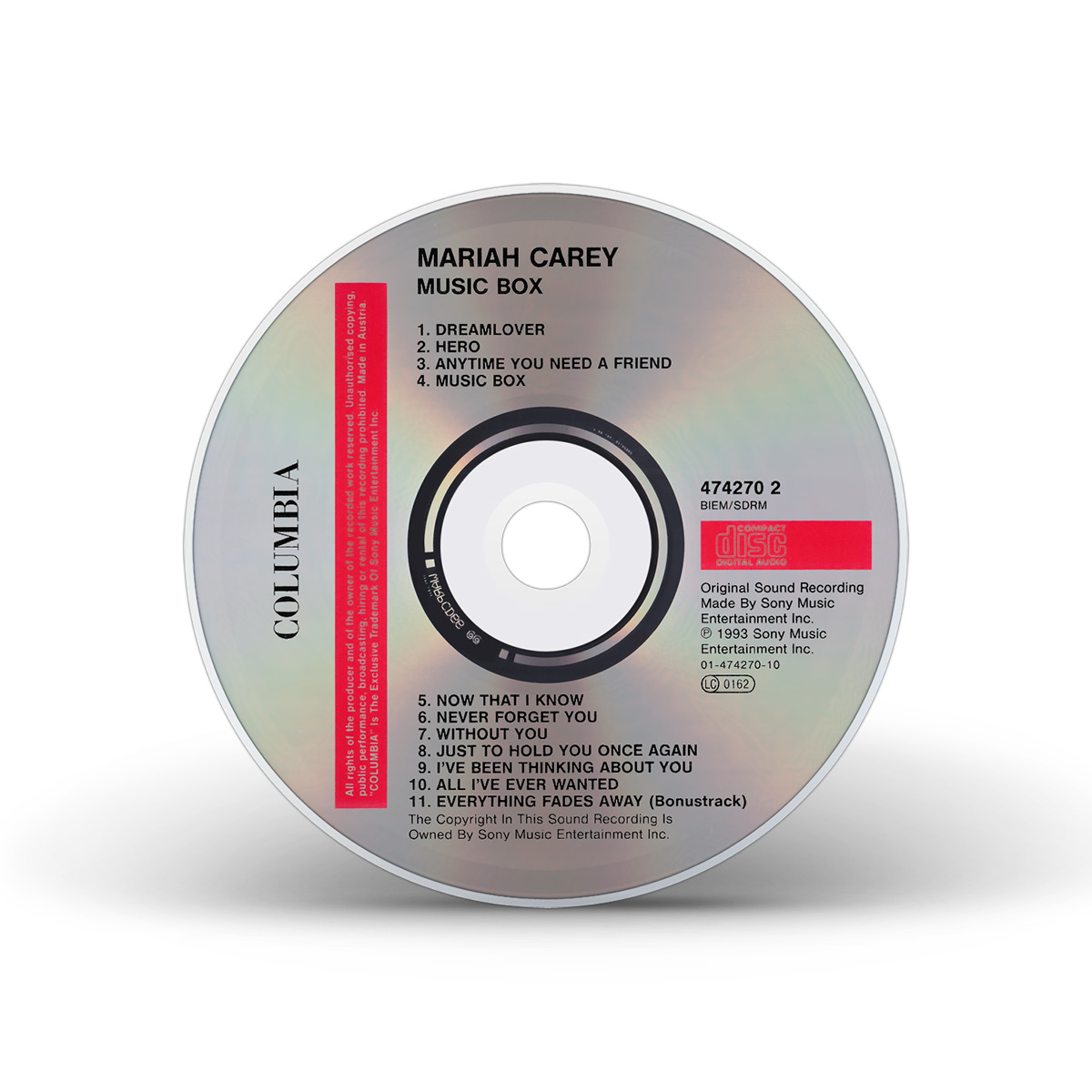 International editions of Music Box include the bonus track “Everything Fades Away,” composed by Mariah Carey and Walter Afanasieff. The album was later re-released in Spain and Latin America to include “Héroe,” the Spanish version of “Hero.”