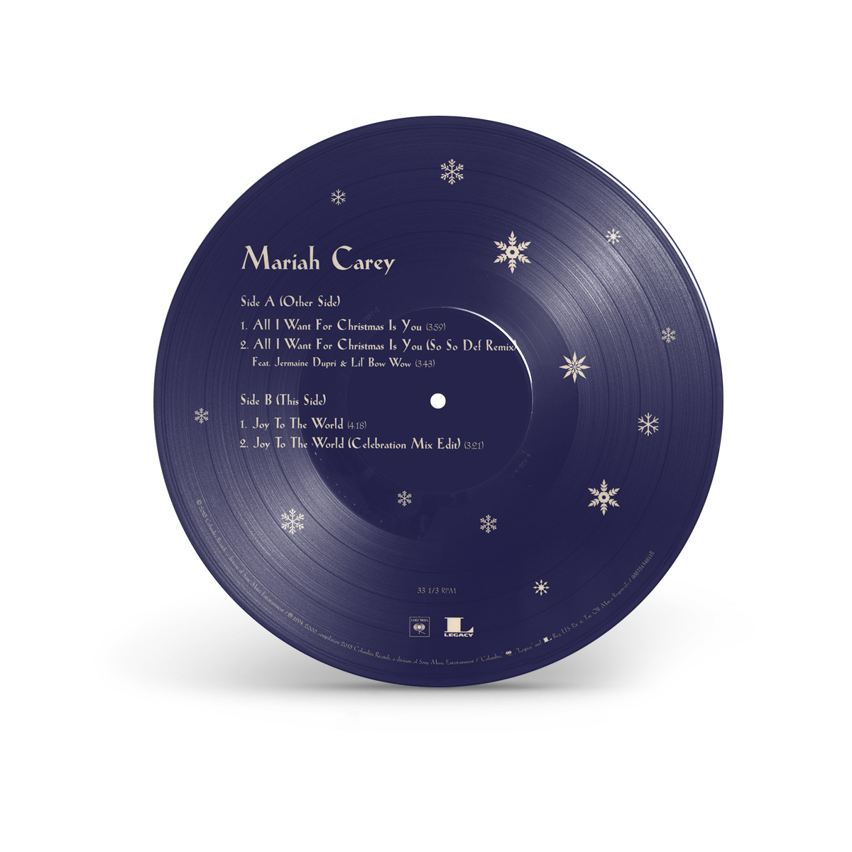 On November 17, 2015, Sony Music released a limited edition picture disc 4-song EP 10" vinyl including the album version and the So So Def remix of “All I Want For Christmas Is You” as well as the album version and the Celebration Mix Edit of “Joy To The World.” On October 24, 2018, Sony Music Japan released a limited edition 7" single pressed on red vinyl.