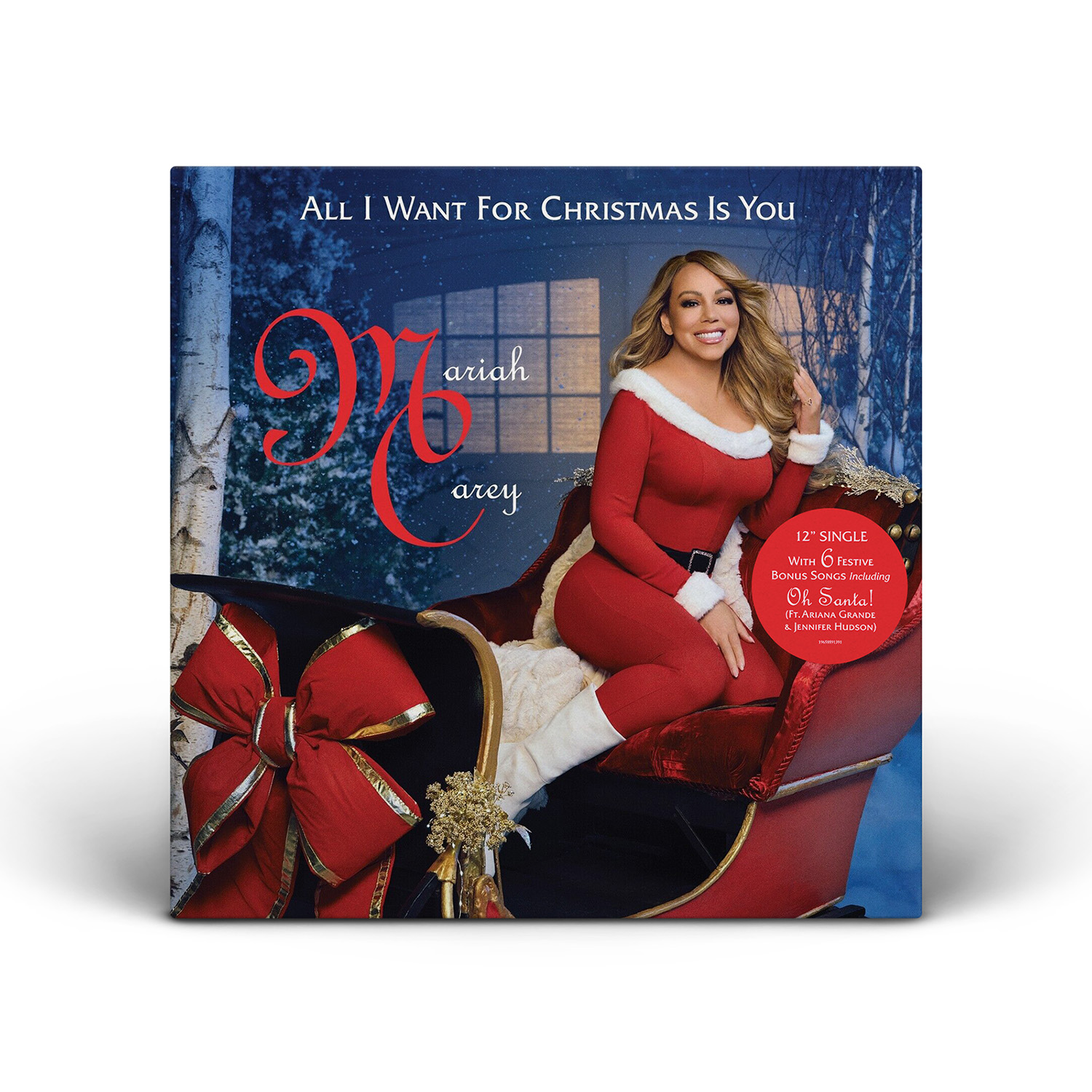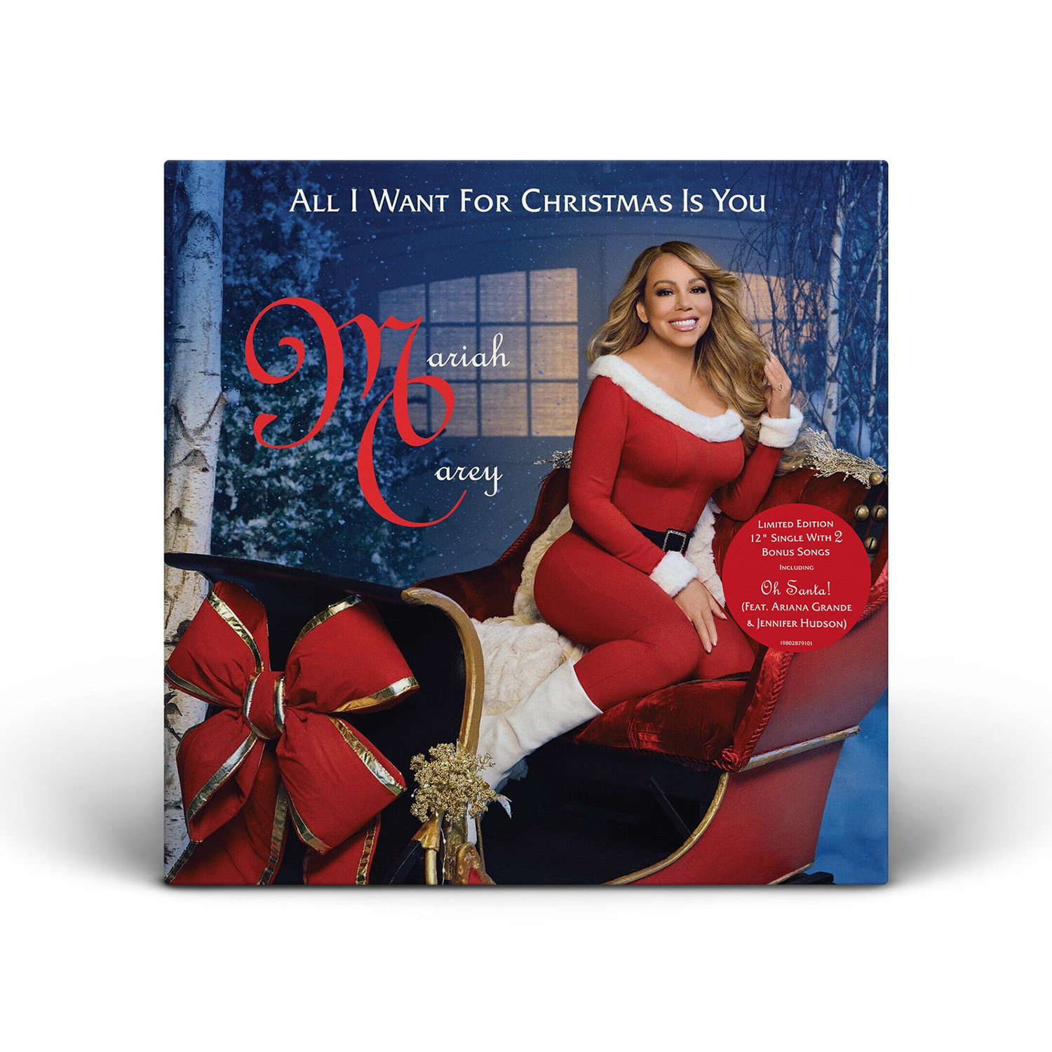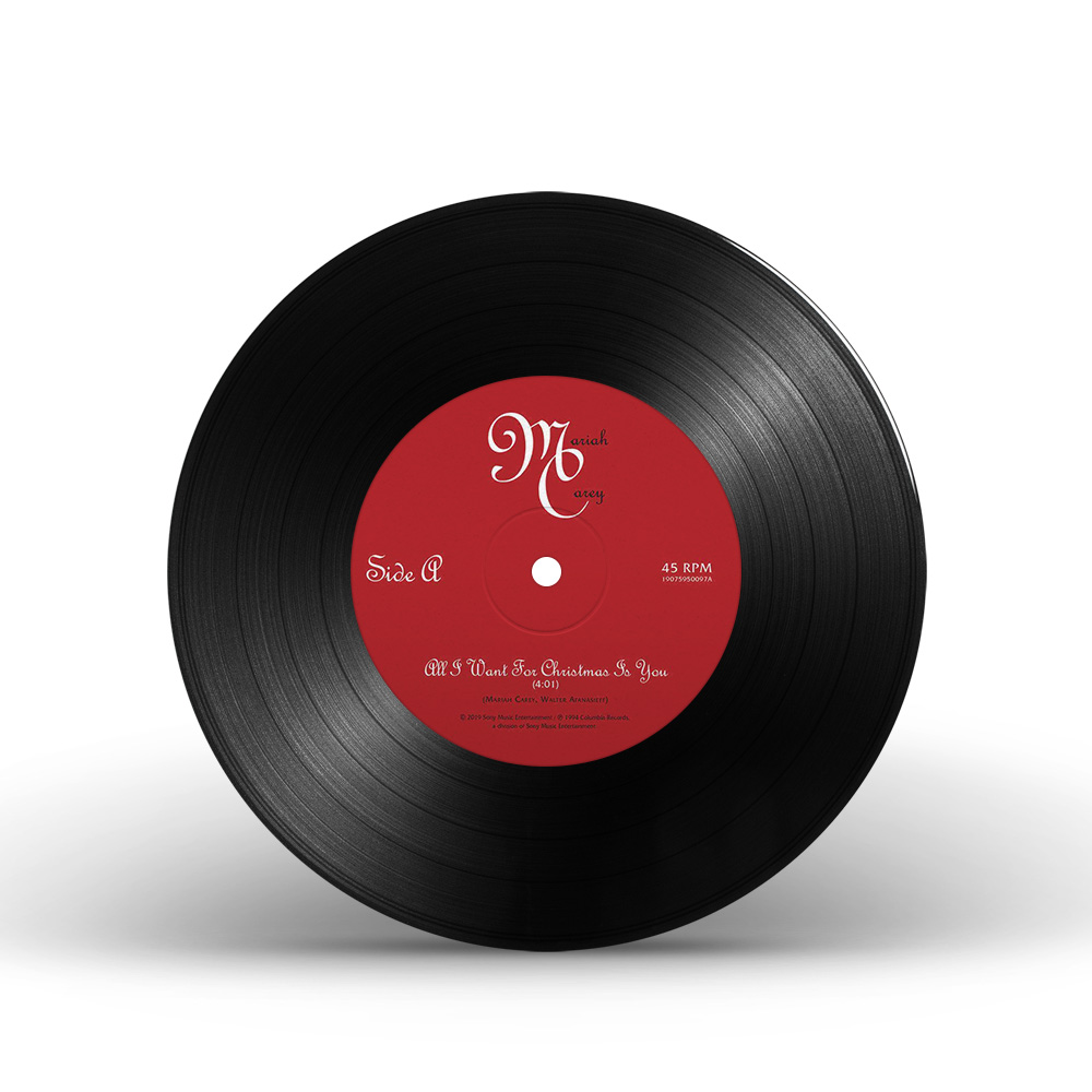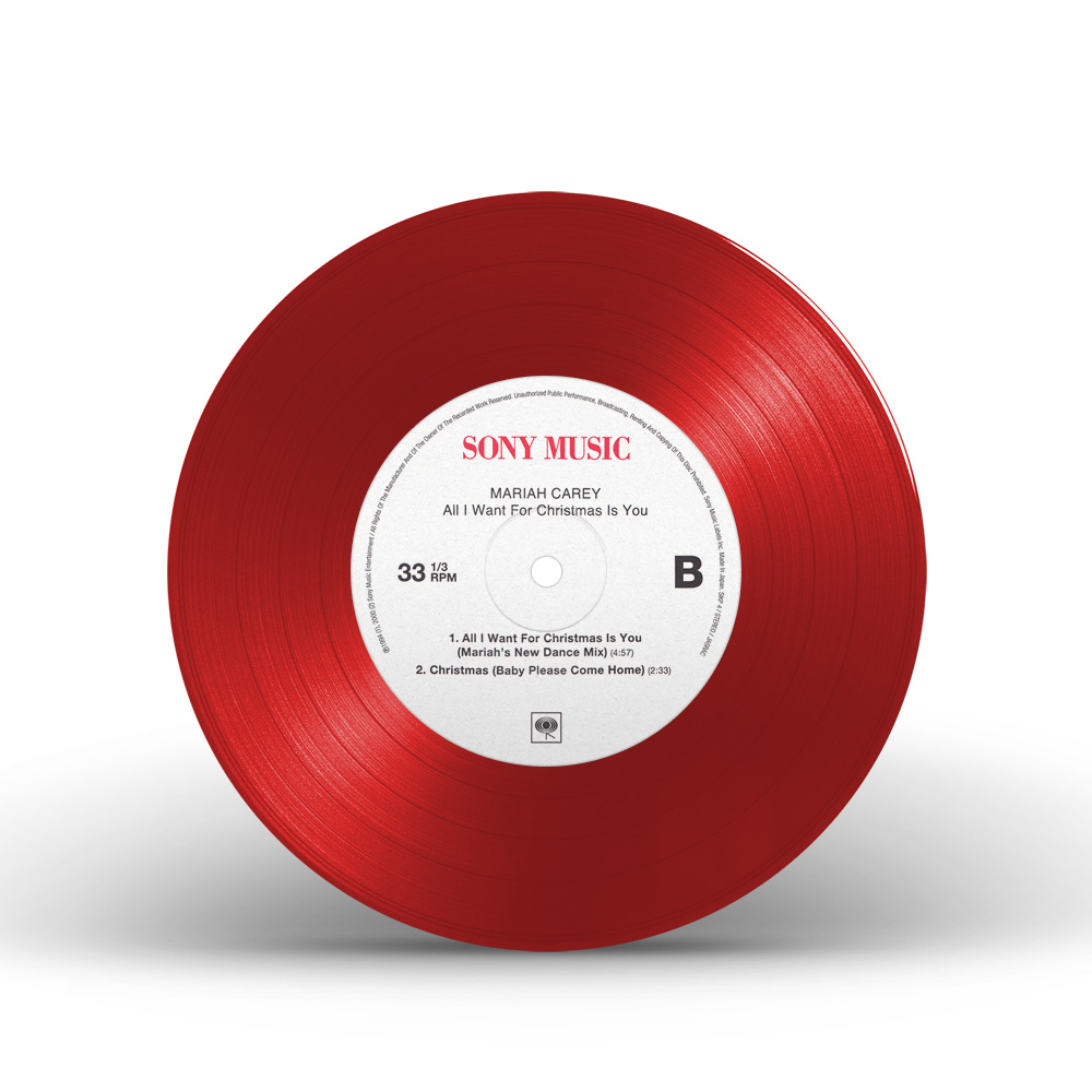 The limited edition 12" Vinyl pressing of the “All I Want For Christmas Is You” single includes two bonus tracks: “Oh Santa!” featuring Ariana Grande and Jennifer Hudson from Mariah Carey's Magical Christmas Special; and the Video Version of “Miss You Most (At Christmas Time).” An extend 12" Vinyl single includes three additional bonus songs: “The Star,” from The Star original motion picture soundtrack; “Fall In Love at Christmas,” with Khalid and Kirk Franklin; and the Club Mix of “Joy To The World.”