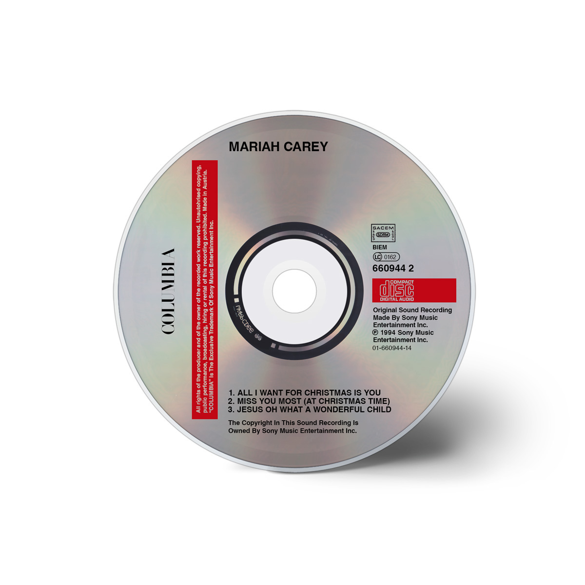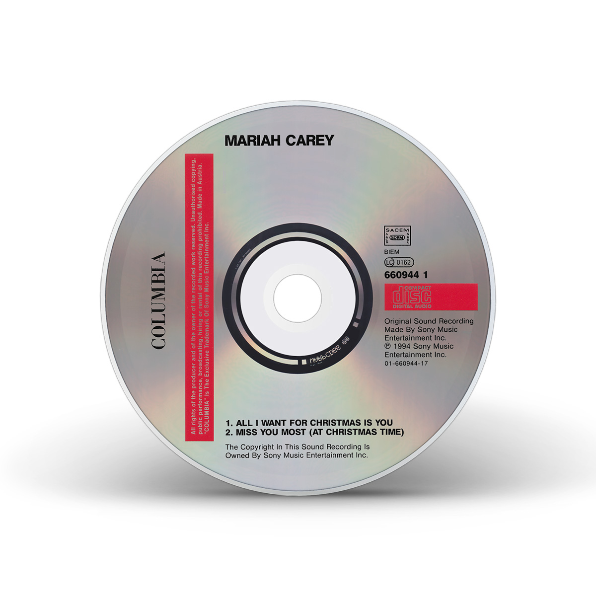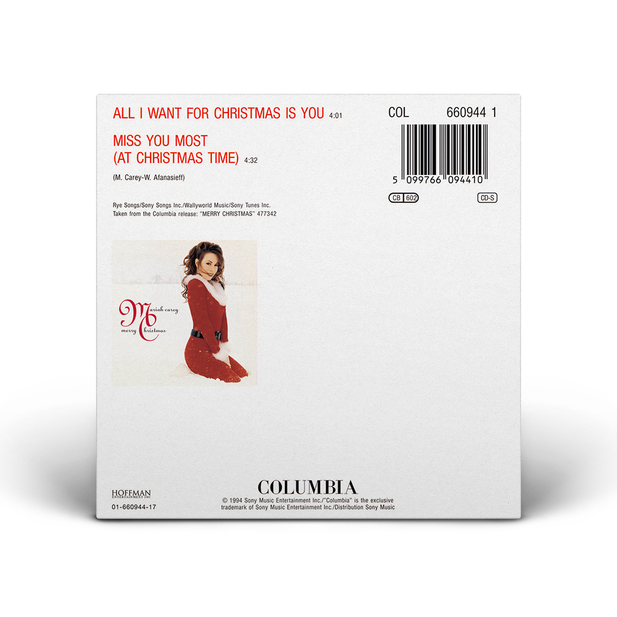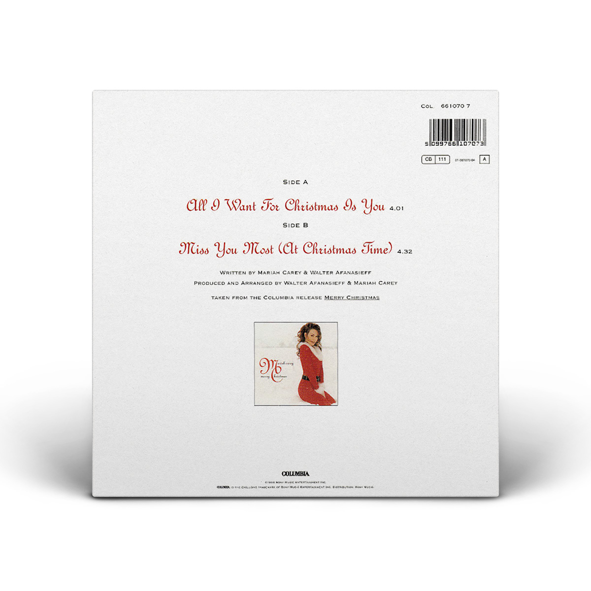 In Australia, “All I Want For Christmas Is You” was released as a double A-side with “Miss You Most (At Christmas Time)” on both CD and Cassette.