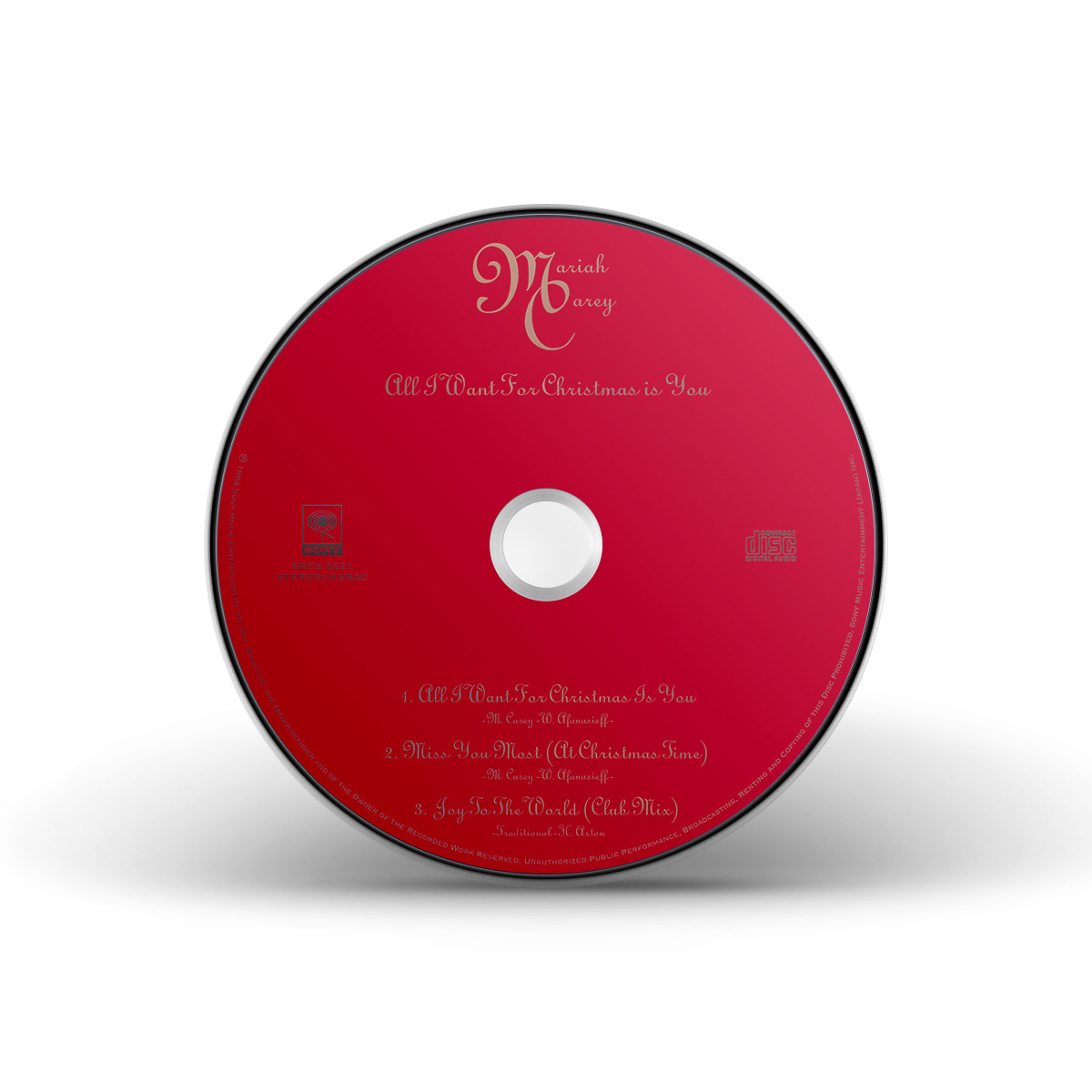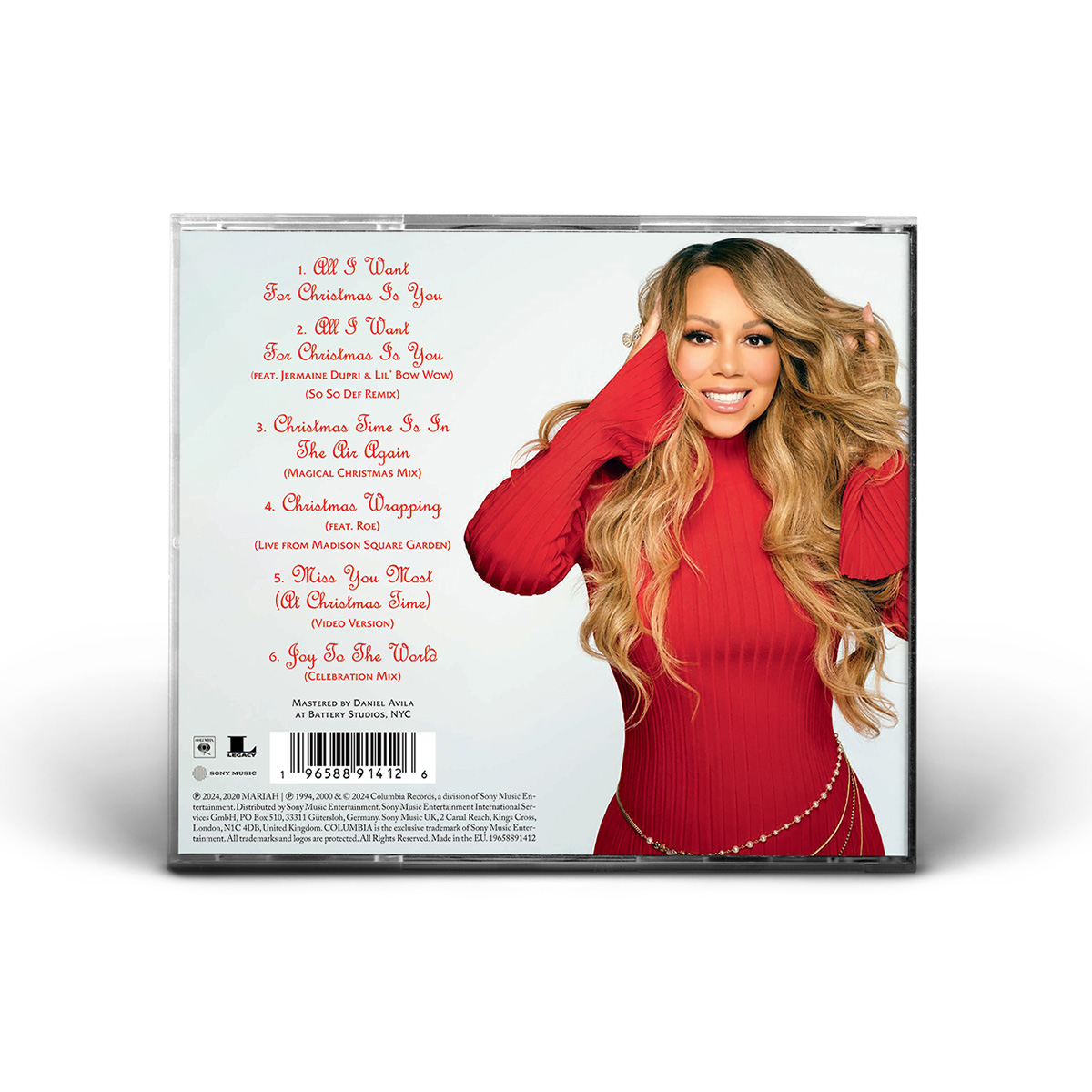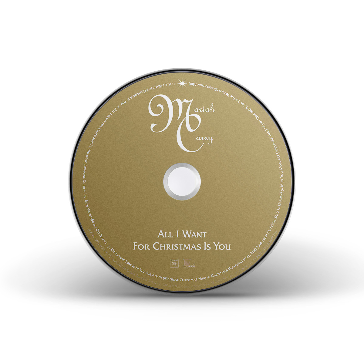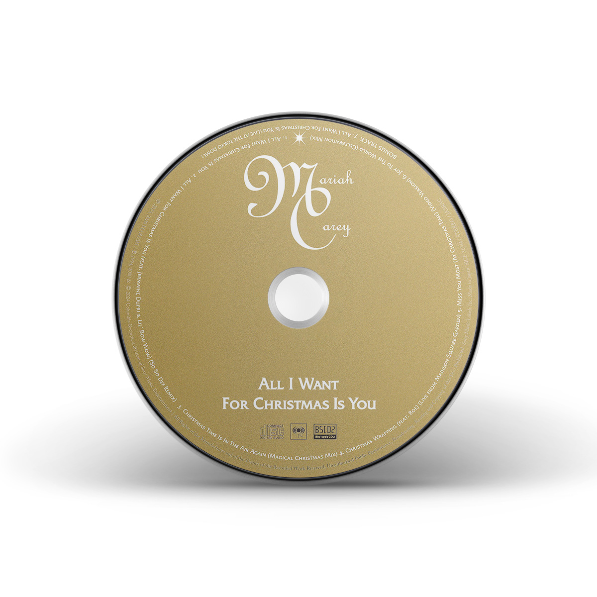 The limited edition CD single includes “All I Want For Christmas Is You” and two bonus songs: a previously-unreleased recording of “Christmas Wrapping” featuring Mariah's daughter Roe, recorded live at Madison Square Garden during the 2022 Merry Christmas To All! tour; and the Video Version of “Miss You Most (At Christmas Time).” The second CD single includes three additional tracks: the So So Def Remix of “All I Want For Christmas Is You,” the Magical Christmas Time Mix of “Christmas Time Is In The Air Again” and the Club Mix of “Joy To The World.”