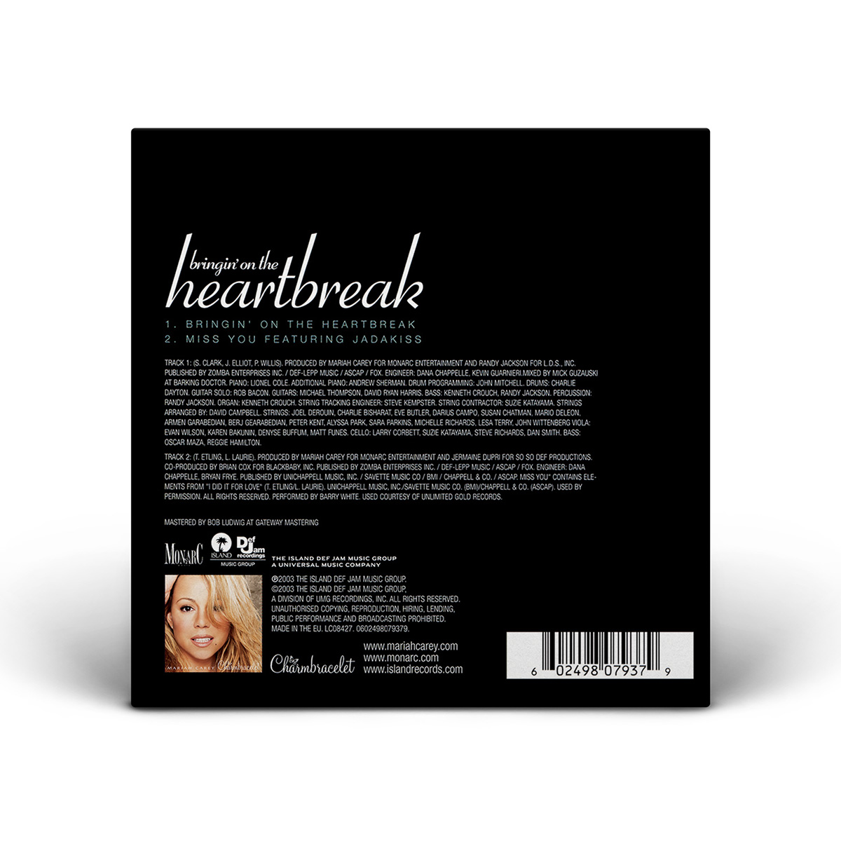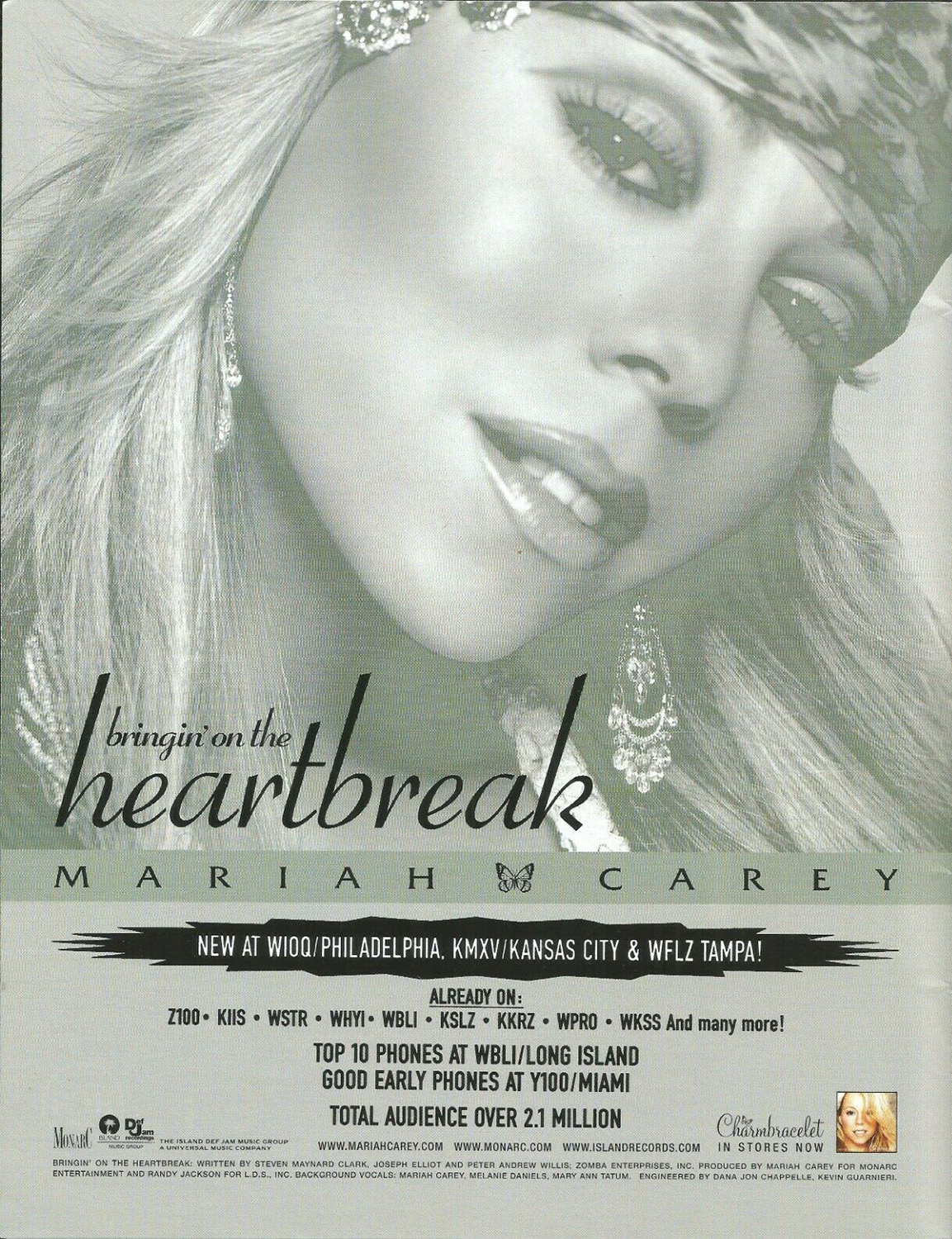 Originally recorded by Def Leppard, Mariah's cover of “Bringin' On The Heartbreak” was included on her Charmbracelet album and released as an airplay-only single in the United States on June 2, 2003. “I love going from showing my Minnie Riperton influences to hip-hop to rock. It's all me,” Mariah told Billboard in 2002. “For ‘Heartbreak,’ it was fun to go back to a song that I loved singing when I was in school. I think we bring some fresh elements to it.”