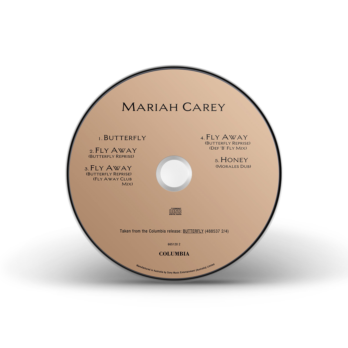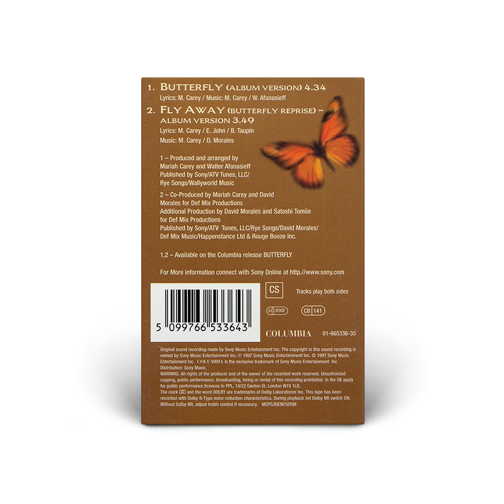 In Australia, “Butterfly” was released on CD and Cassette, both including the Album Version of the song, three versions of “Fly Away (Butterfly Reprise)” (Album Version, Fly Away Club Mix and Def ‘B’ Fly Mix), and the Morales Dub Mix of “Honey.”