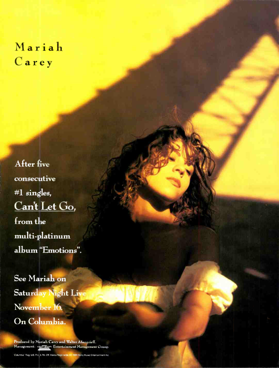 “Can't Let Go” was released as the second single from Mariah's Emotions album on October 23, 1991. “This was one of my favorite songs on my sophomore album,” Mariah said about the song in 2012. “I think it may have leaned a bit too R&B for the record label at the time. I still love it and look forward to singing it live again soon.”
