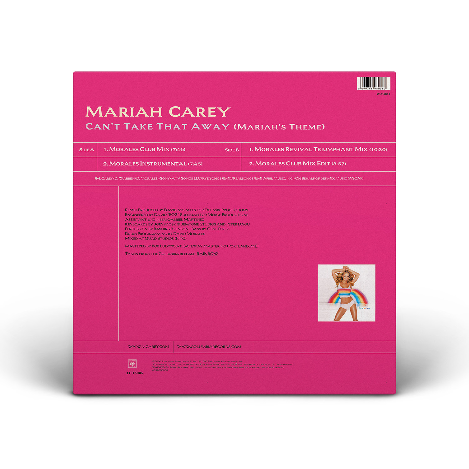 Mariah teamed up with David Morales for the “Can't Take That Away” remixes and recorded new vocals for the Morales Revival Triumphant Mix, which took the song to number six on Billboard's Dance Club Songs chart.