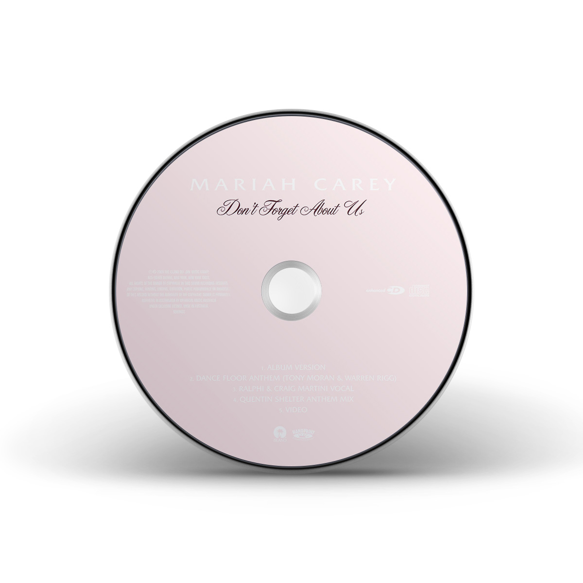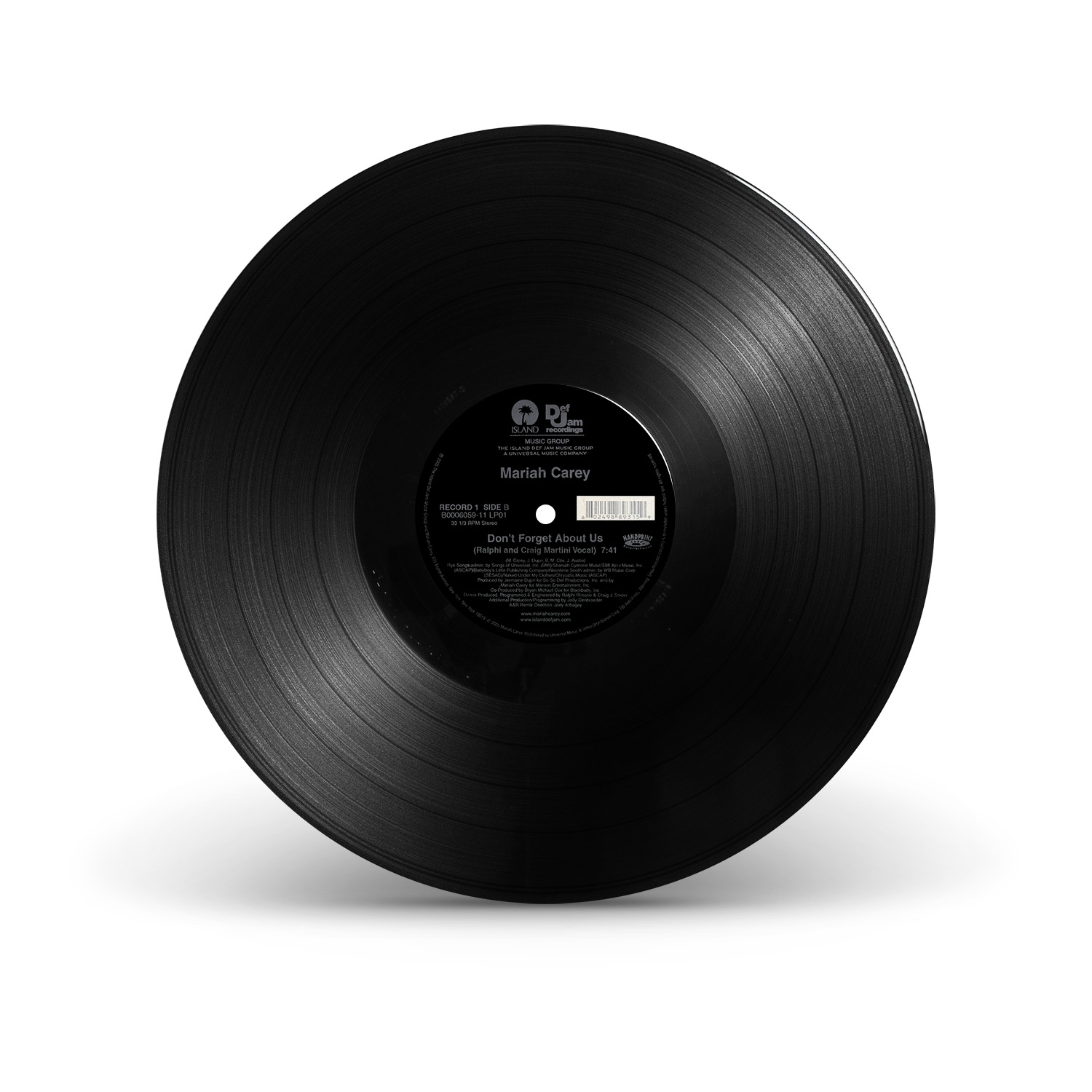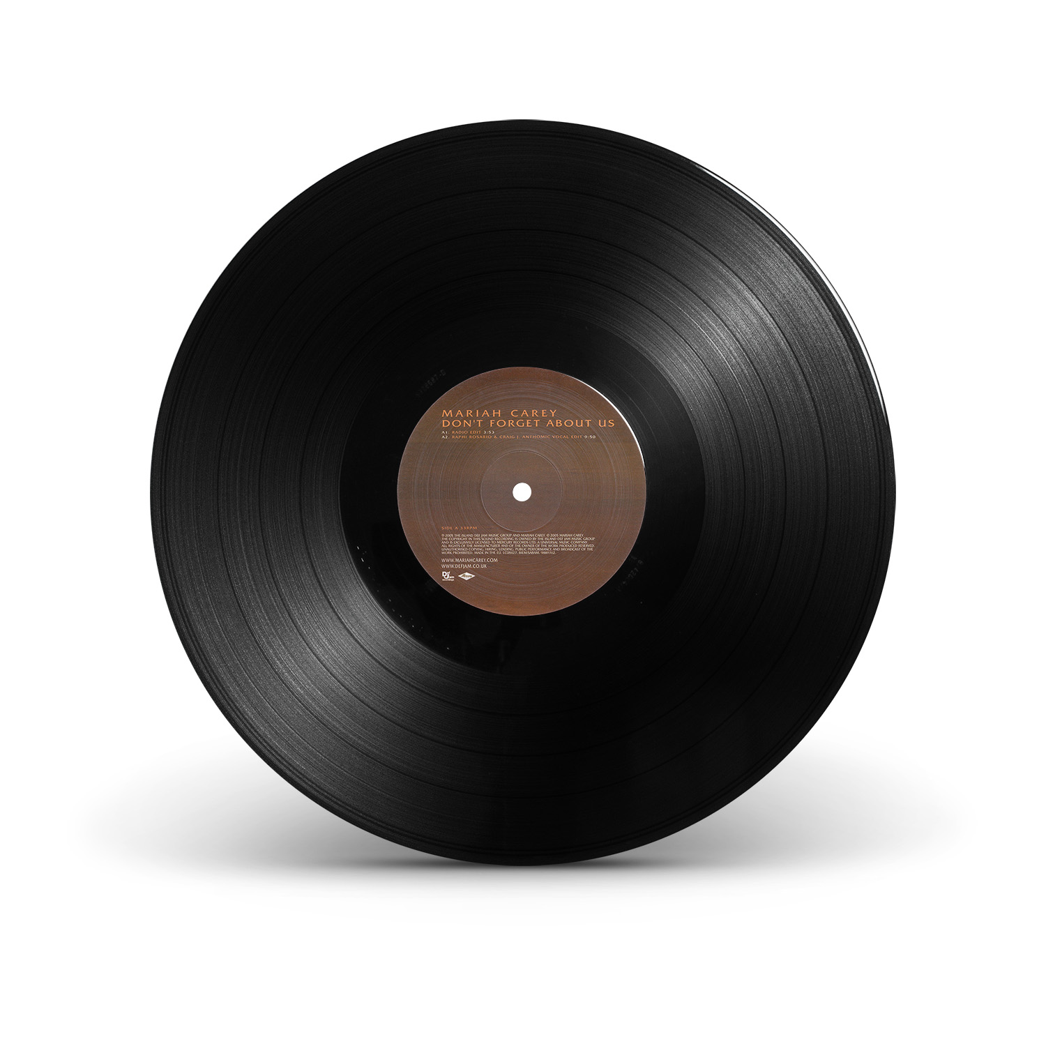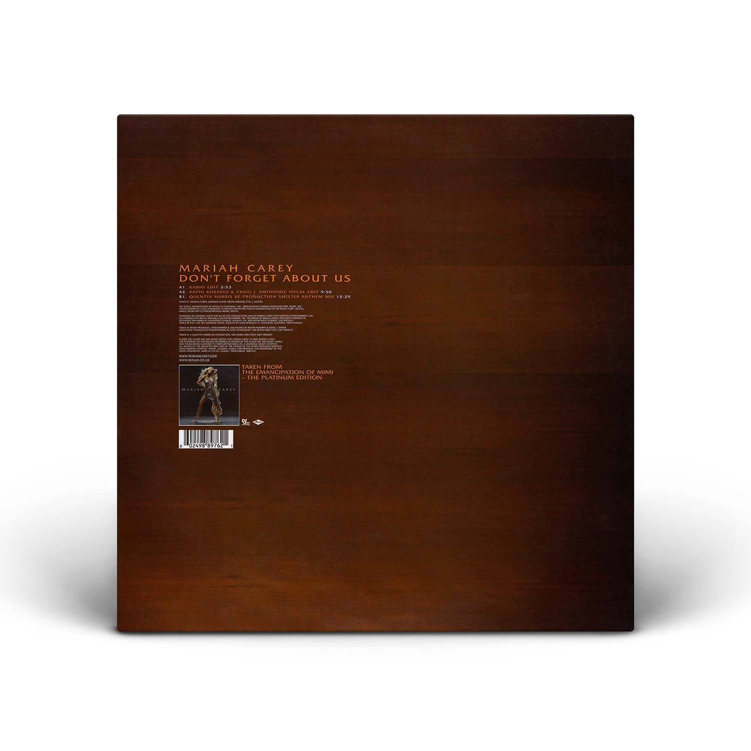 The only physical release for “Don't Forget About Us” in the United States was a double 12" Vinyl including four dance remixes by Tony Moran, Quentin Harris and Ralphi Rosario, which became available on December 12, 2005.