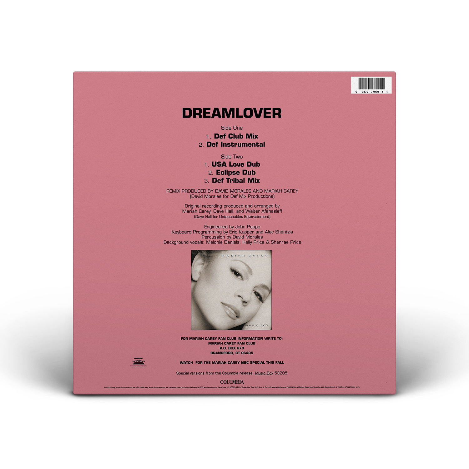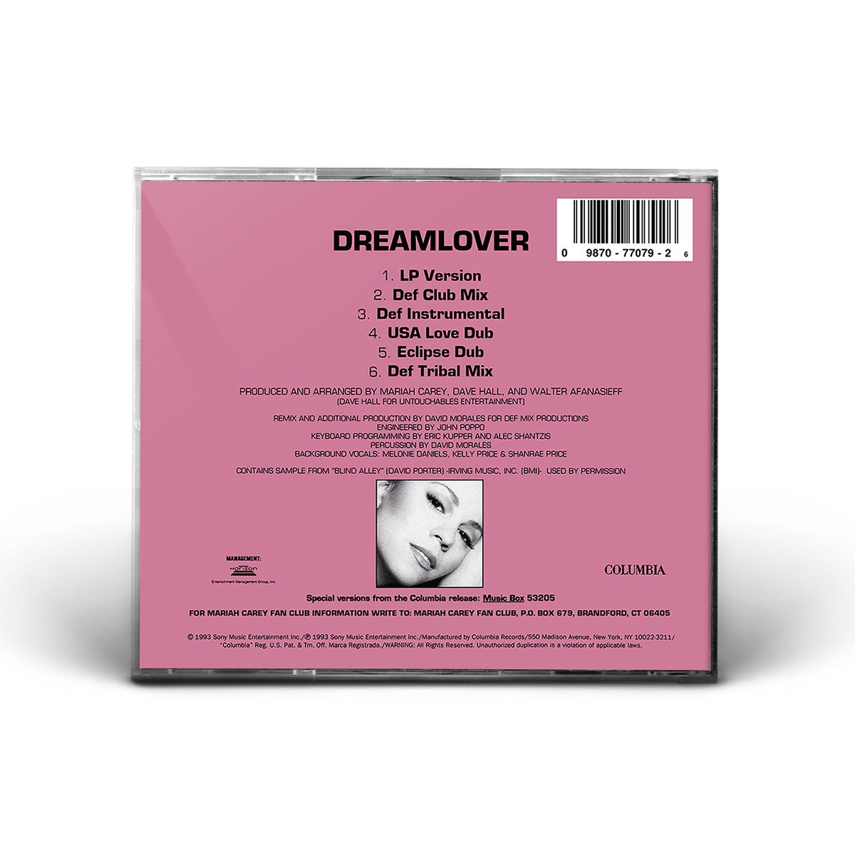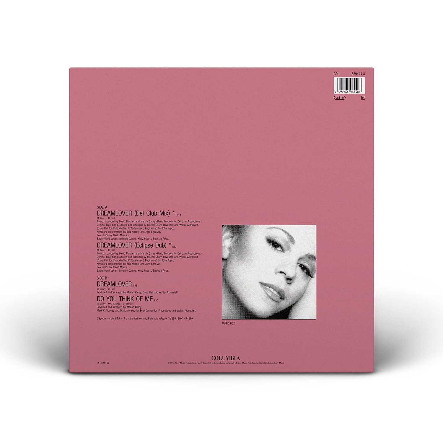 The “Dreamlover” Single was released on CD and cassette, including the previously-unreleased B-side “Do You Think Of Me.” The Maxi Single, which features the Album Version of the song and five remixes produced by David Morales, was also released on CD — with two different covers — and Cassette. “Dreamlover” was also released on 12" Vinyl, including five Morales remixes of the song.