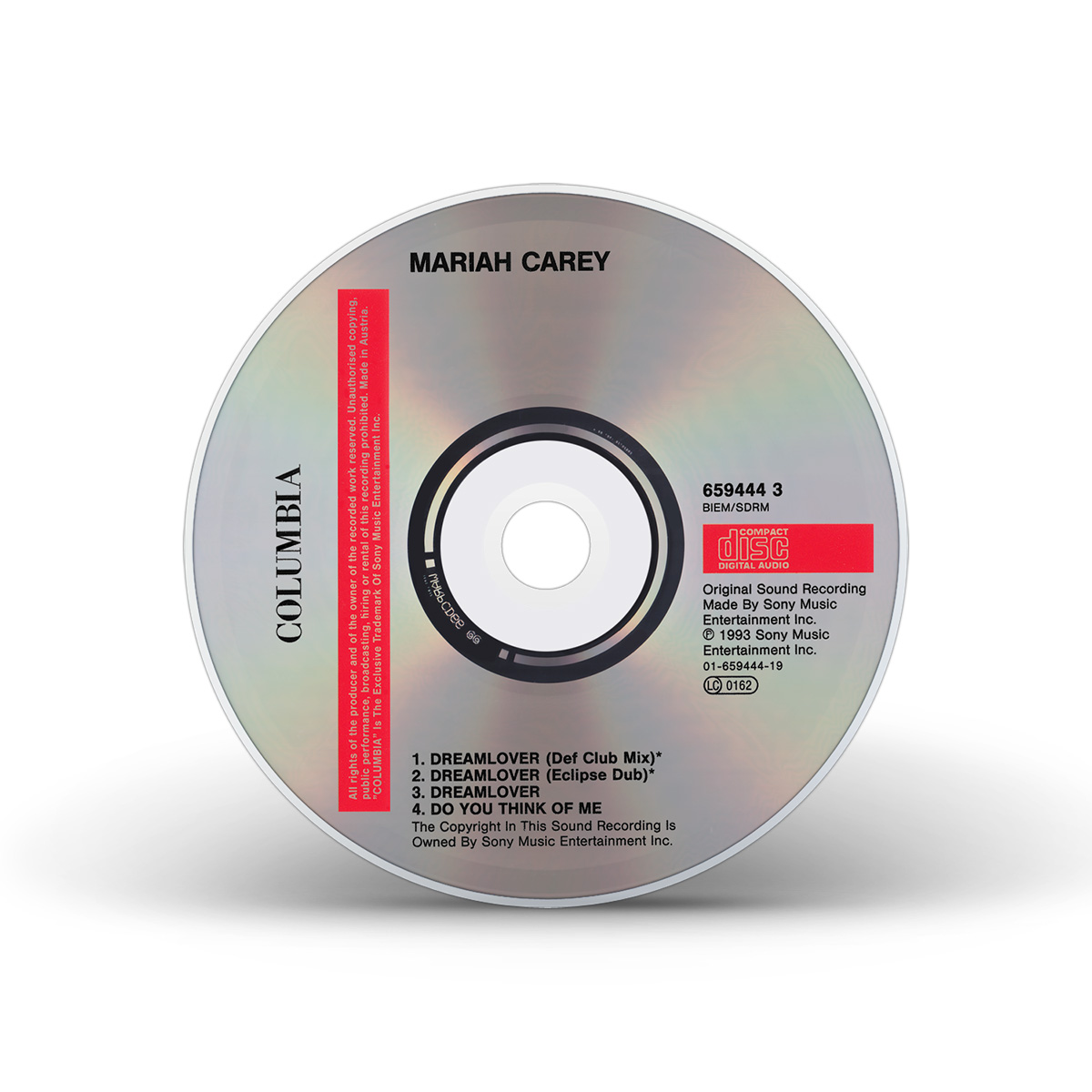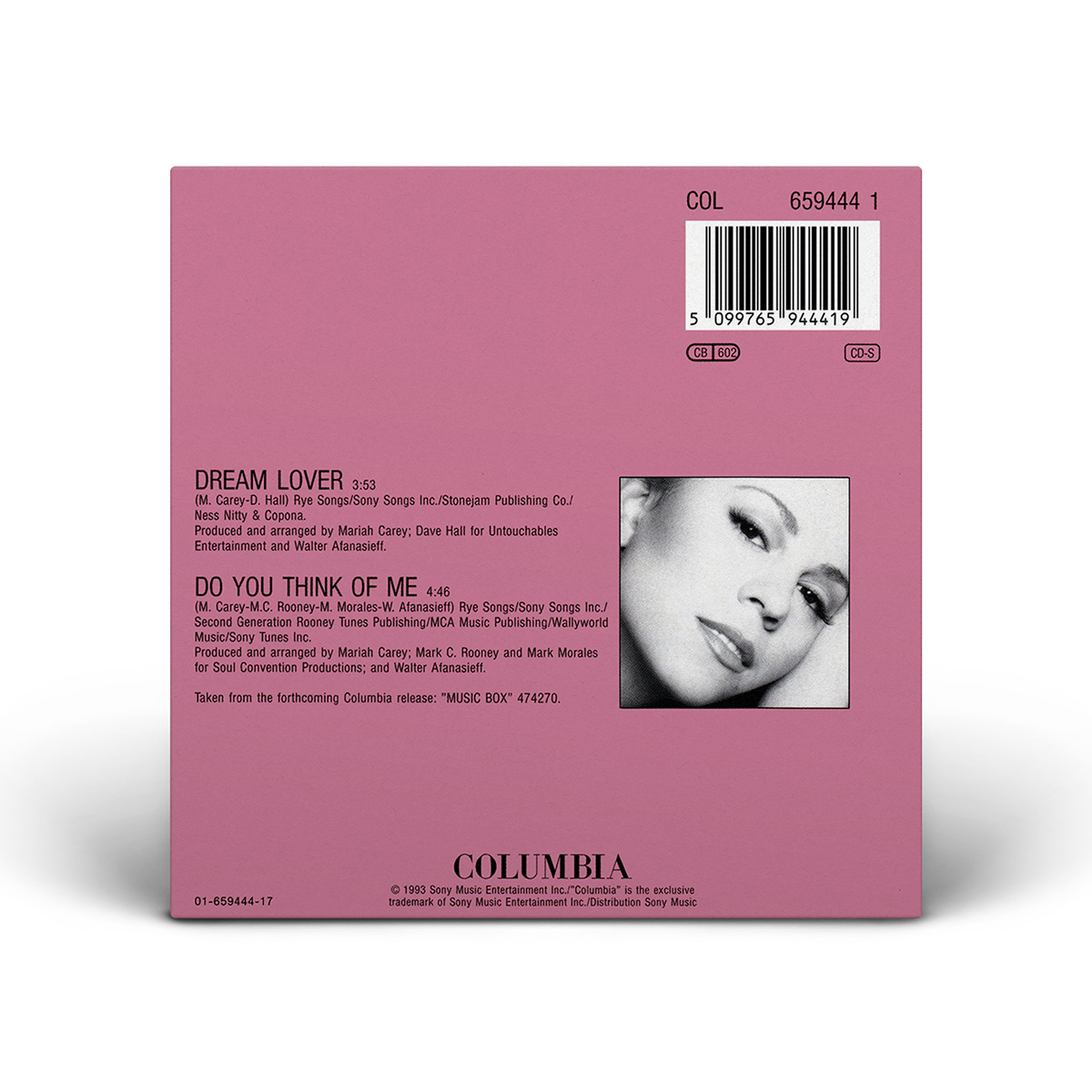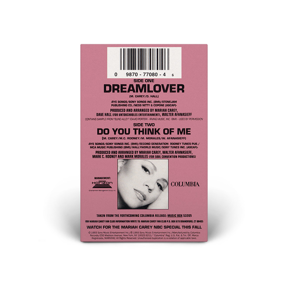 The European “Dreamlover” Single, including “Do You Think Of Me” as the B-side, was available on CD, Cassette and 7" Vinyl. There were two “Dreamlover” Maxi Singles, the first one featuring the two songs from the Single as well as the live version of “Someday” from Mariah's MTV Unplugged. The second “Dreamlover” Maxi Single was available on CD and 12" Vinyl and includes the Album Version of the song plus the Def Club Mix and Eclipse Dub remixes, as well as “Do You Think Of Me.”