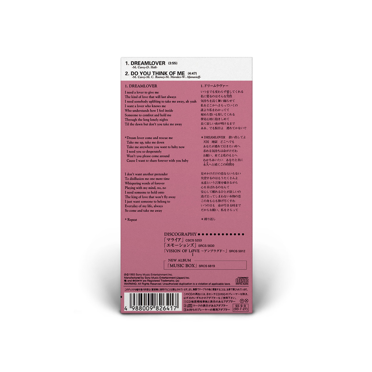 In Japan, the “Dreamlover” Single was released on September 9, 1993. It was available on 3" CD, featuring “Do You Think Of Me” as the B-side.