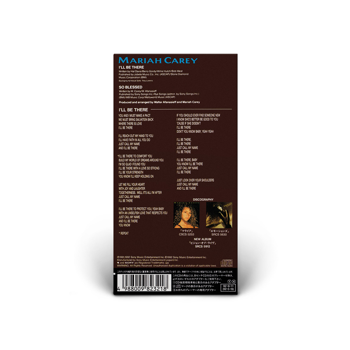 The Japanese 3" “I'll Be There” CD Single was released on June 11, 1992, including “So Blessed” as the B-side.